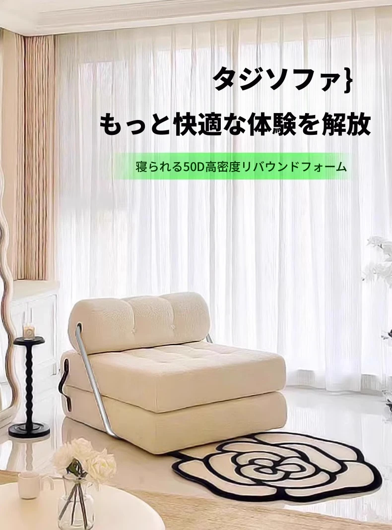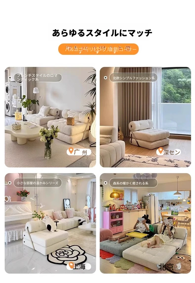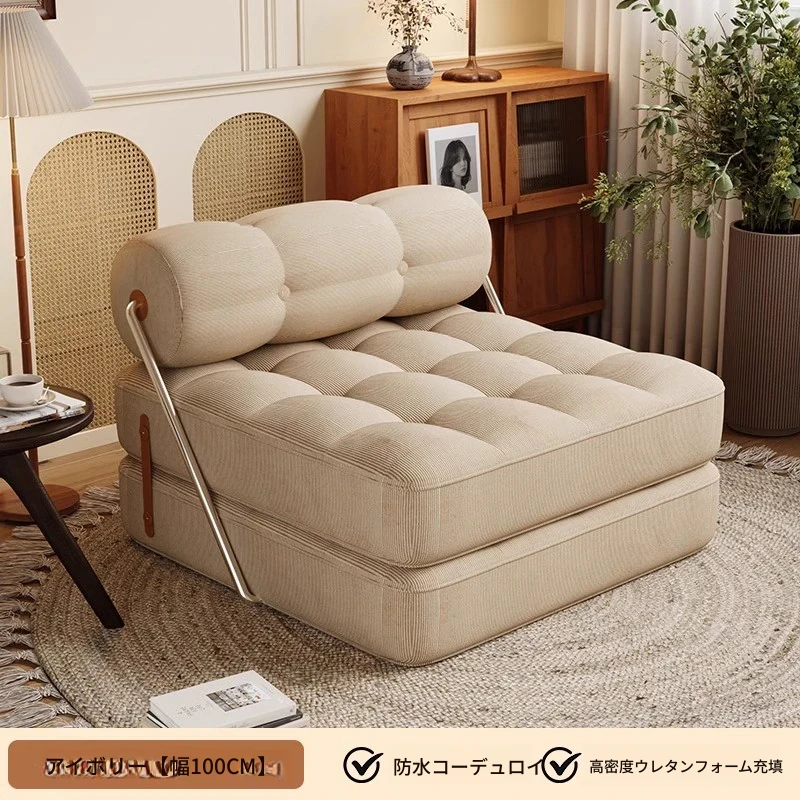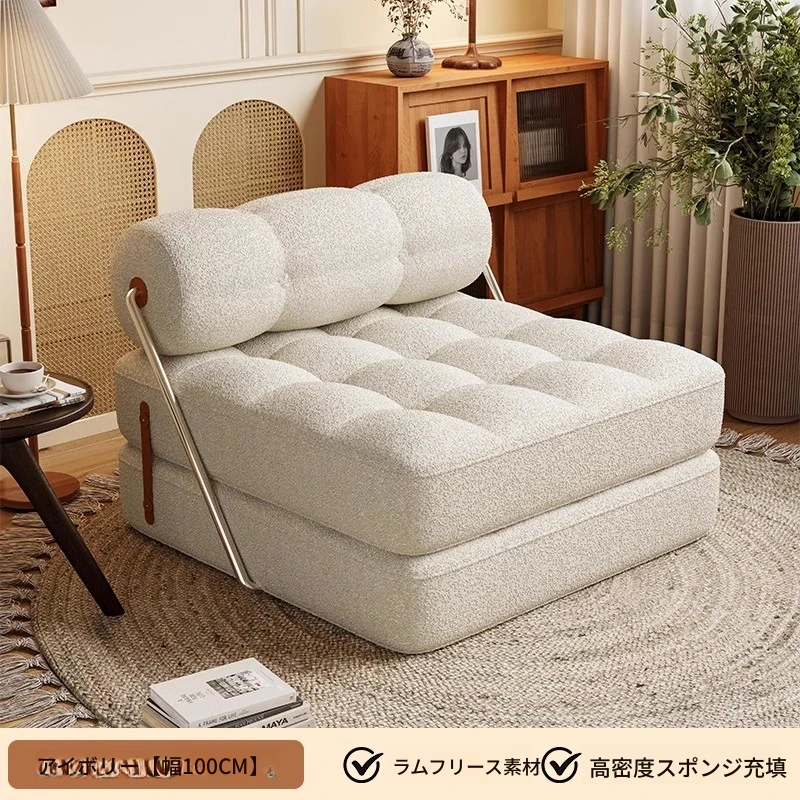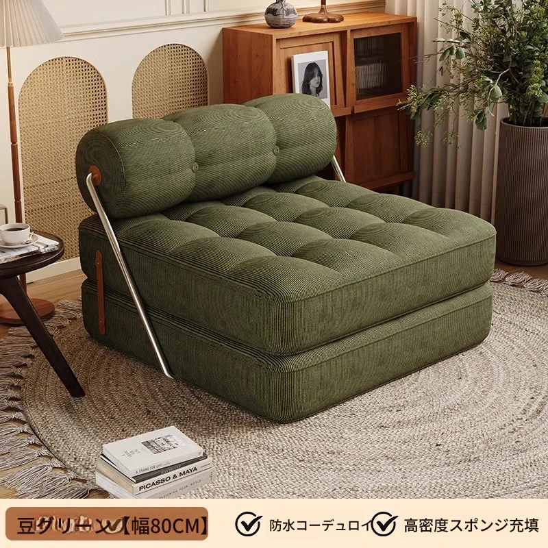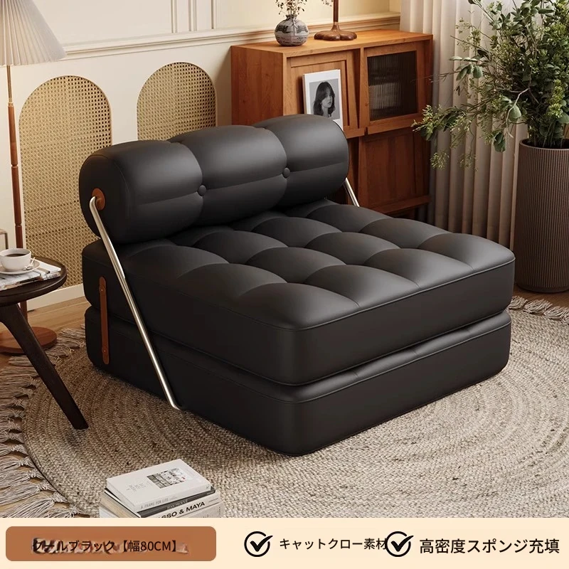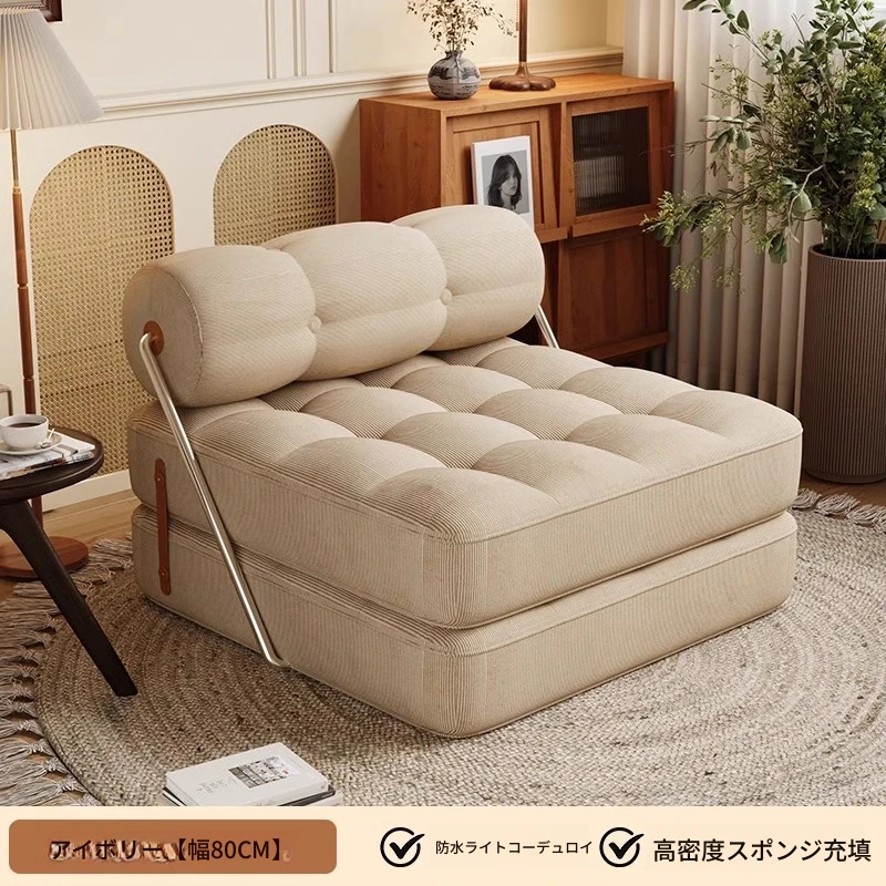 2025年新款折叠ソファベッド!小型住宅に最適な一体型デザイン、リビングやバルコニーで使える快適なシングルチェア。豆腐ブロックスタイルの畳にぴったり!おしゃれで実用的な空間を演出!