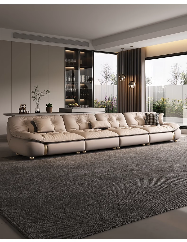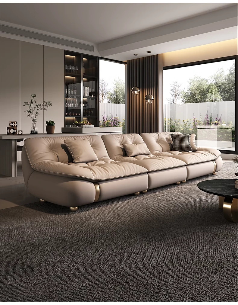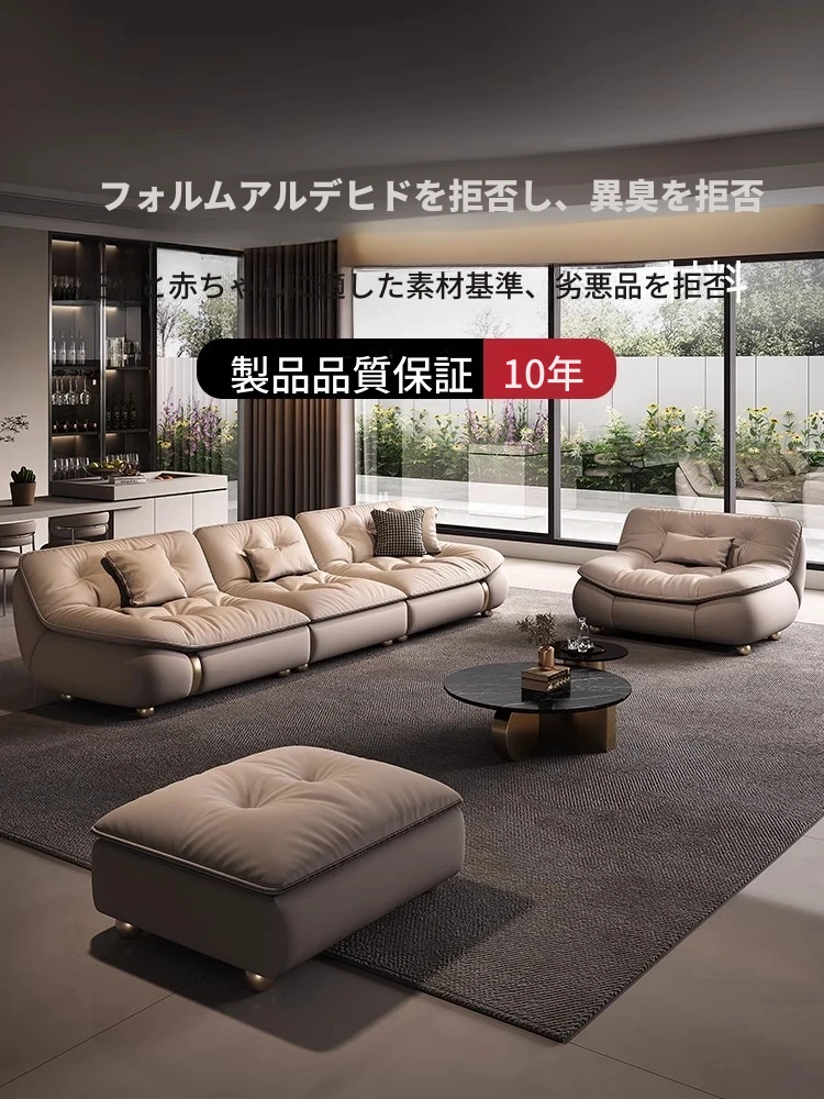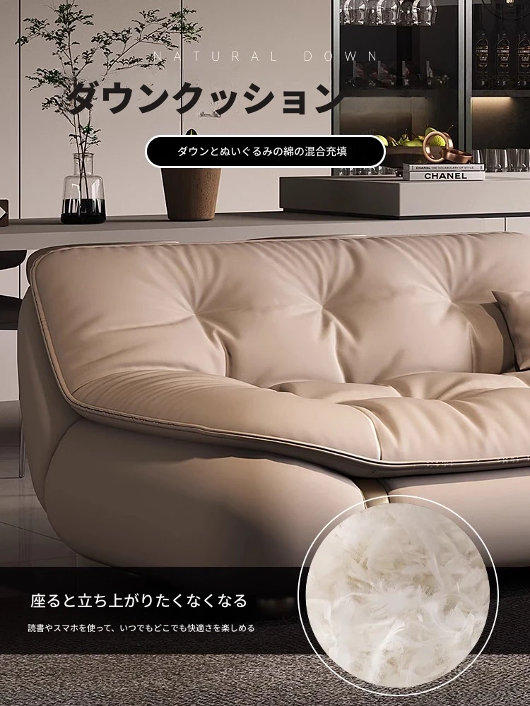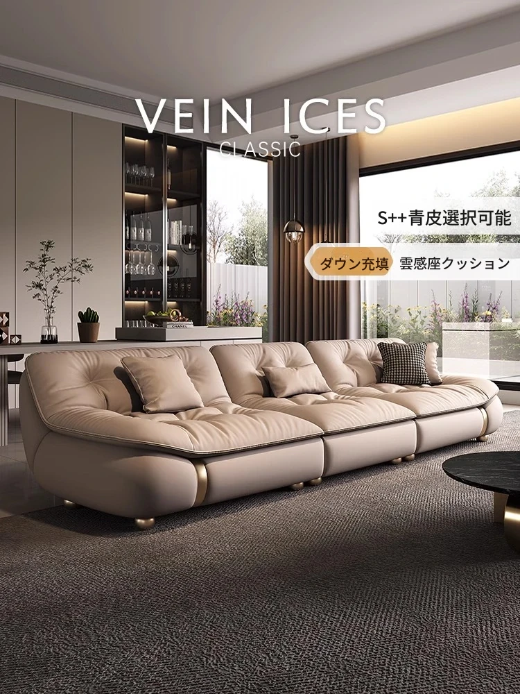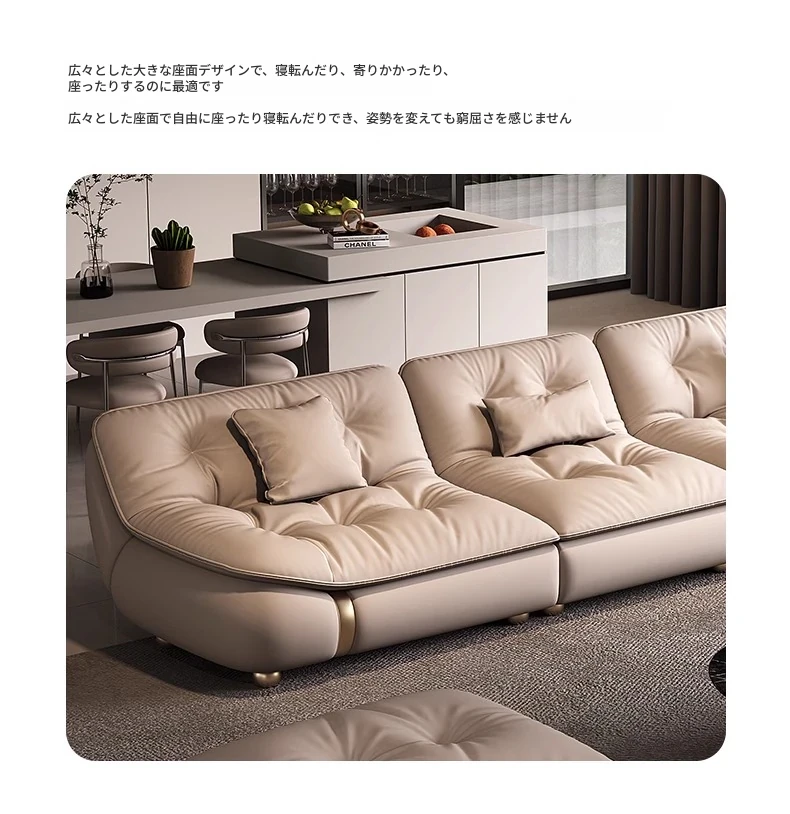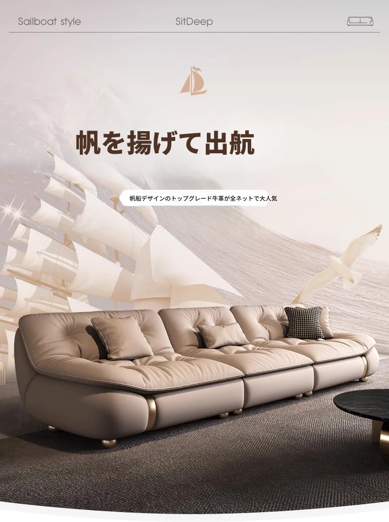 2025年新作!モダンでラグジュアリーなクリーム風ダウンセイルデザインの本革ソファ。大小様々なリビングにぴったりな直排タイプ。快適さとスタイルを両立させた贅沢な空間を演出します!