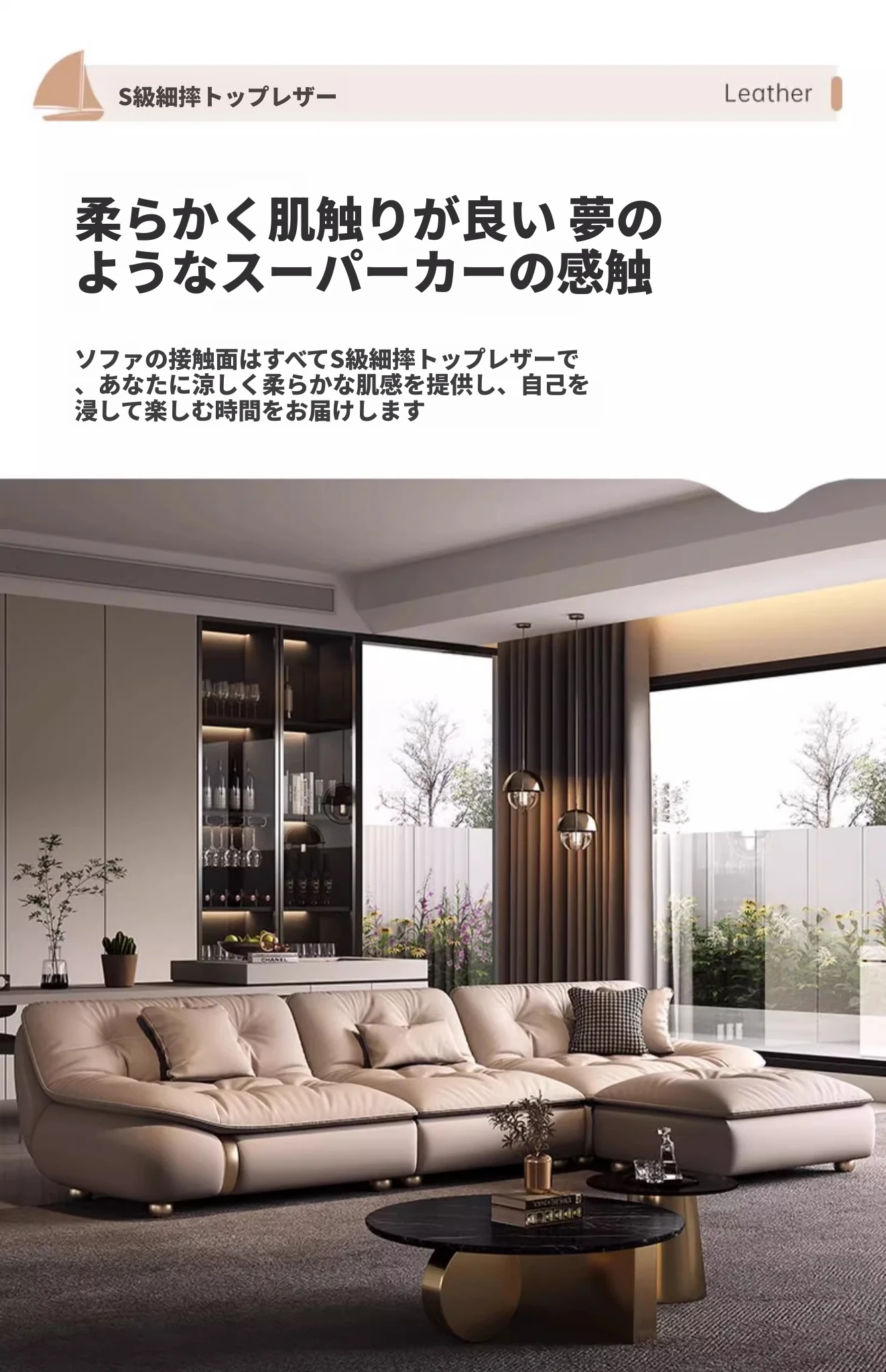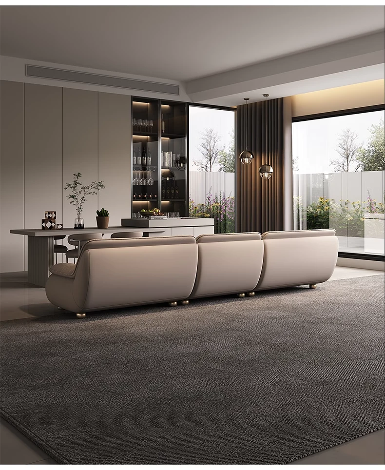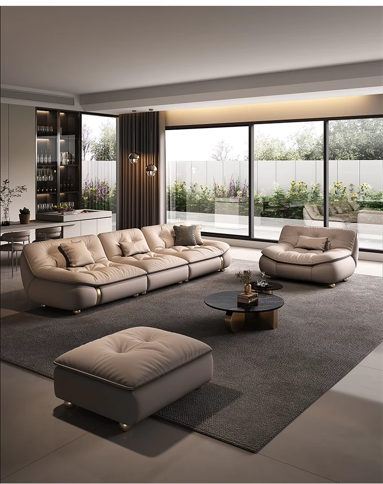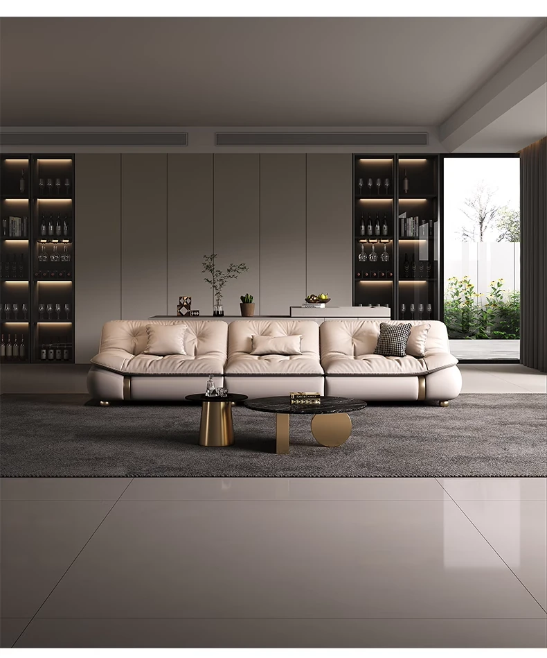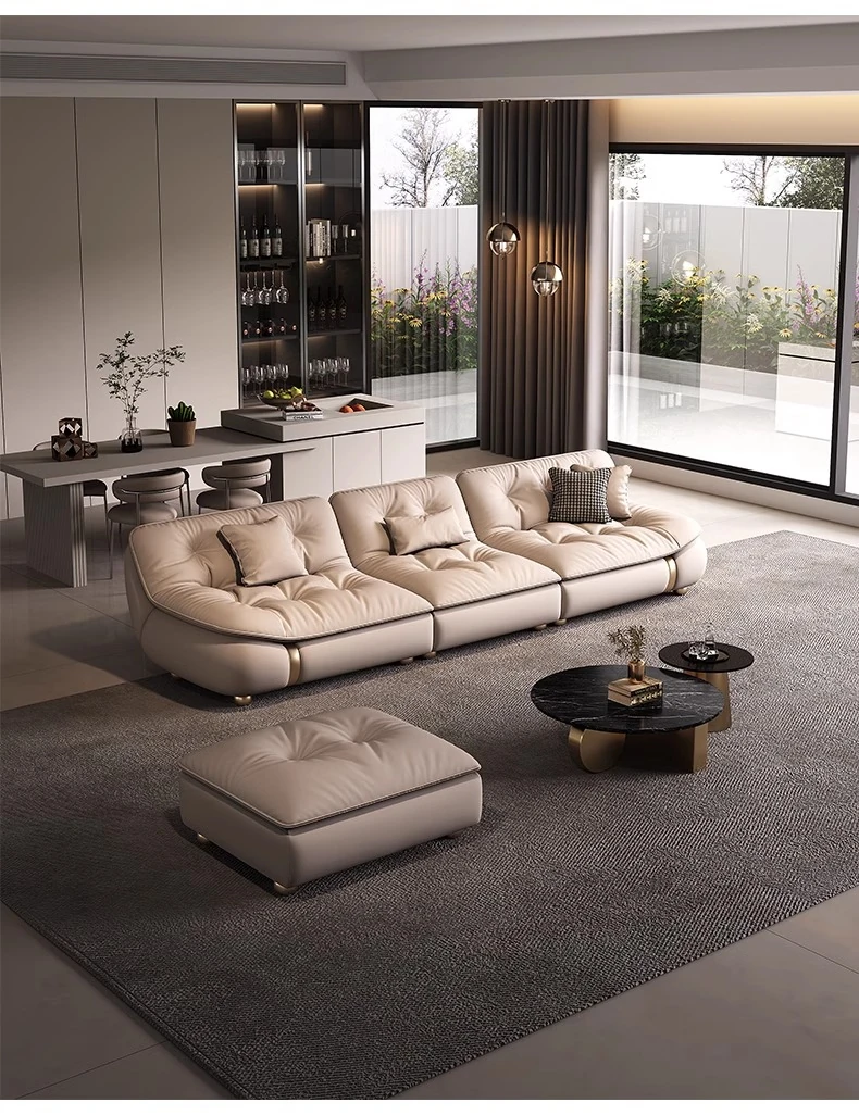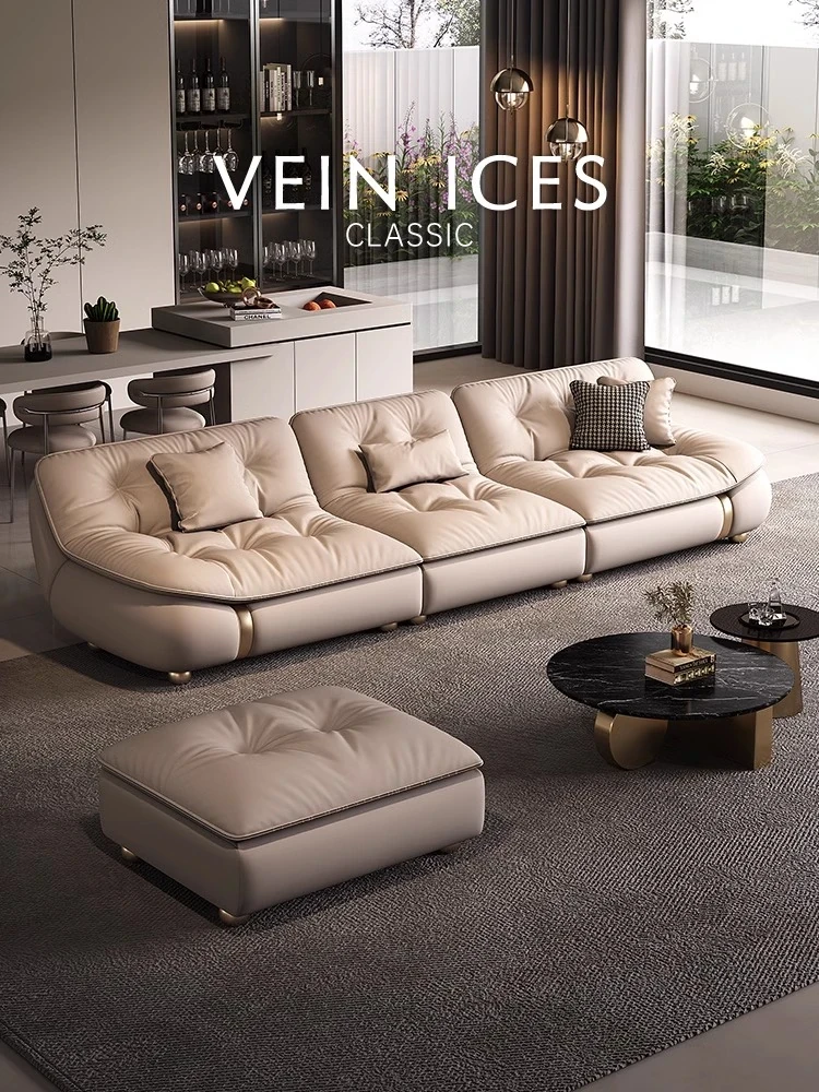 2025年新作!モダンでラグジュアリーなクリーム風ダウンセイルデザインの本革ソファ。大小様々なリビングにぴったりな直排タイプ。快適さとスタイルを両立させた贅沢な空間を演出します!