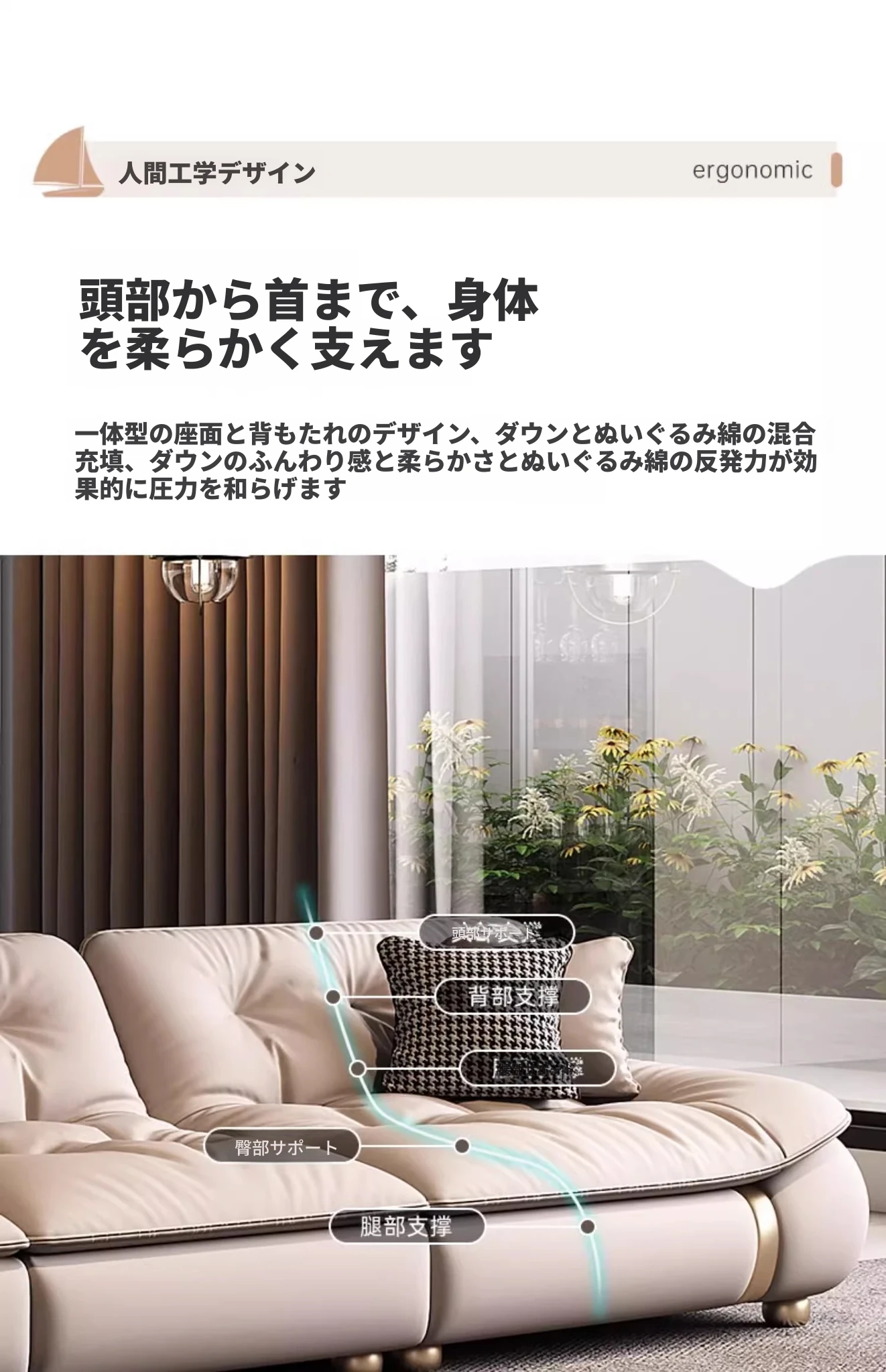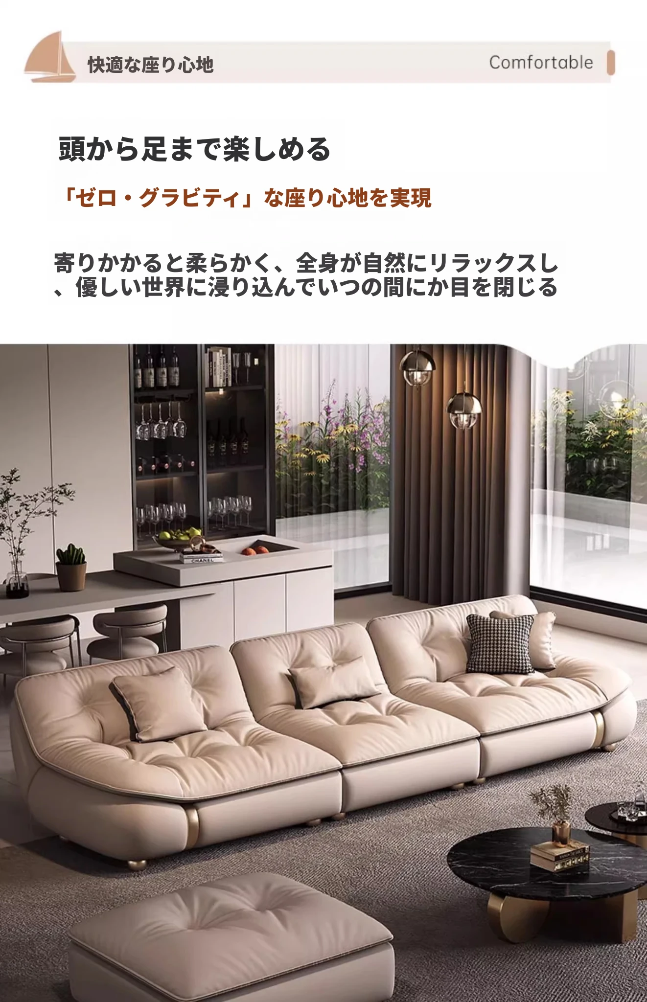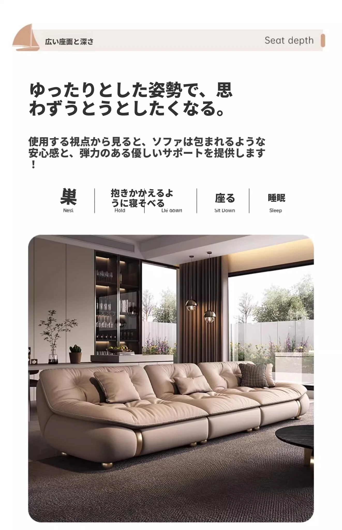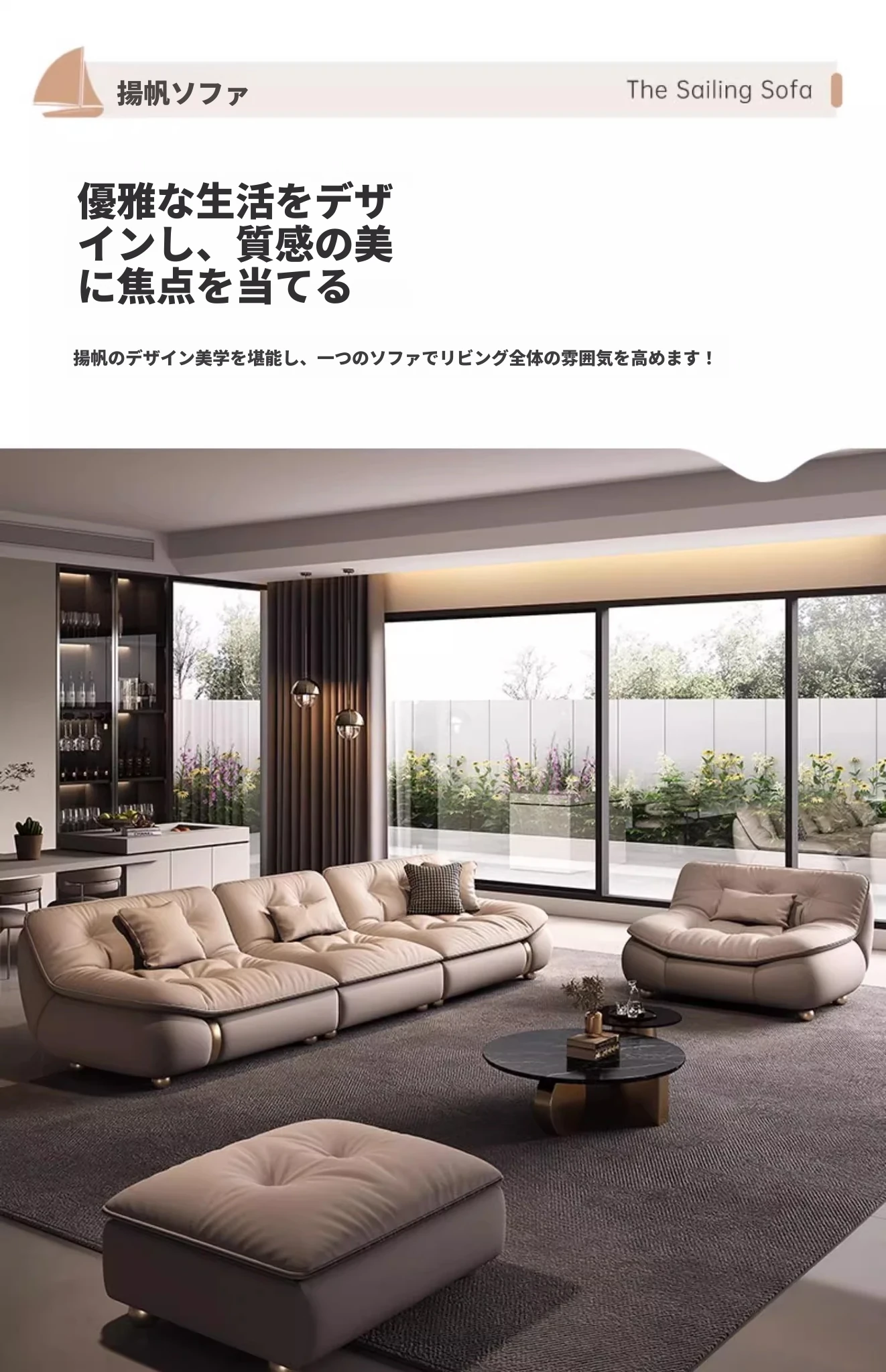 2025年新作!モダンでラグジュアリーなクリーム風ダウンセイルデザインの本革ソファ。大小様々なリビングにぴったりな直排タイプ。快適さとスタイルを両立させた贅沢な空間を演出します!