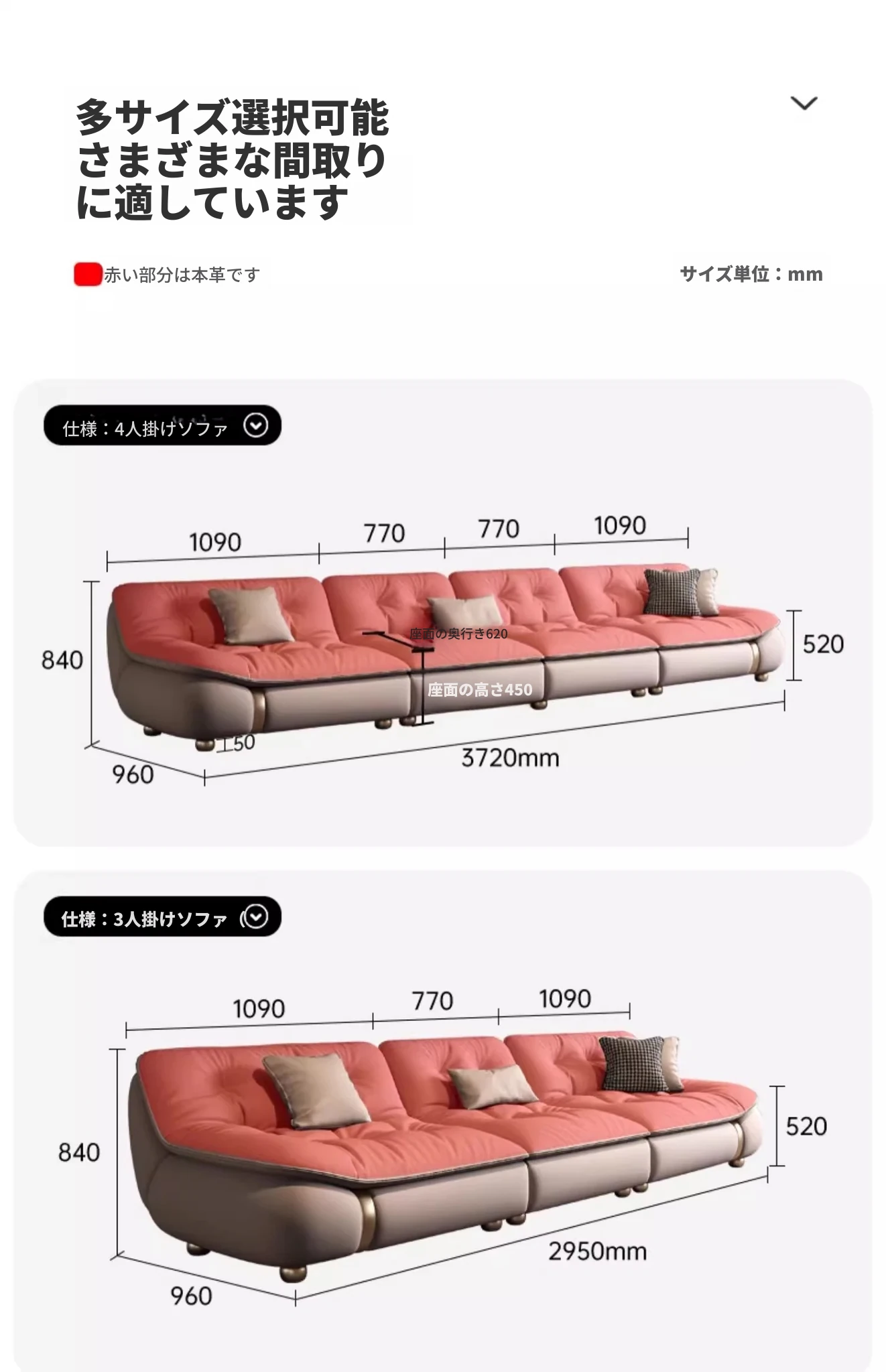 中厚本革2.6メートル直排3人用