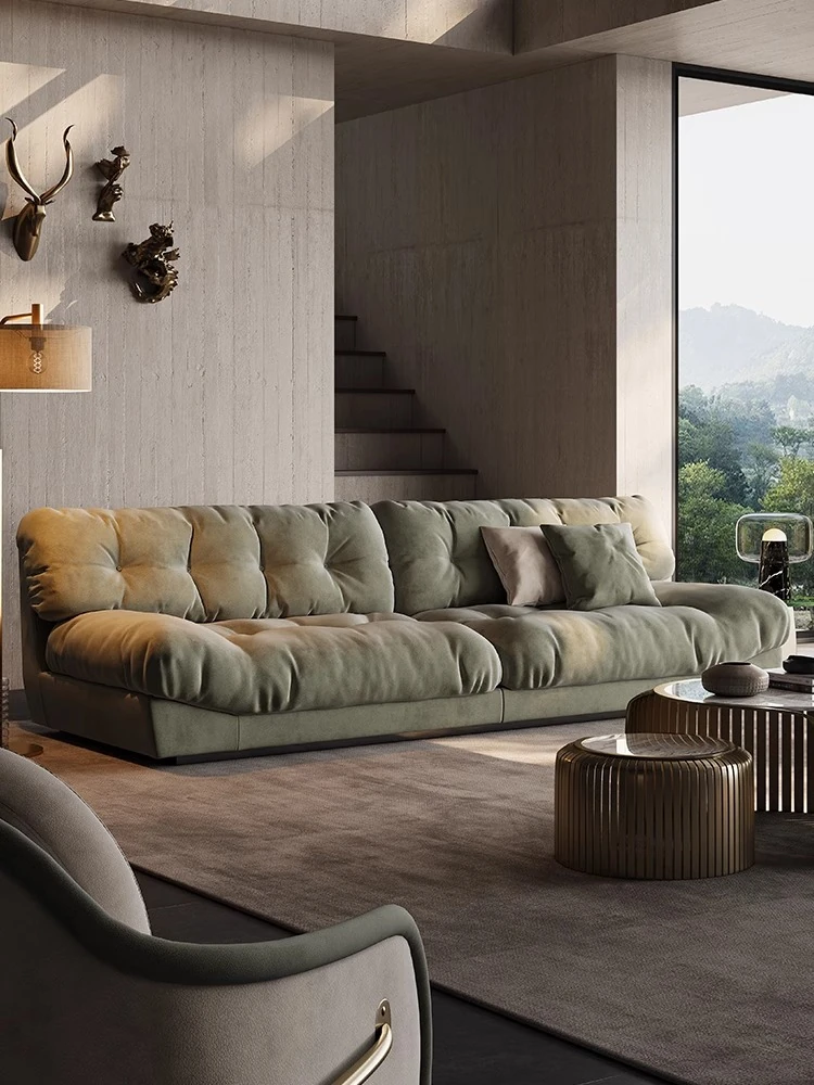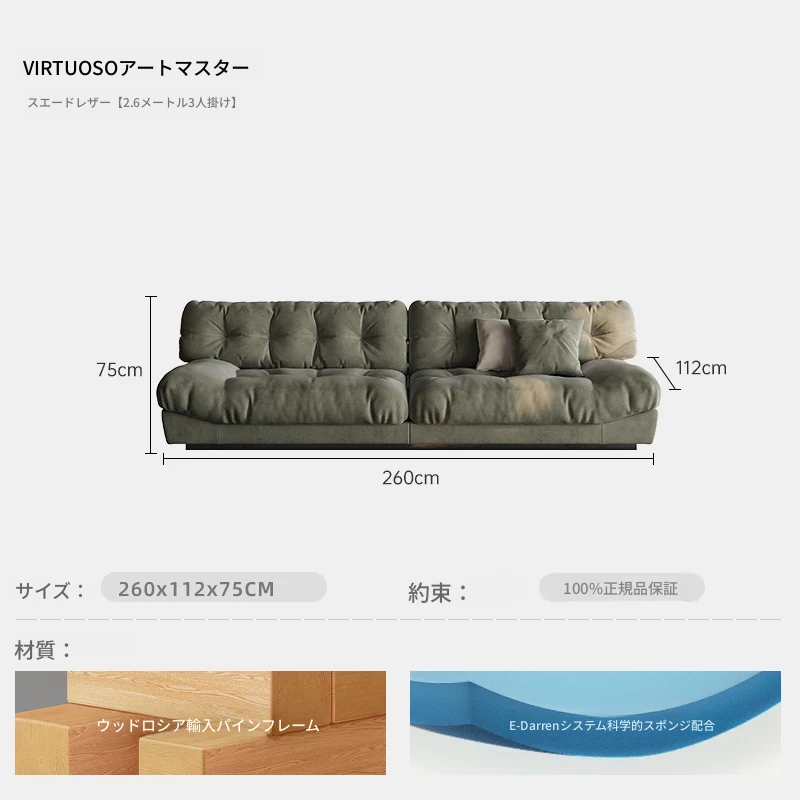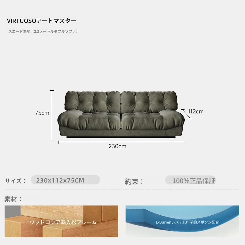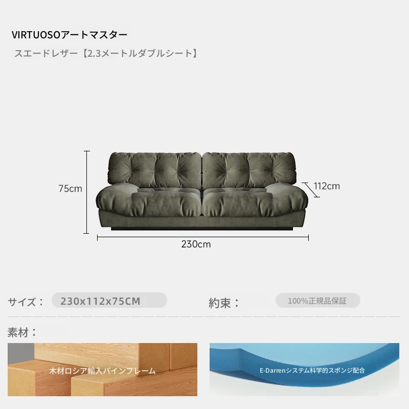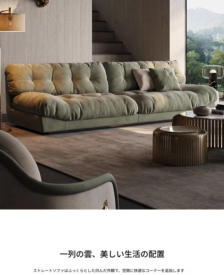 アートマスター 本革 クラウドソファ イタリアンミニマルデザイン 高級大平層別荘リビング用 スムースサンド布ソファで、洗練された空間を演出!