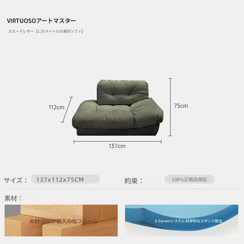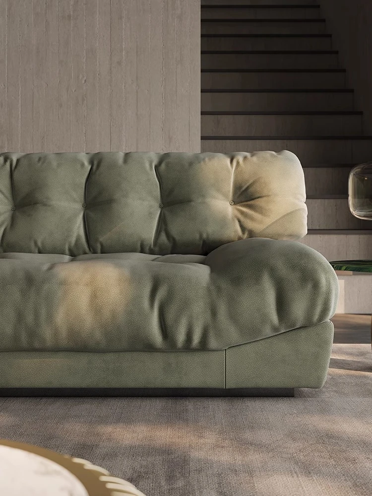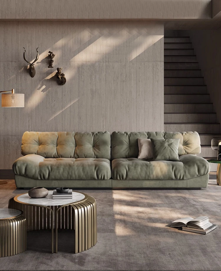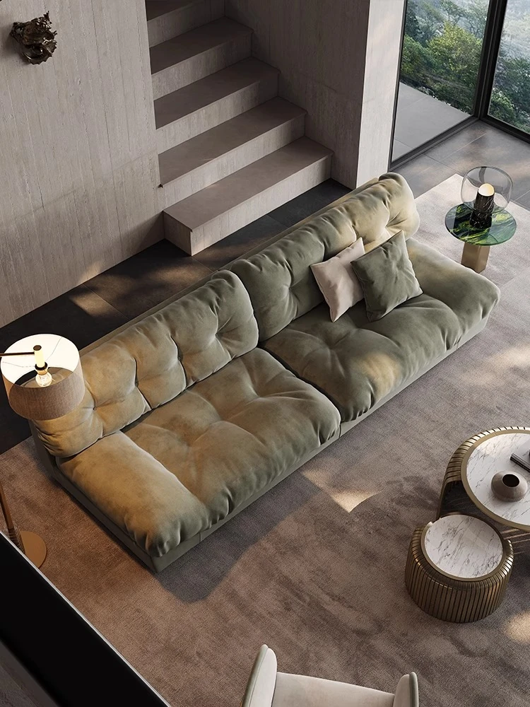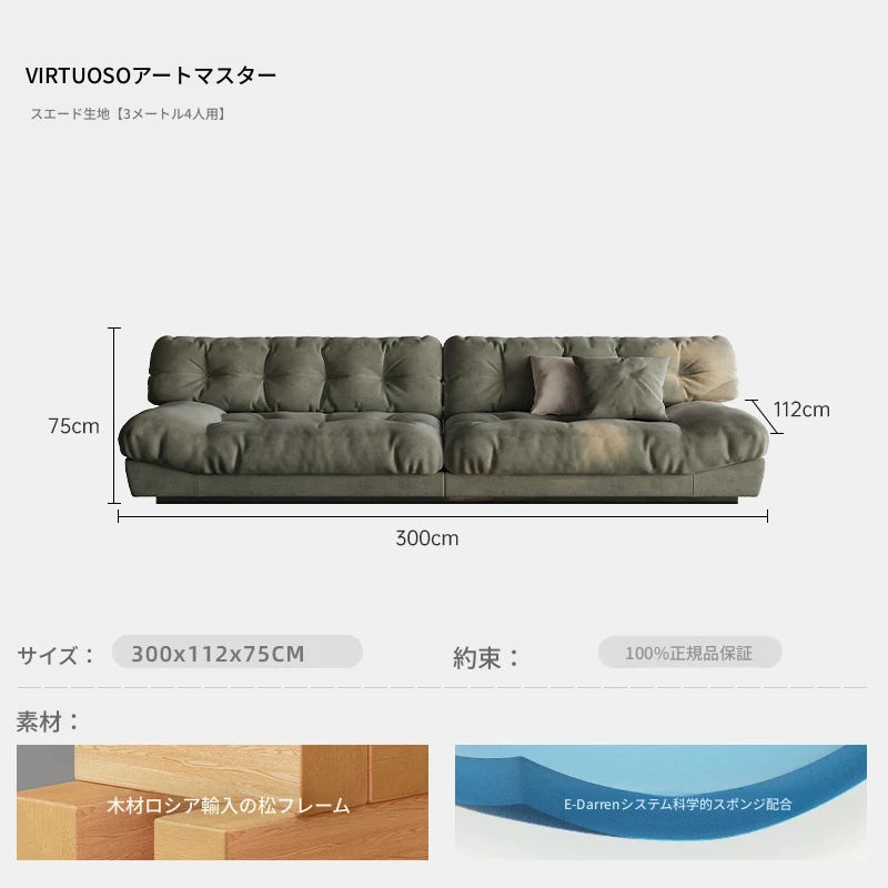 アートマスター 本革 クラウドソファ イタリアンミニマルデザイン 高級大平層別荘リビング用 スムースサンド布ソファで、洗練された空間を演出!