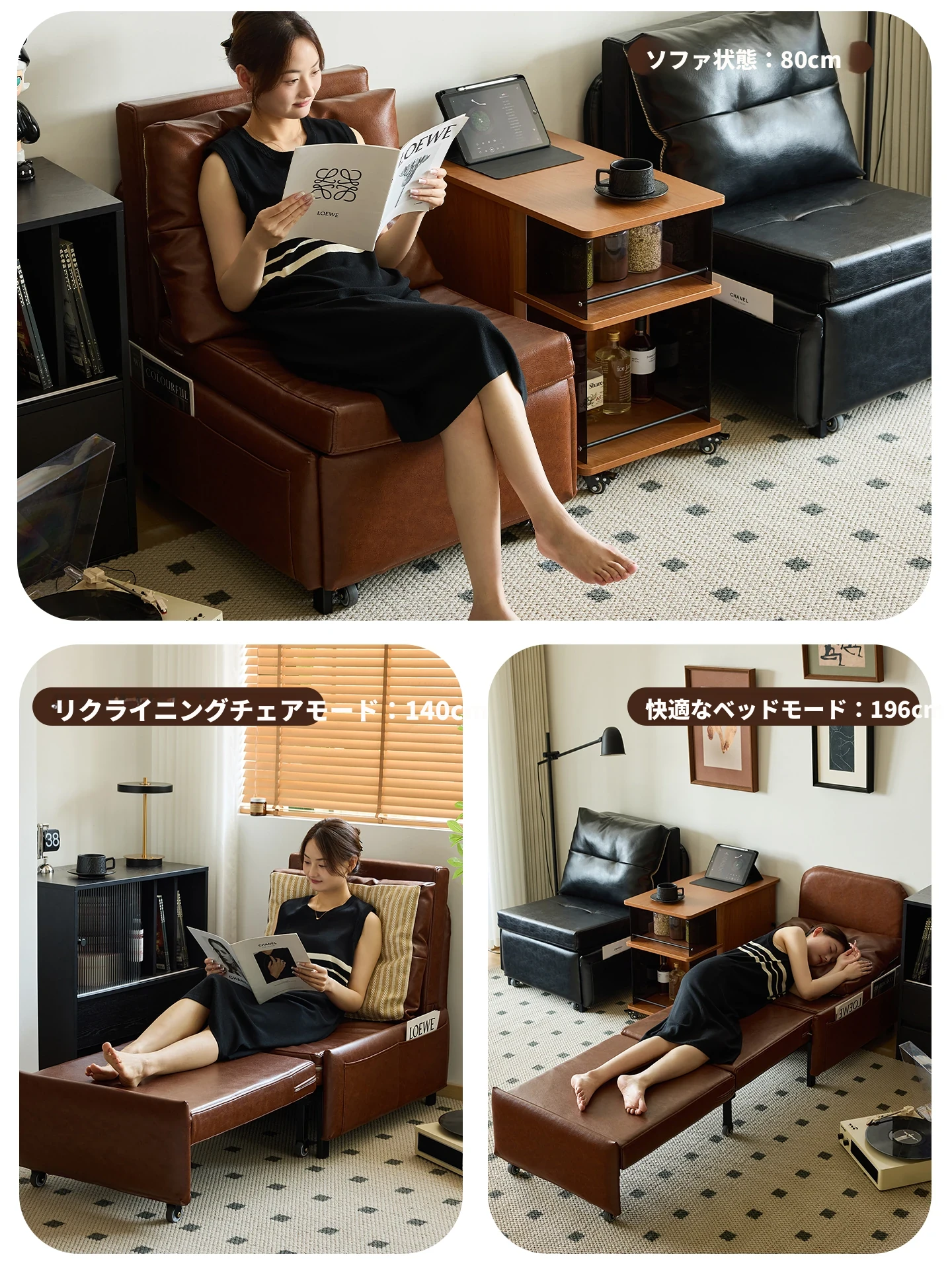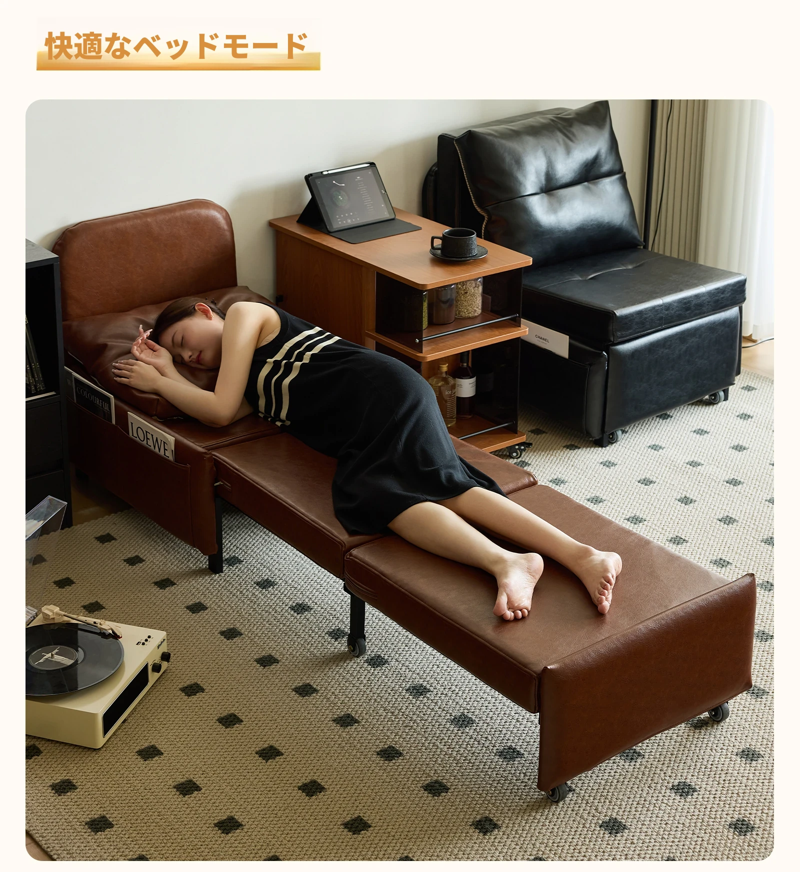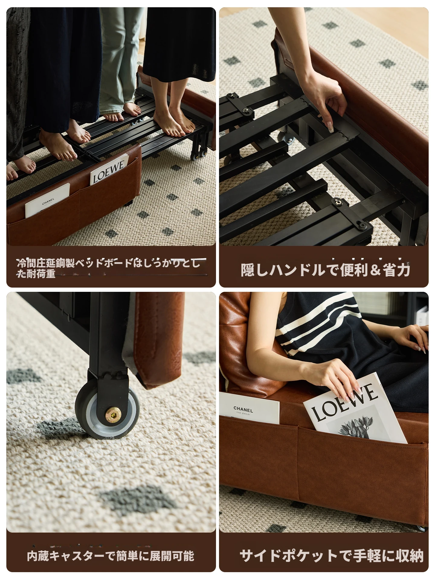 古風デザインの小型折りたたみソファベッド - 家庭用、リビングや寝室にぴったり!多機能で伸縮可能な一人用ソファベッドで、スペースを有効活用。快適な睡眠とスタイリッシュなインテリアを両立!