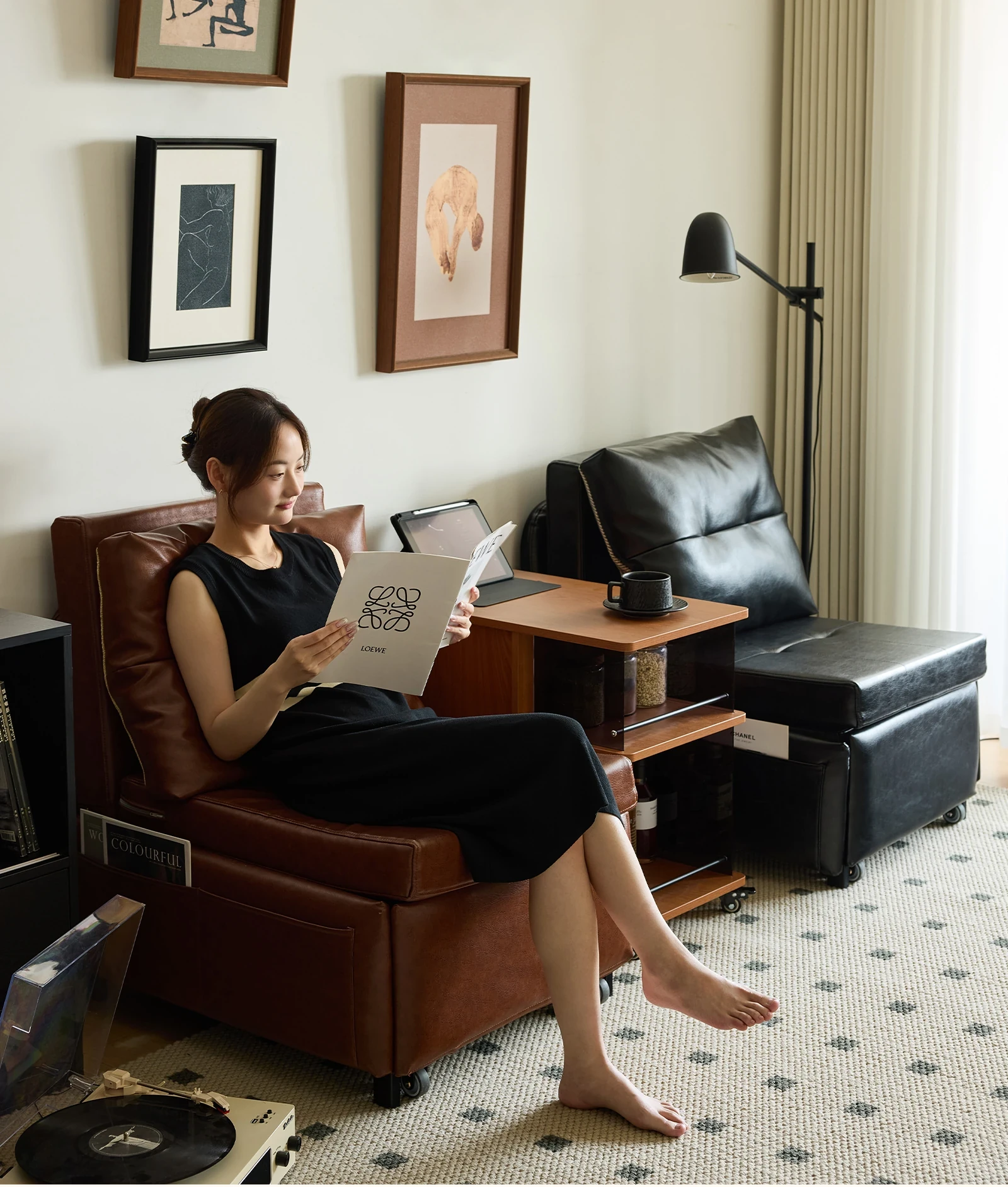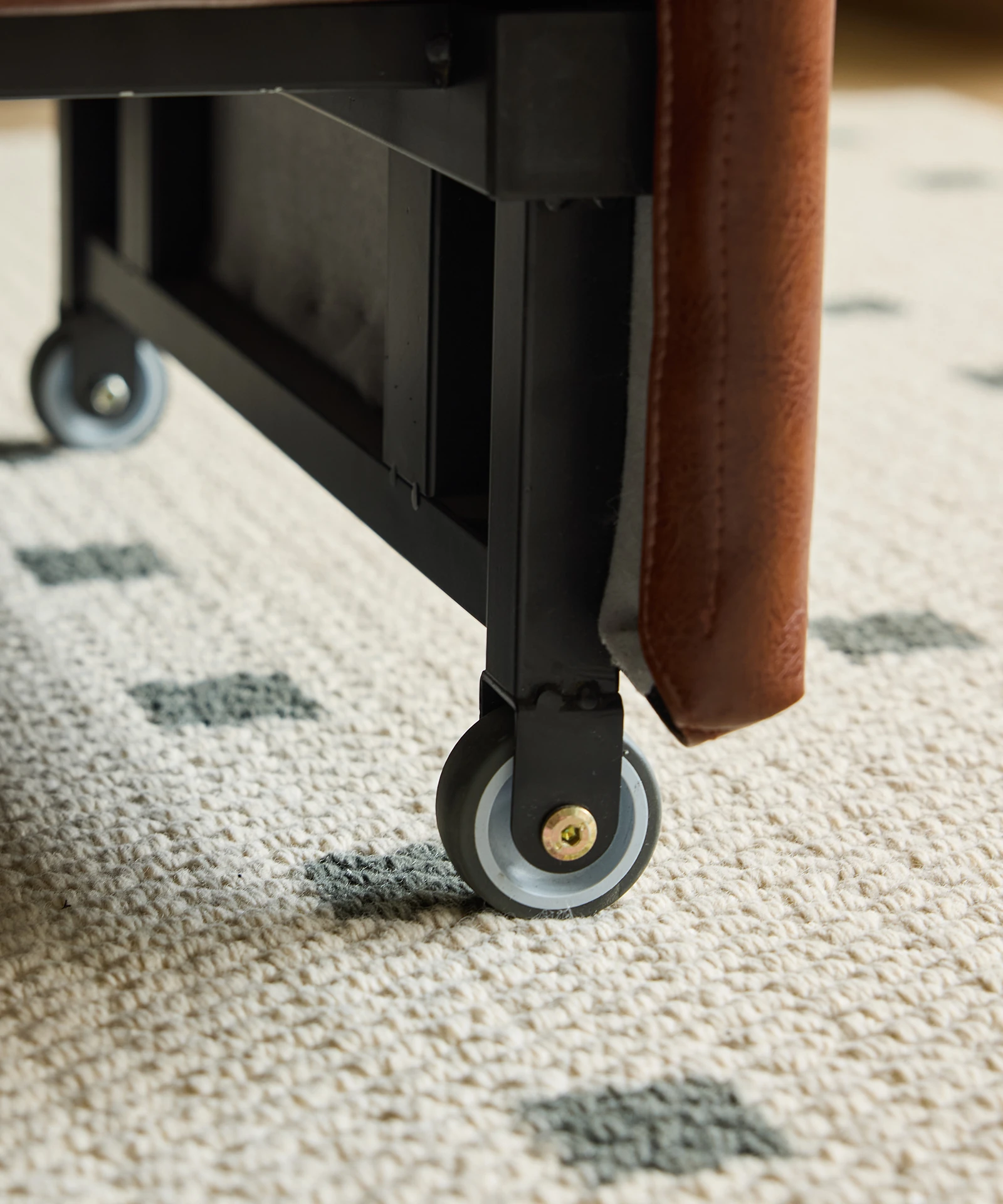 【エコ牛革-中古ブラウン+中古ブラック】ソファベッド+移動式ティーキャビネット