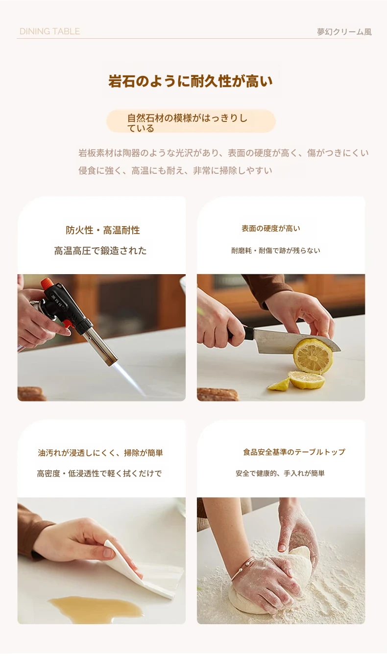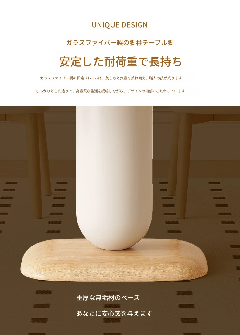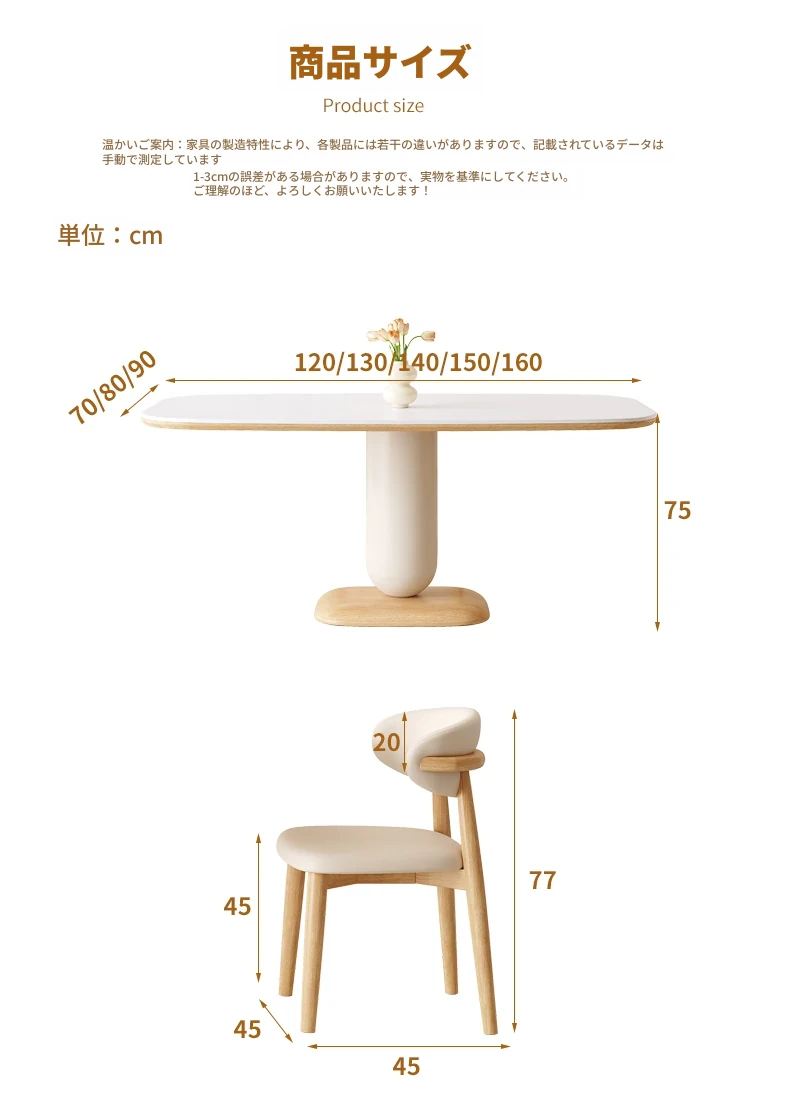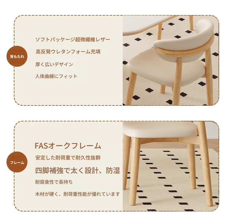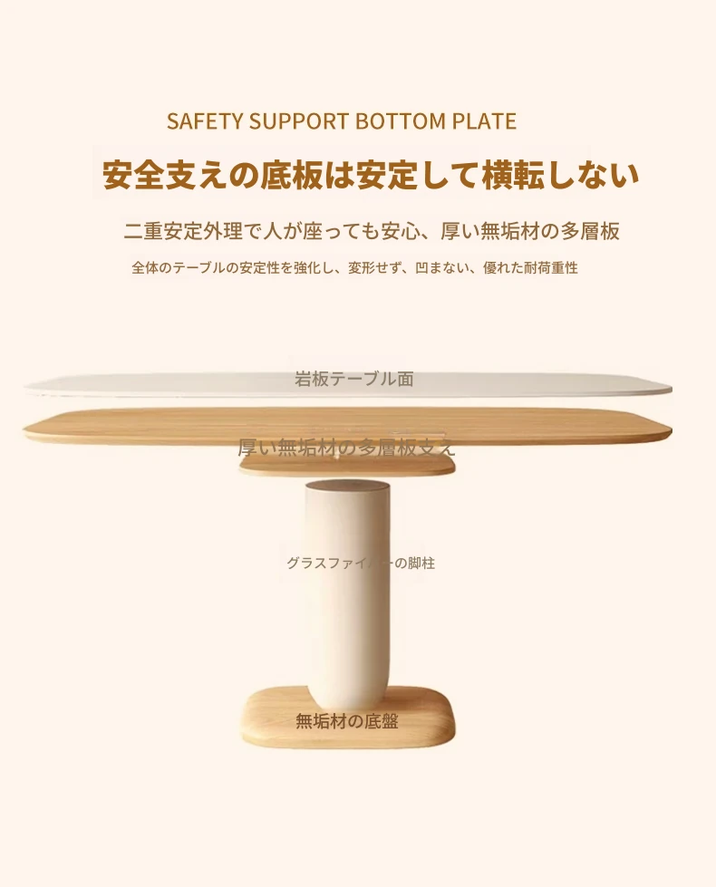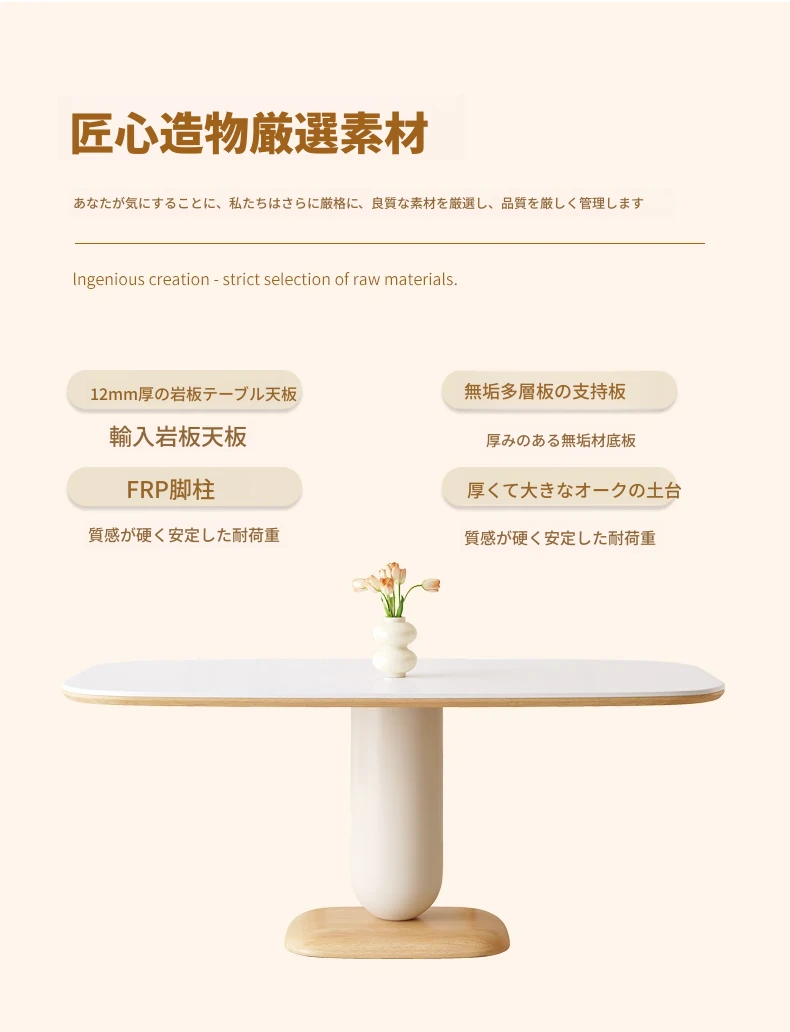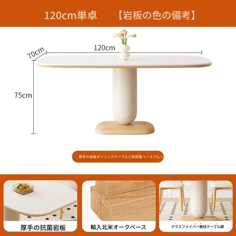 クリーム風の岩板ダイニングテーブル&チェアセット - わびさび風の無垢材使用、北欧スタイルの楕円形デザイン!全実木製で、温かみのある食卓を実現。家庭用にぴったりな、心安らぐ和の雰囲気をお楽しみください。