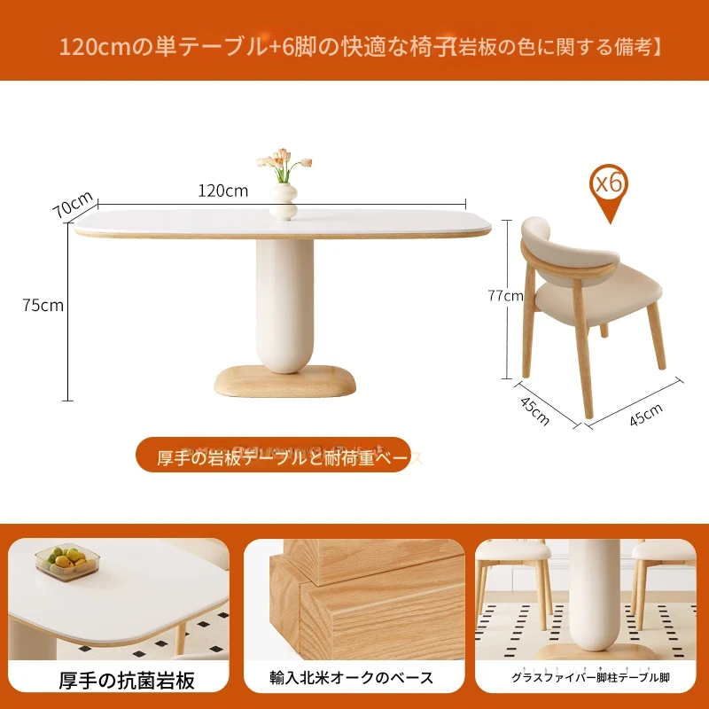 120*70*75ダイニングテーブル+6脚の快適なダイニングチェア