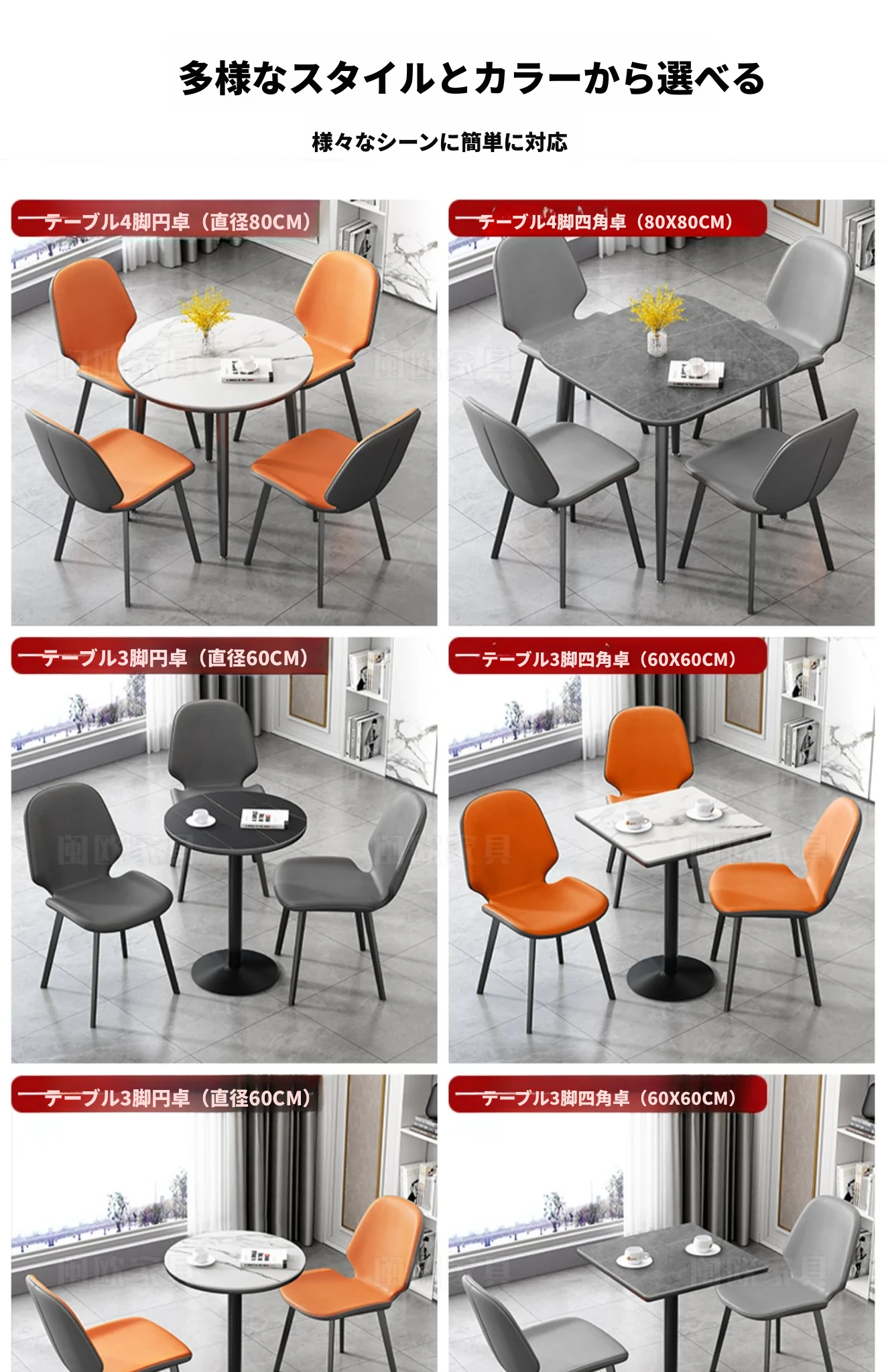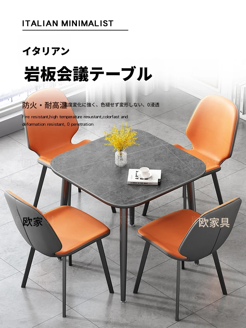 岩板面アーマーニーグレー方60*60*75 内オレンジ外グレー1テーブル3椅子