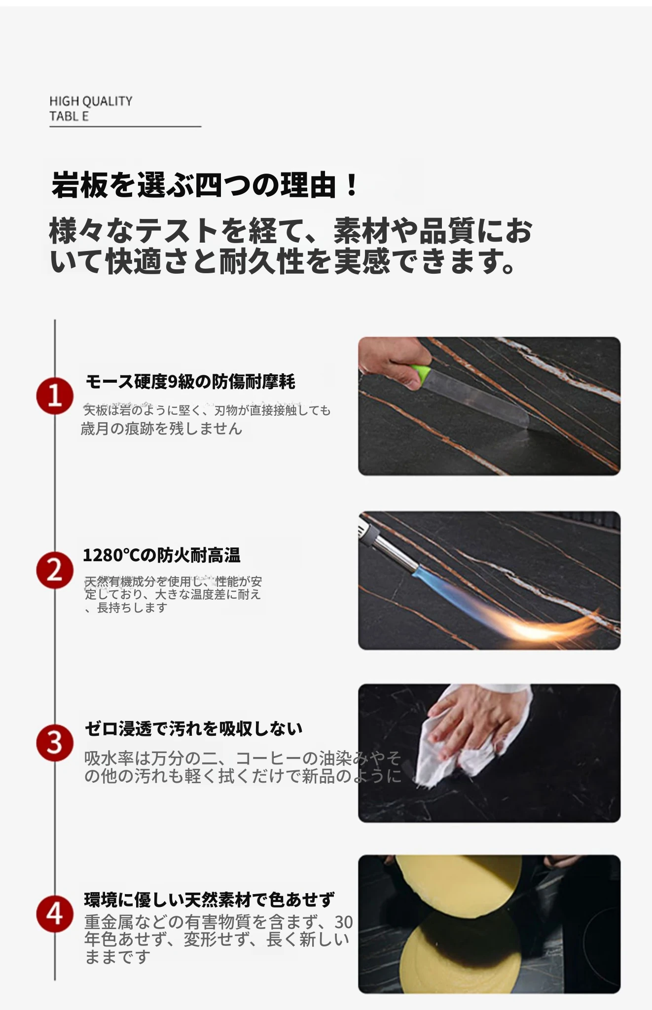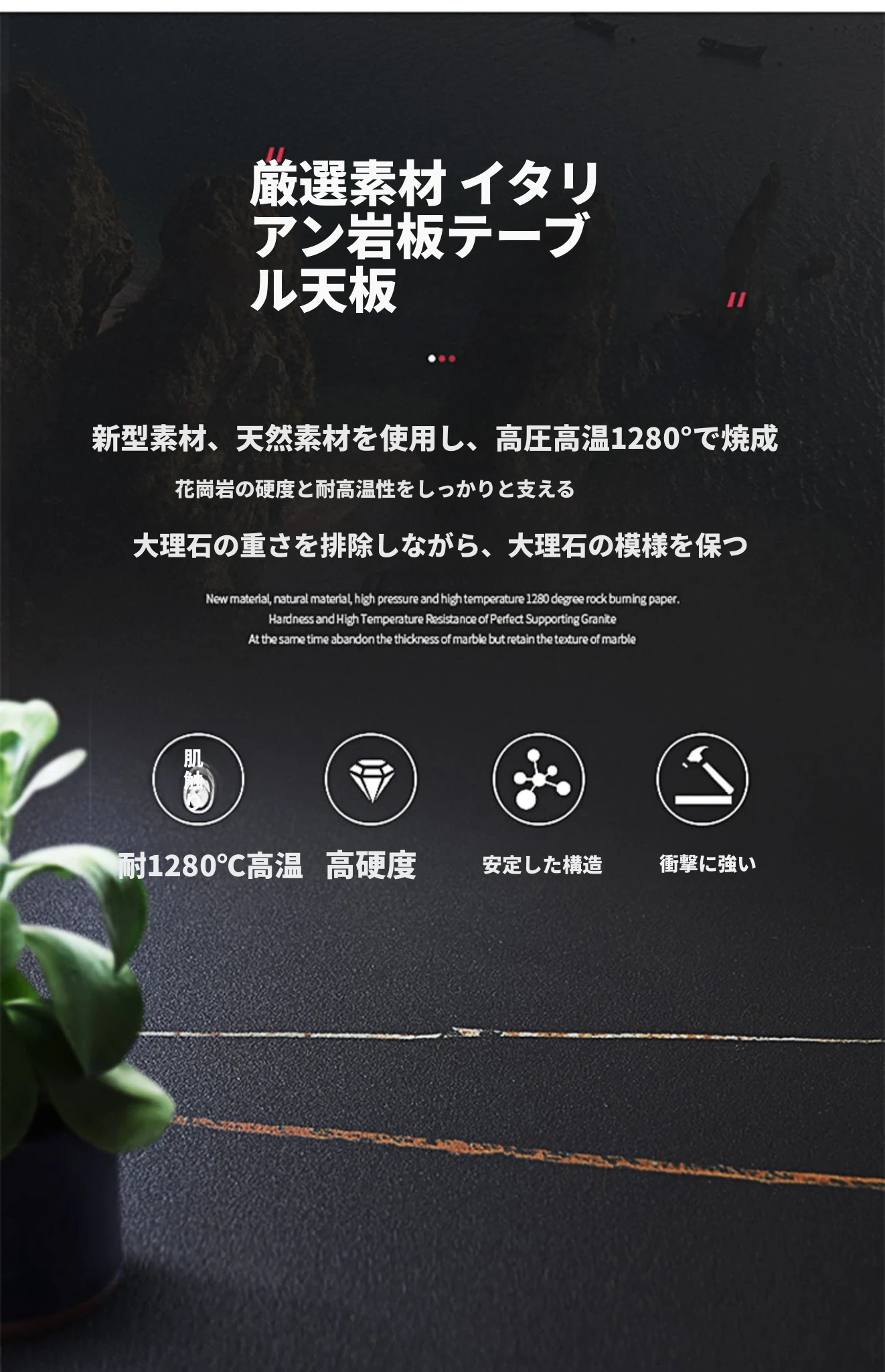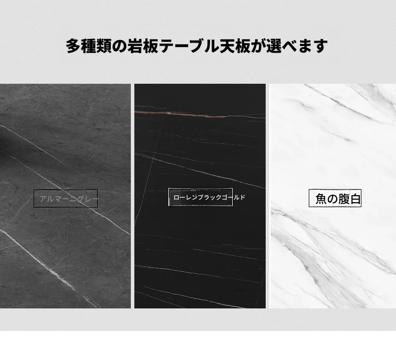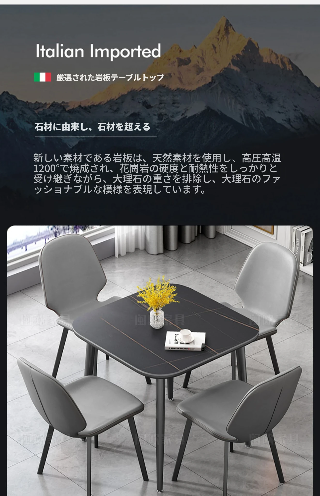 岩板面ローレンブラックゴールド方60*60*75 グレーペ皮1テーブル3椅子
