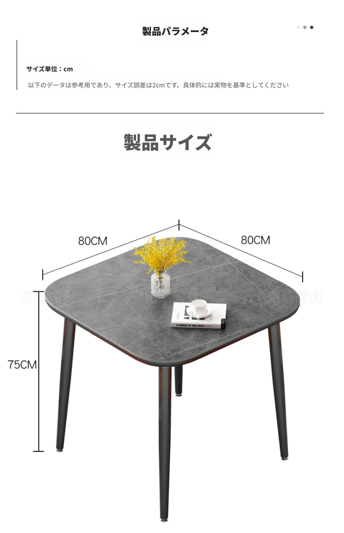 岩板面フィッシュベリーホワイト方60*60*75 グレーペ皮1テーブル3椅子
