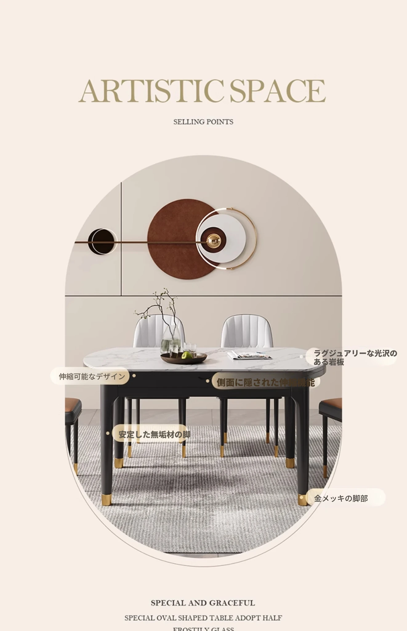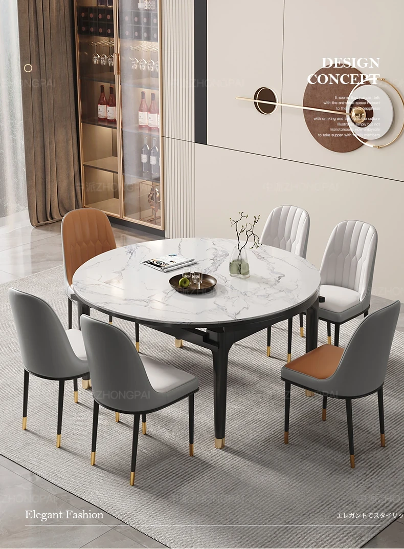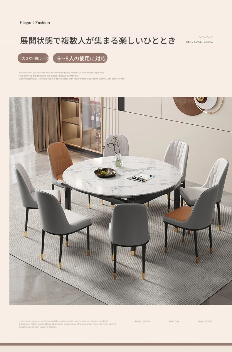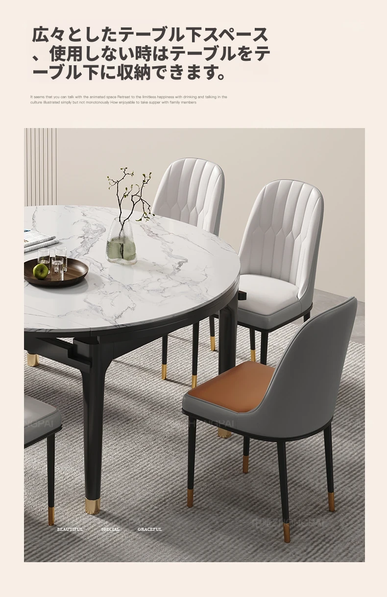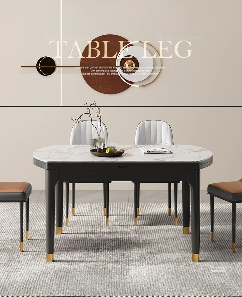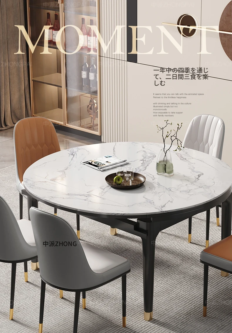 2023年新作!軽やかに変形できるラグジュアリーな無垢材ロックボードダイニングテーブルセット。北欧スタイルの伸縮式折りたたみテーブルと椅子のコンビネーションで、家族や友人との素敵な食卓を演出します!