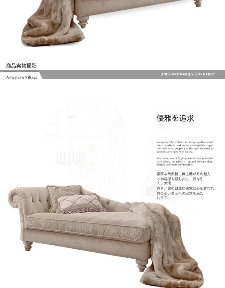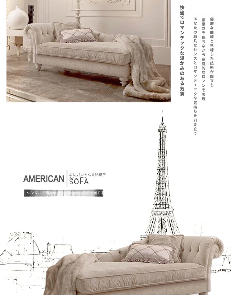 エレガントな欧風ラグジュアリー・カウチソファ|フランス田園スタイルの贅沢な寝椅子|寝室にぴったりな優雅なデザインで、リラックスしたひとときを提供します。