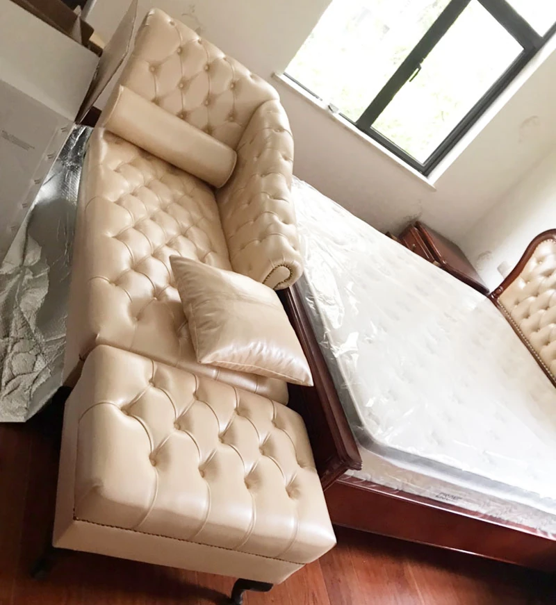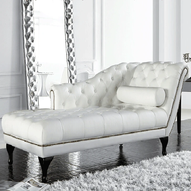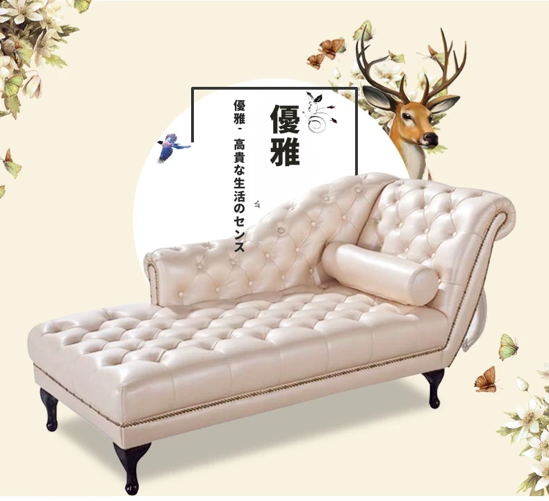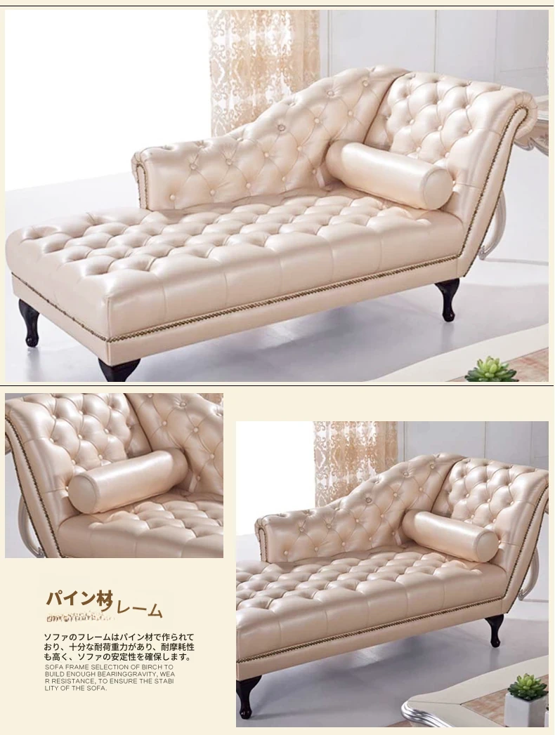 エレガントな欧風デザインのレザー製貴妃椅子 - 新古典スタイルのリビング・バルコニー用リラックスソファ、寝室にぴったりの贅沢で快適なひとときをお楽しみください!