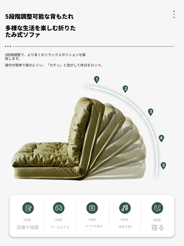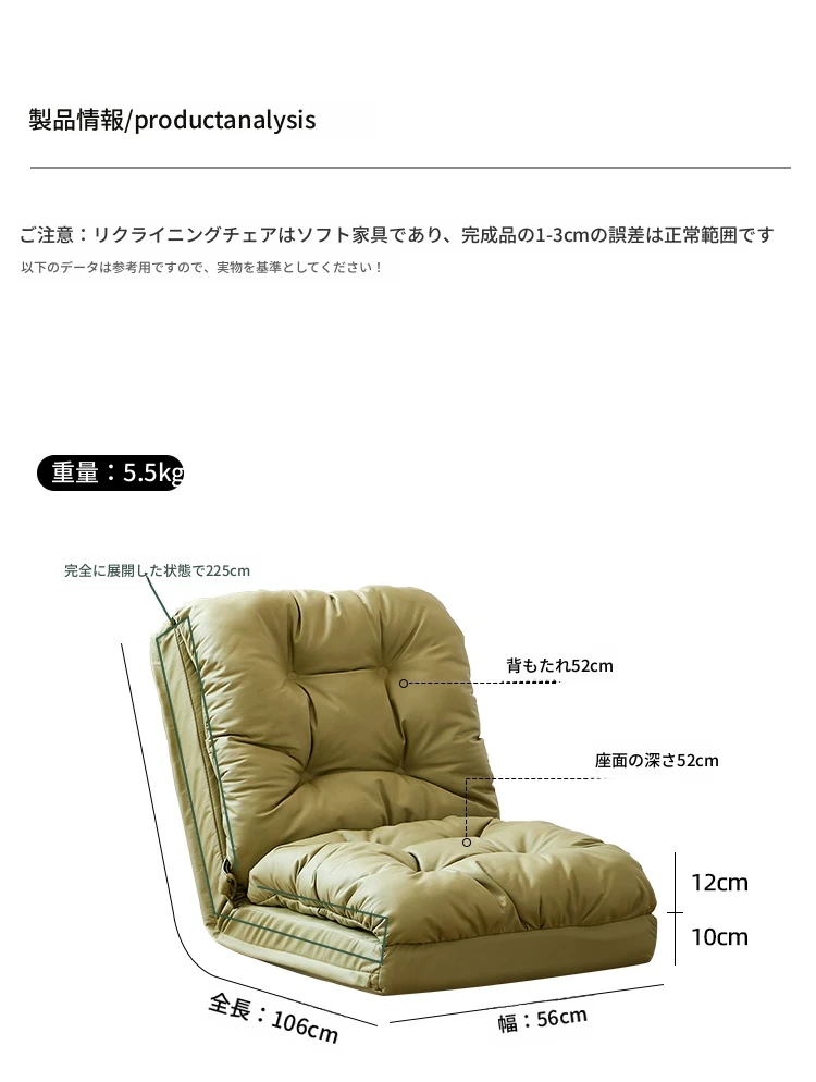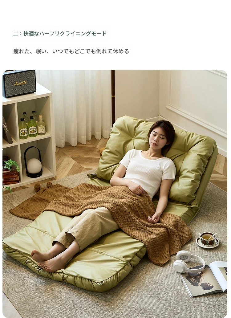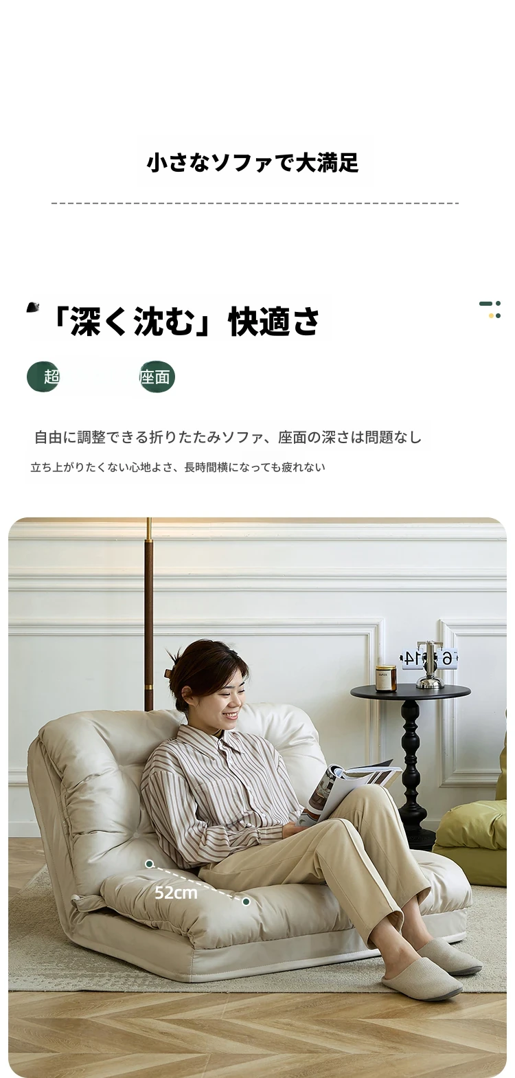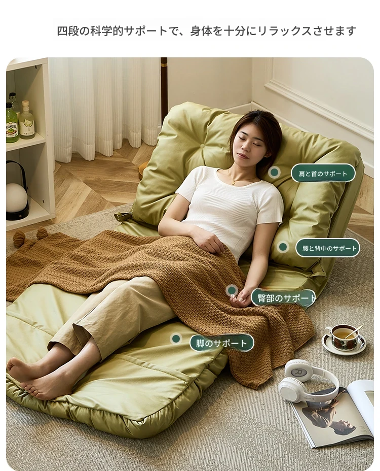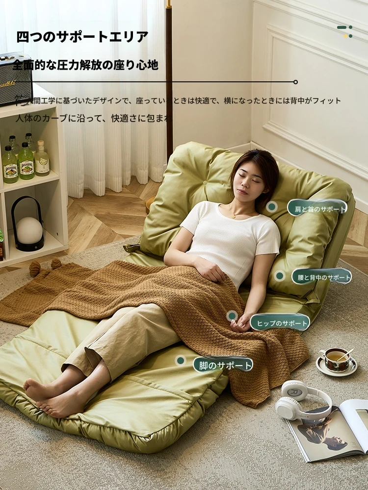 折りたたみ式リラックスソファ|寮用ベッドサイドチェア|一人用|寝転がってリラックス|和室・バルコニーに最適!快適なひとときを提供します。