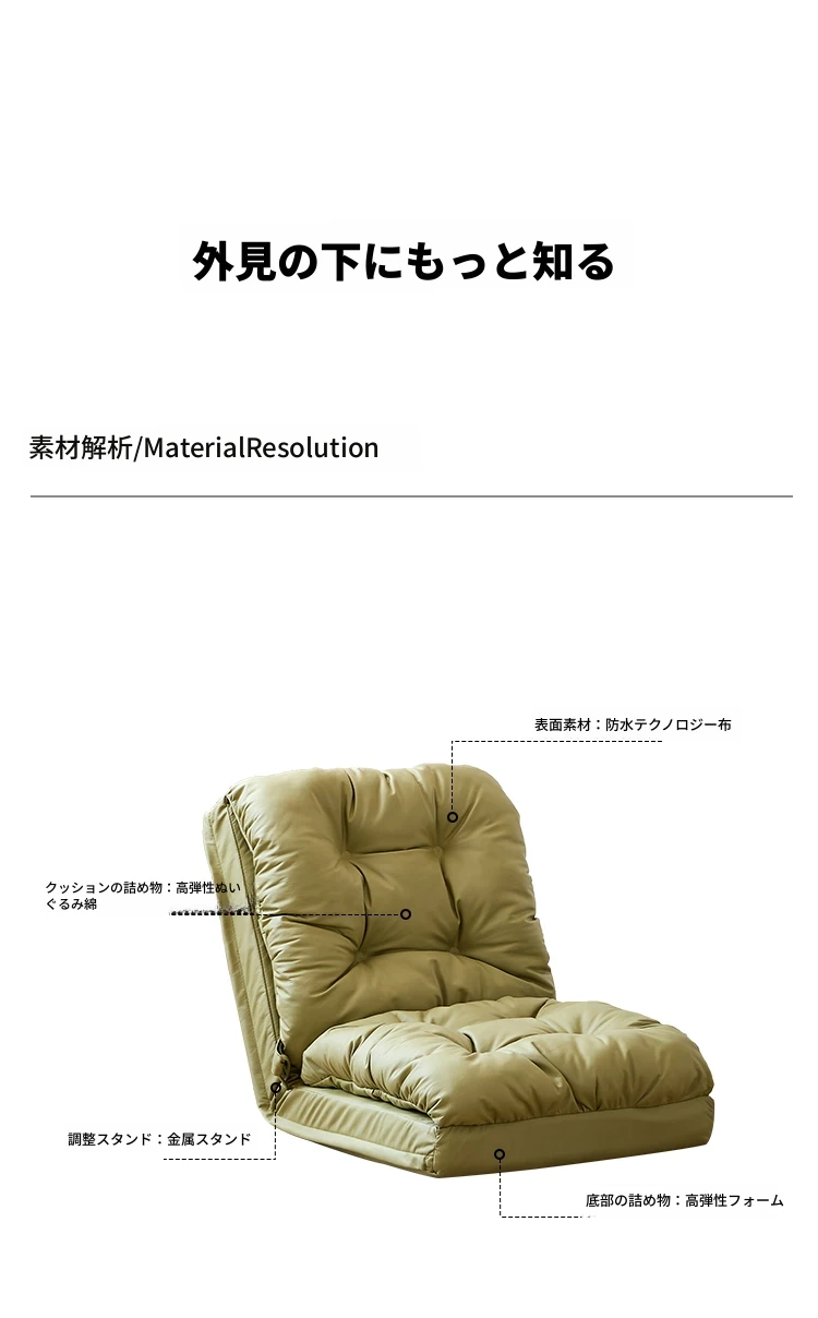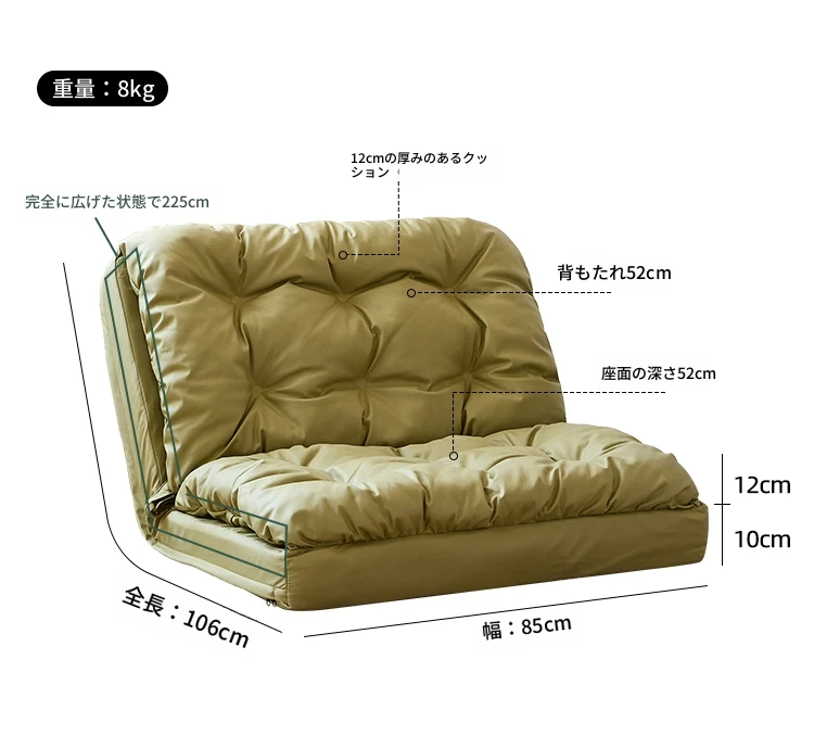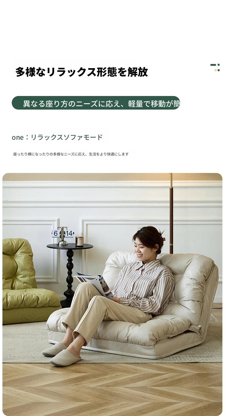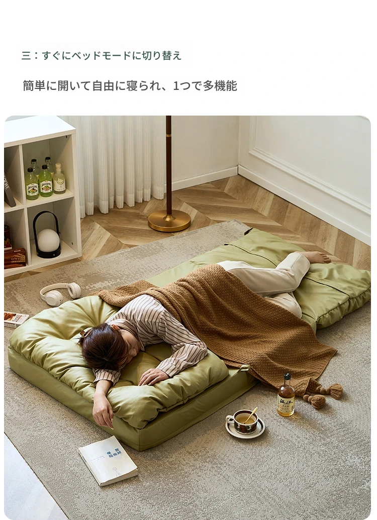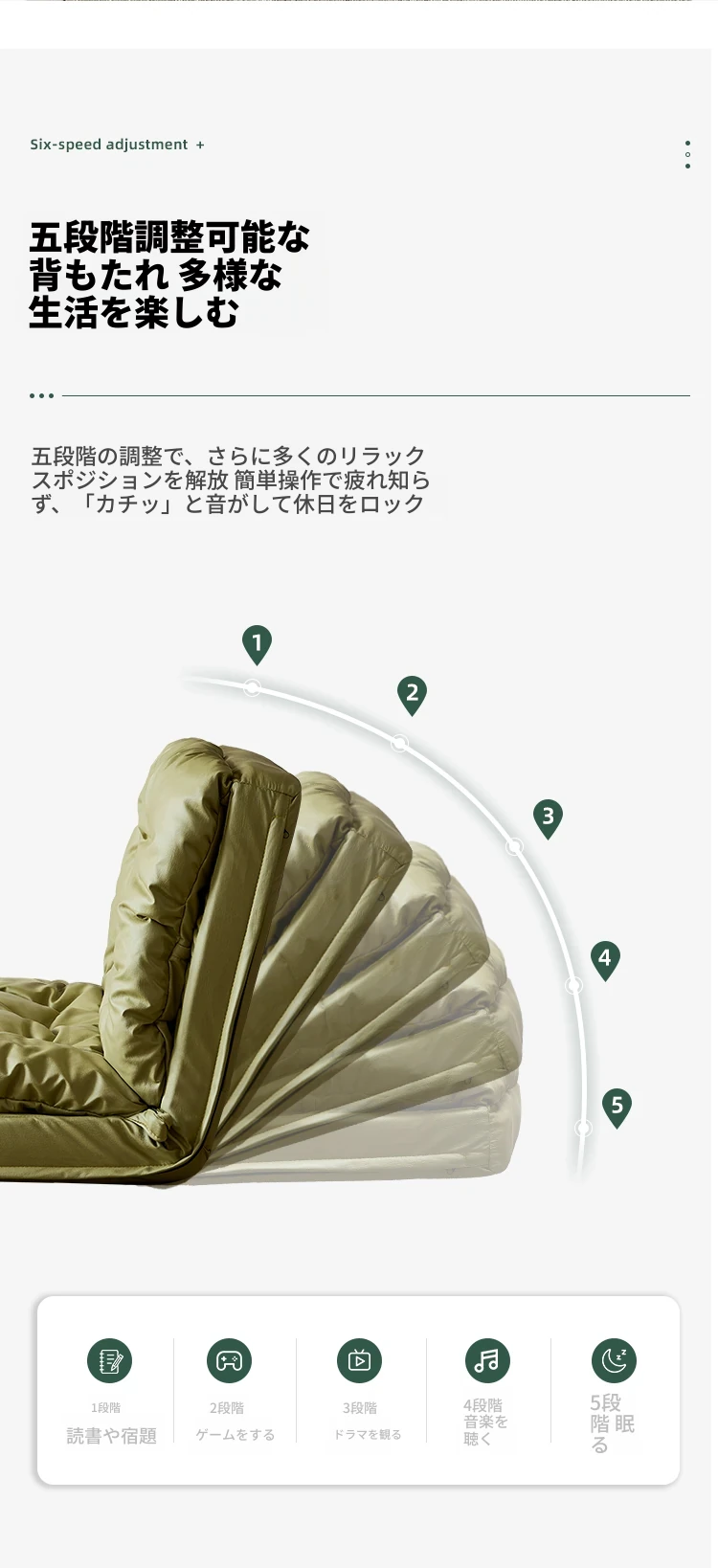 折りたたみ式リラックスソファ|寮用ベッドサイドチェア|一人用|寝転がってリラックス|和室・バルコニーに最適!快適なひとときを提供します。