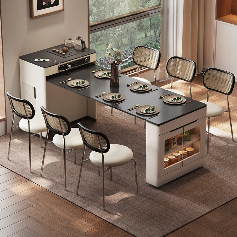 高級フラッグシップモデル伸縮アイランドテーブル+ Bタイプ折り畳みダイニングチェア*6(茶托あり)