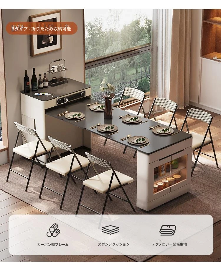 高級フラッグシップモデル伸縮アイランドテーブル+ Bタイプ折り畳みダイニングチェア*2(茶托あり)