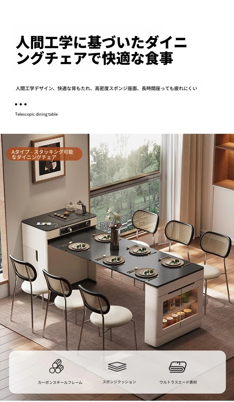 高級フラッグシップモデル伸縮アイランドテーブル+ Aタイプダイニングチェア*2(茶托あり)