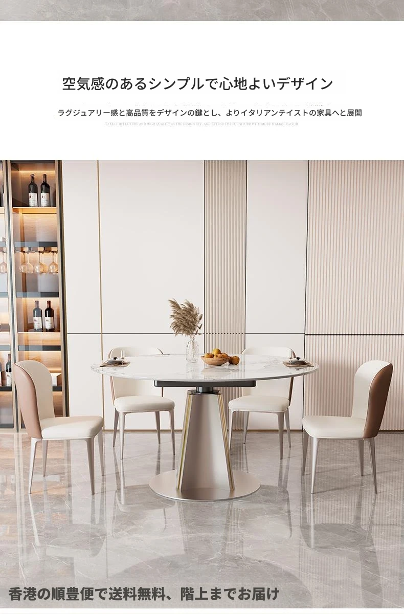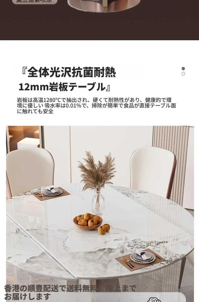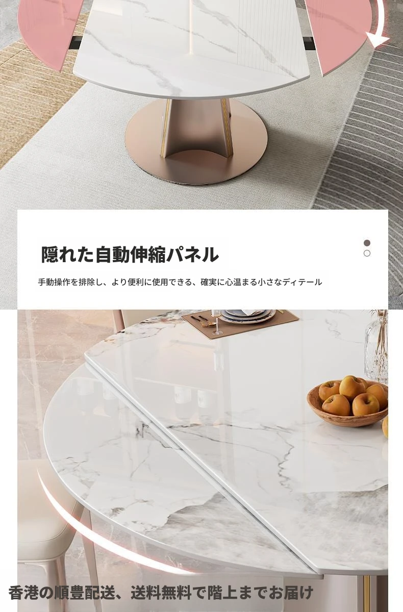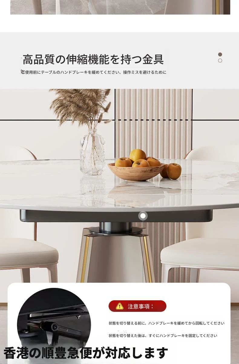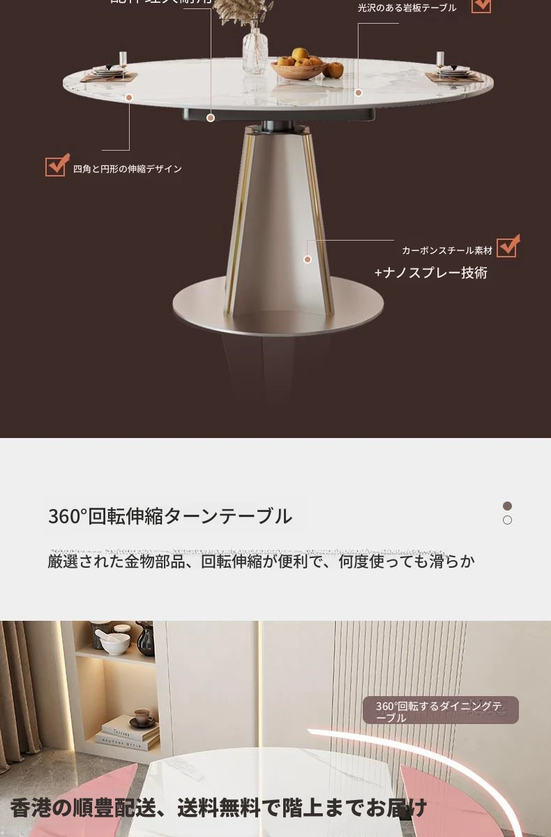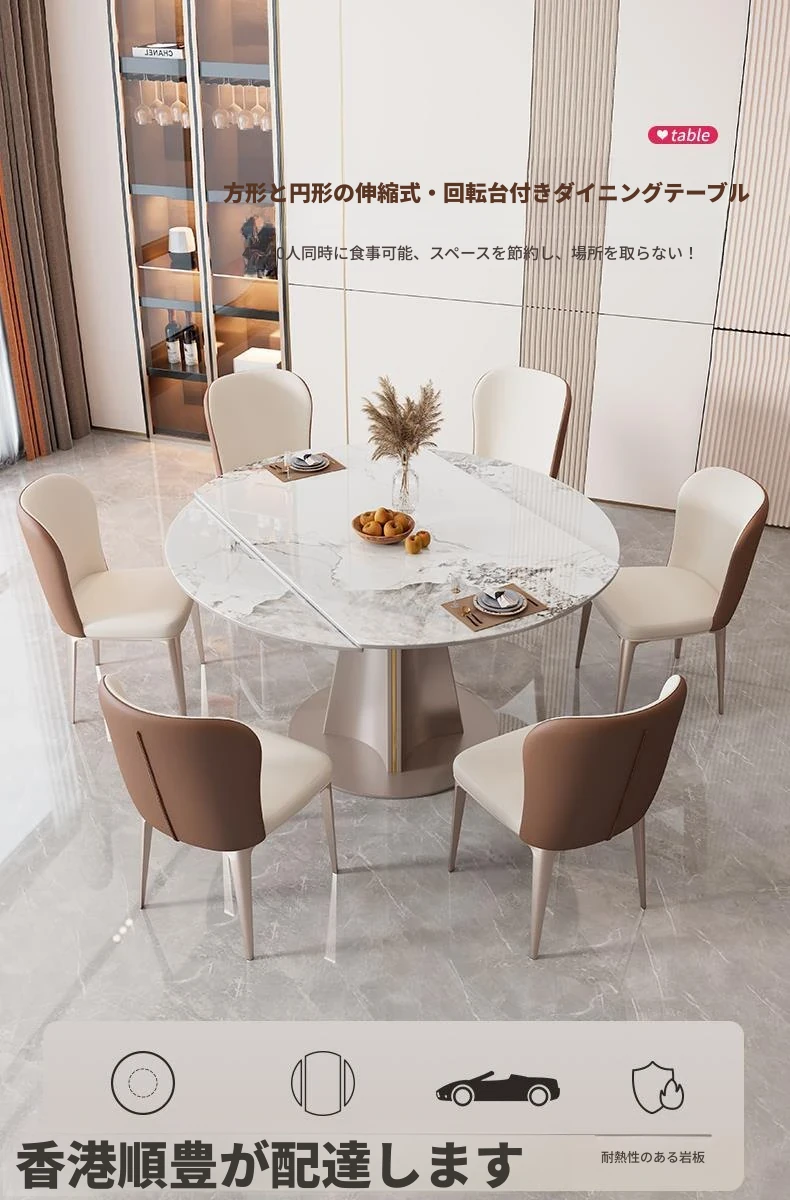 【香港送料無料】回転式伸縮岩板ダイニングテーブル - 小型家庭向け、円形と角形両用の便利なデザイン!おしゃれで機能的、スペースを有効活用できる理想のテーブルです!