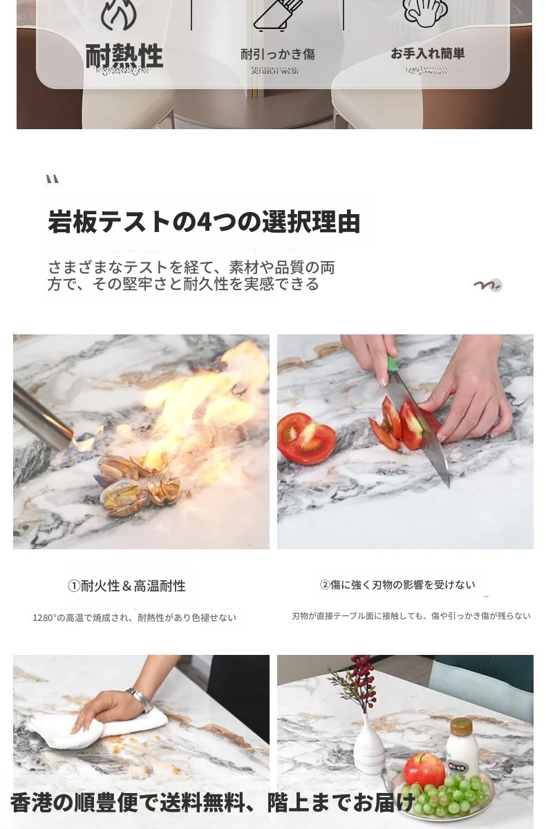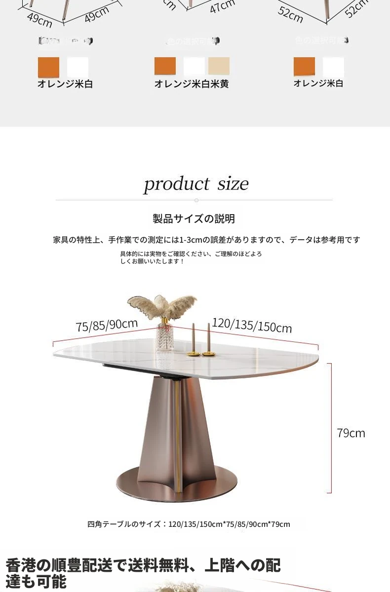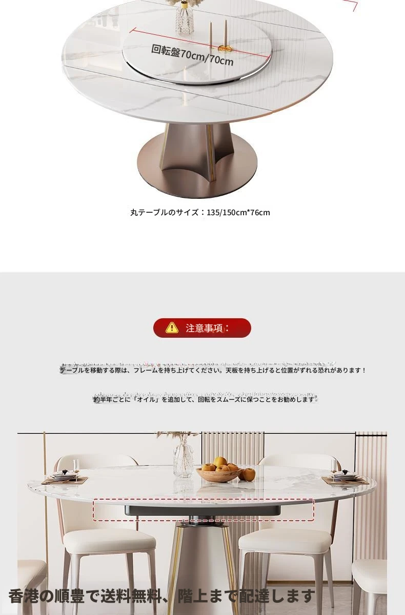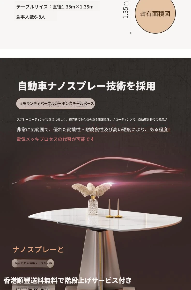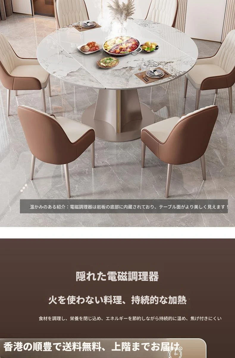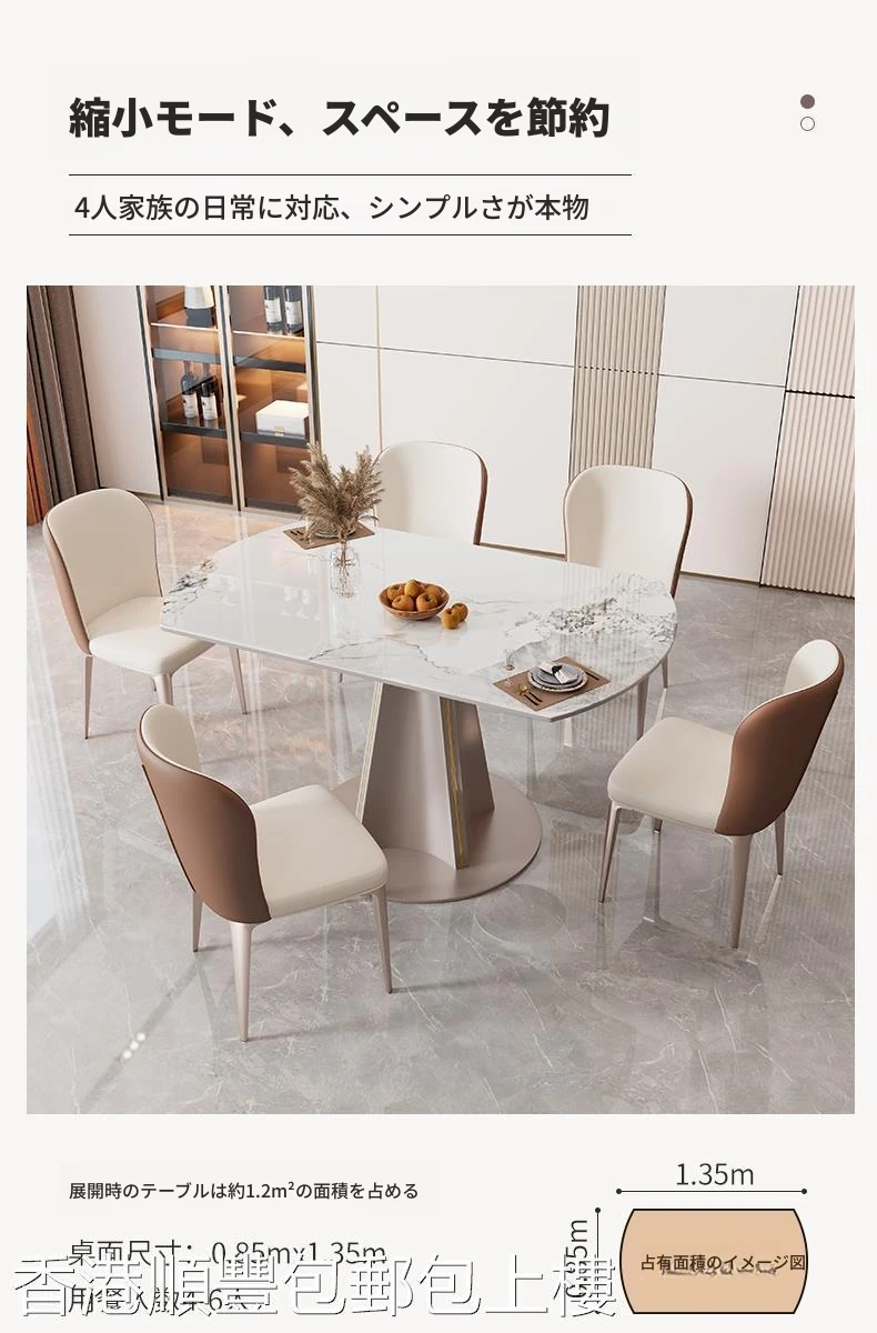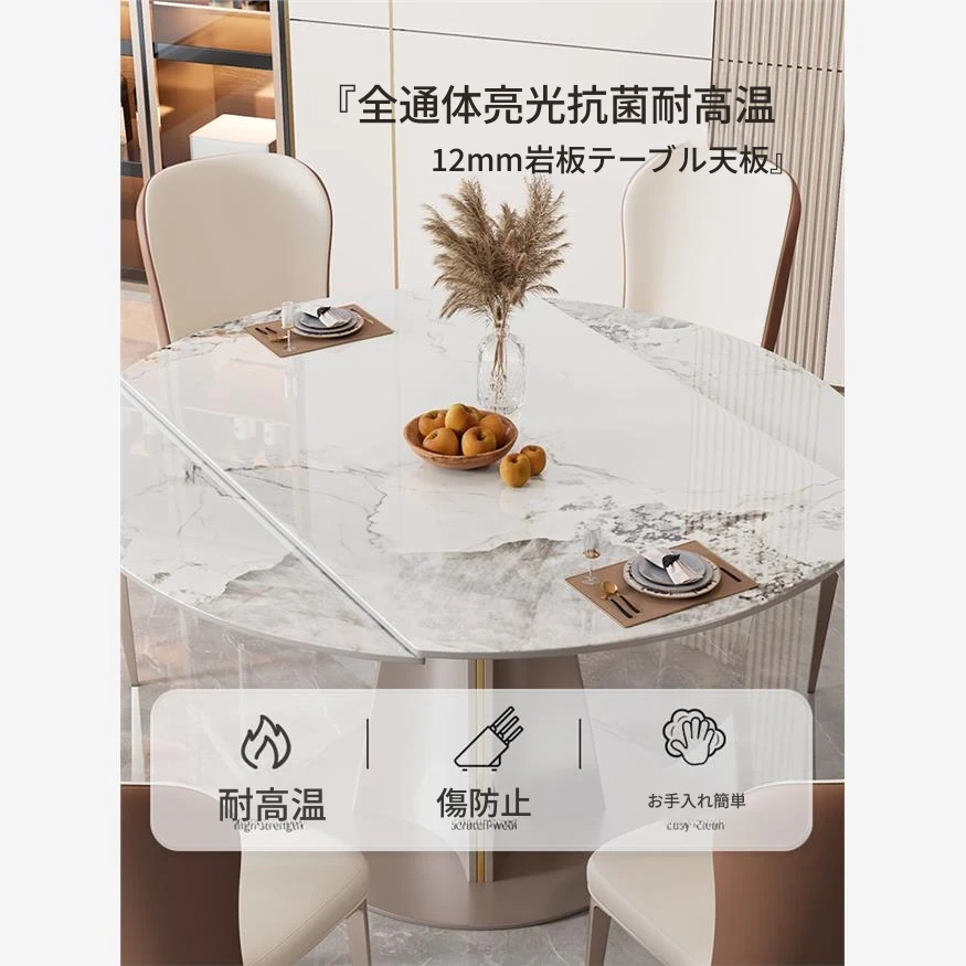 【香港送料無料】回転式伸縮岩板ダイニングテーブル - 小型家庭向け、円形と角形両用の便利なデザイン!おしゃれで機能的、スペースを有効活用できる理想のテーブルです!