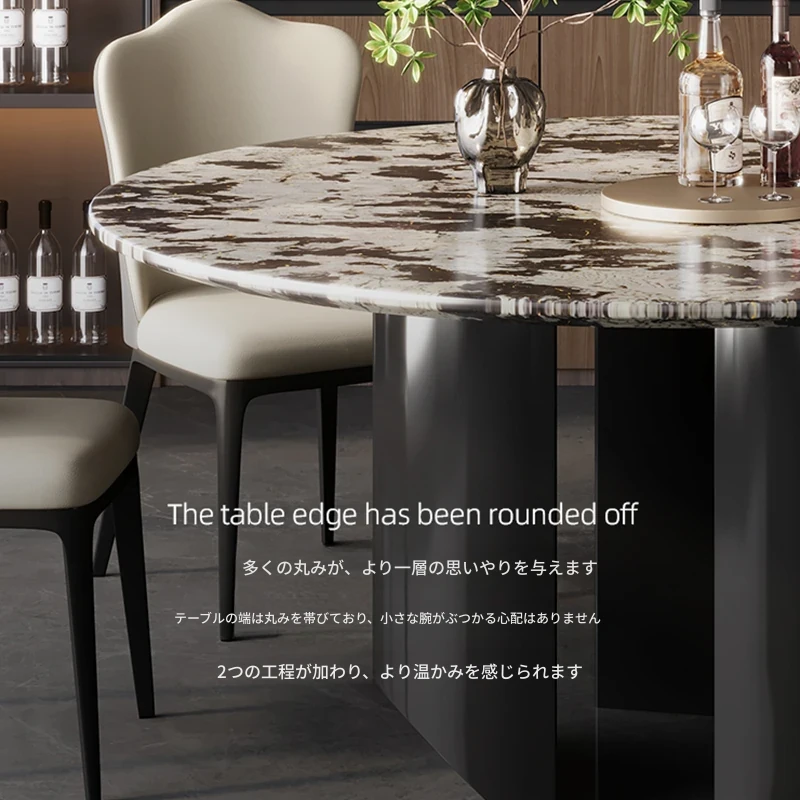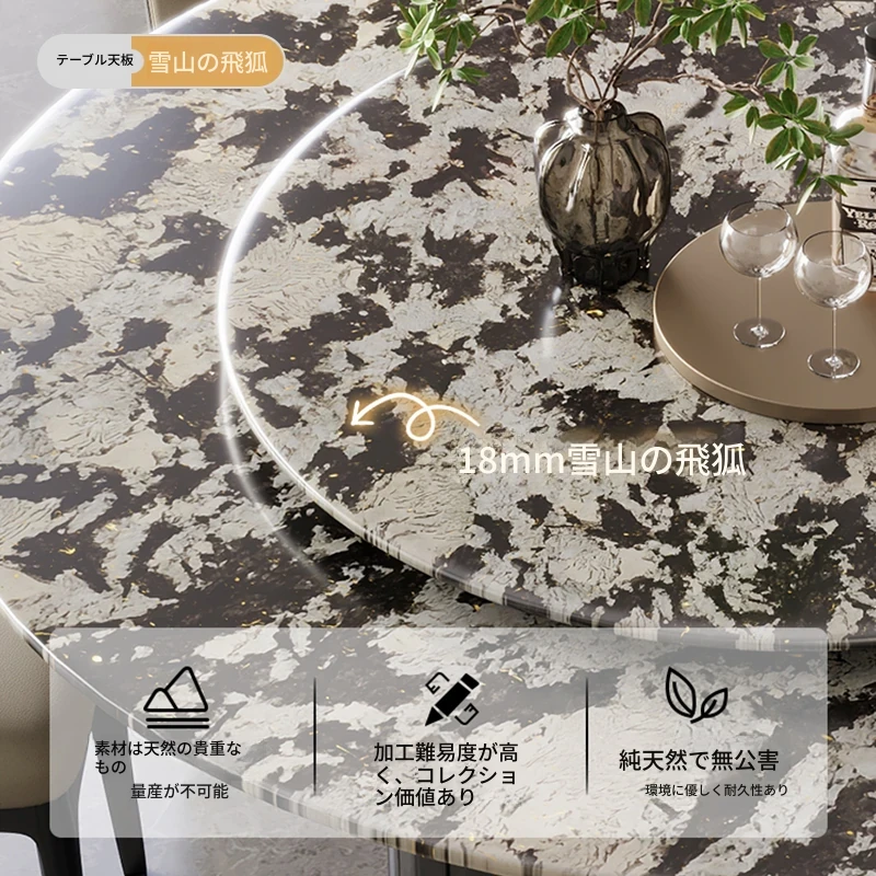 【1.8m+1.0m回転盤】雪山飛狐輸入天然贅沢石のダイニングテーブル