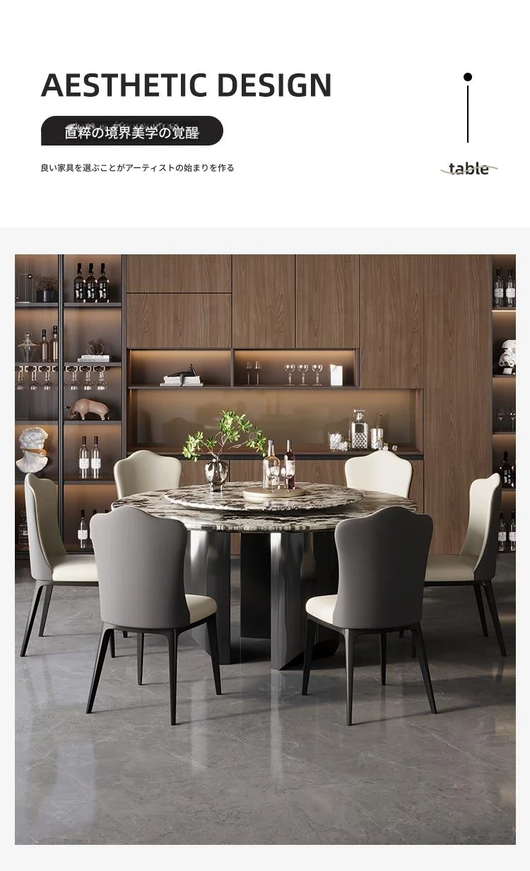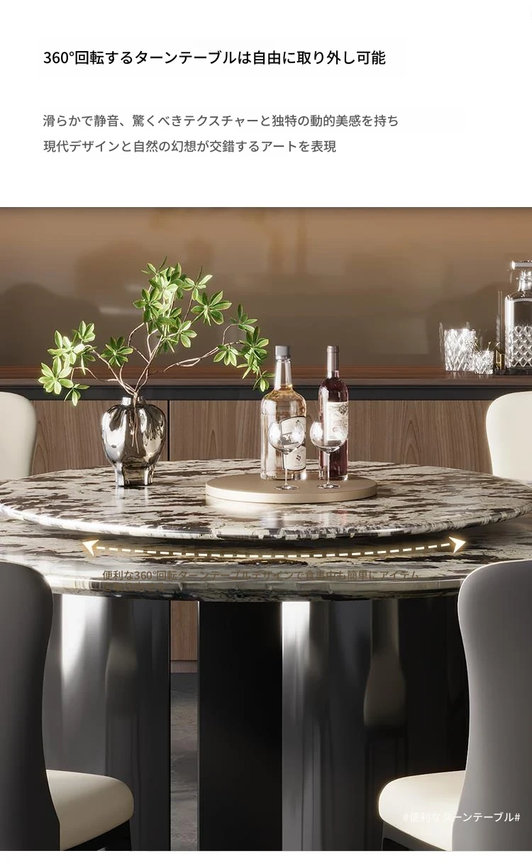 【1.8m+1.0m回転盤】雪山飛狐輸入天然贅沢石のダイニングテーブル+8椅子
