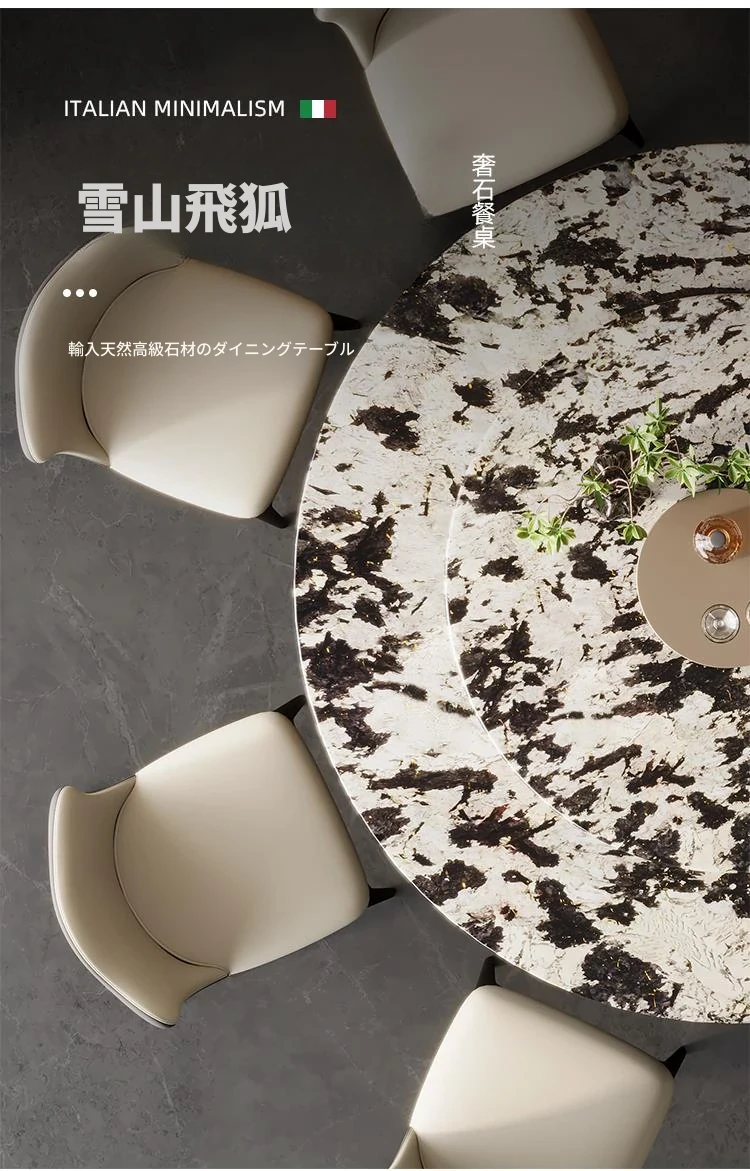 【1.35m+0.7m回転盤】雪山飛狐輸入天然贅沢石のダイニングテーブル