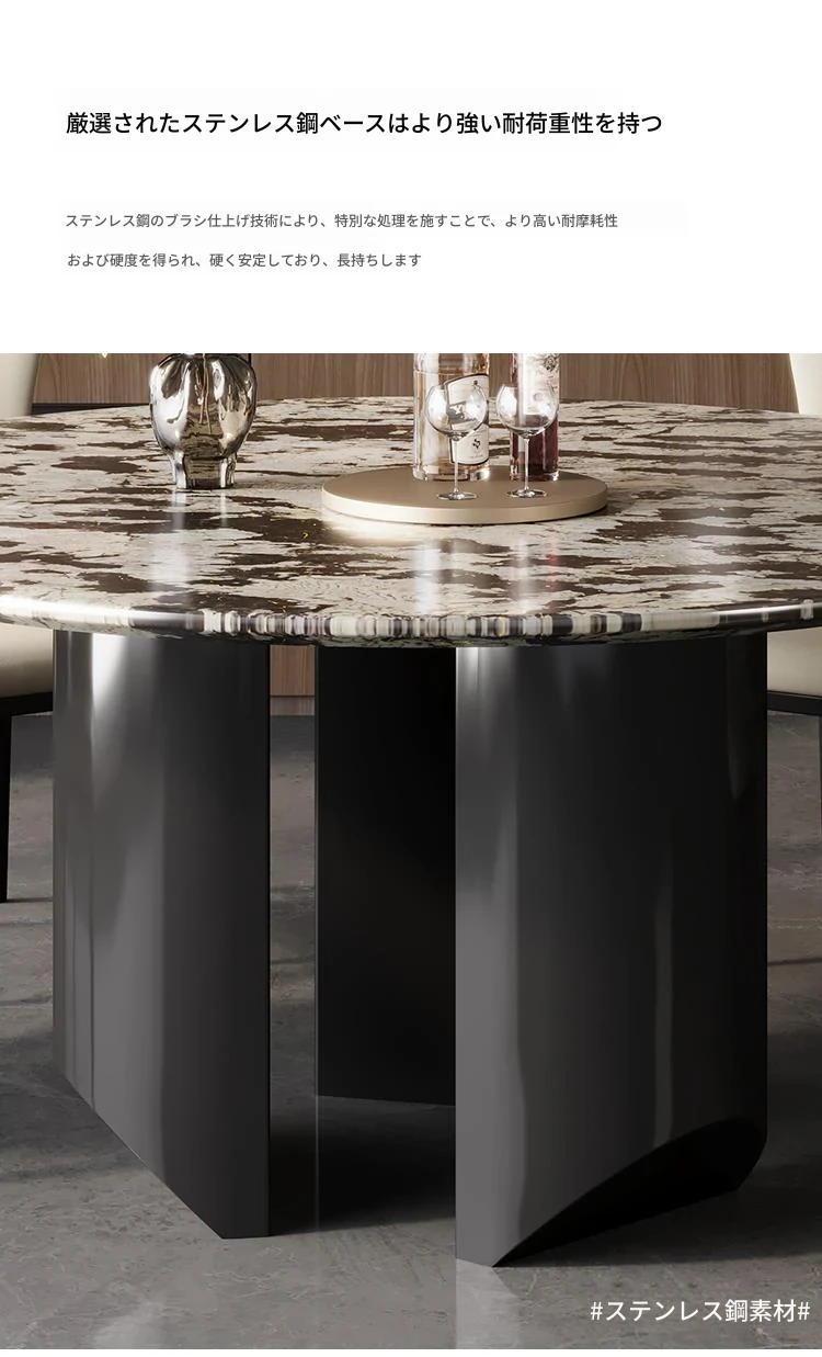 【2.0m+1.1m回転盤】雪山飛狐輸入天然贅沢石のダイニングテーブル