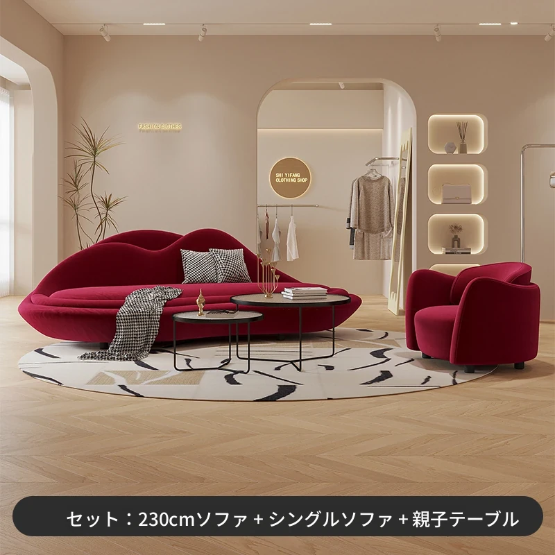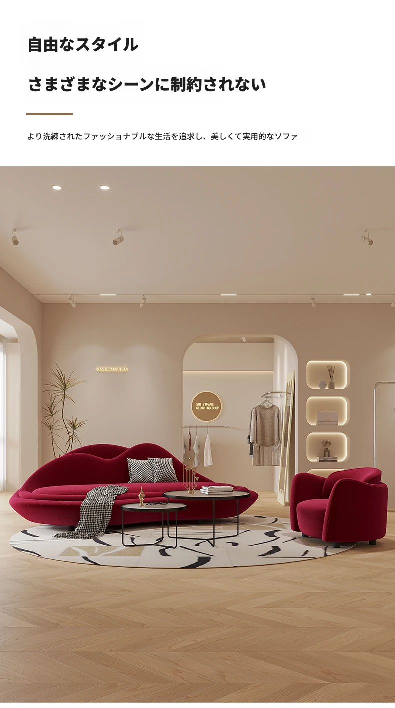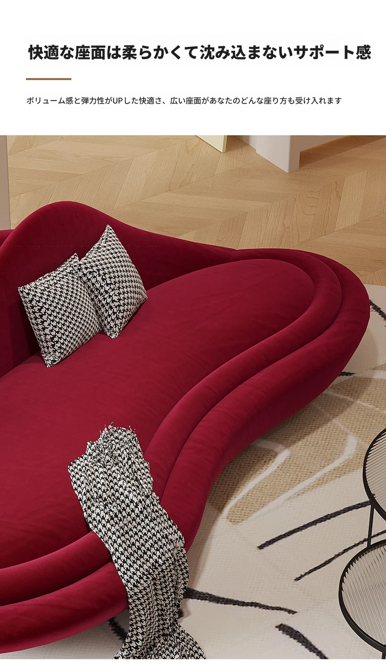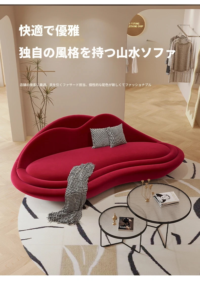 フランスデザインのクリエイティブで個性的なソファ!美容院や服装店にぴったりなトレンドアイテム、コンパクトな波型リラックスエリアに最適な受付ソファ。おしゃれな空間を演出して、訪れるお客様を魅了しましょう!