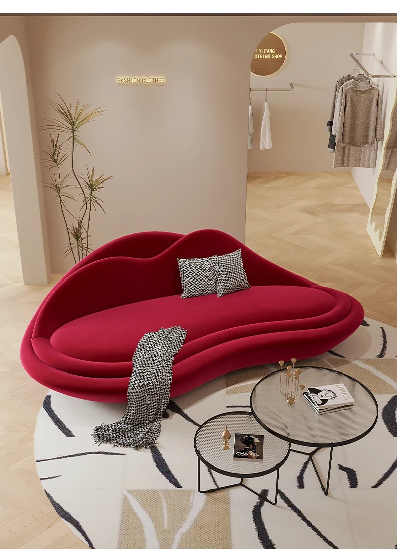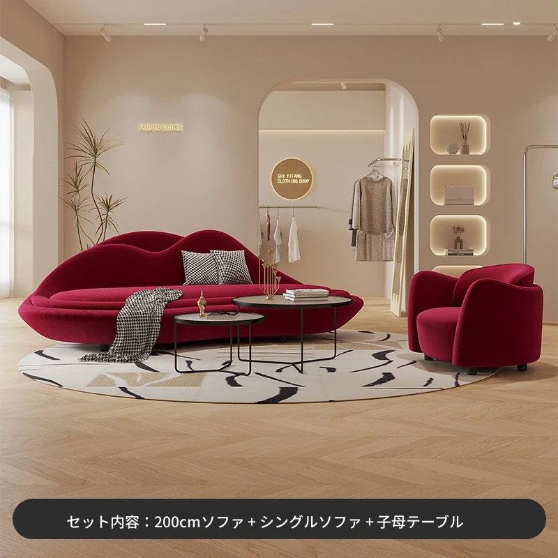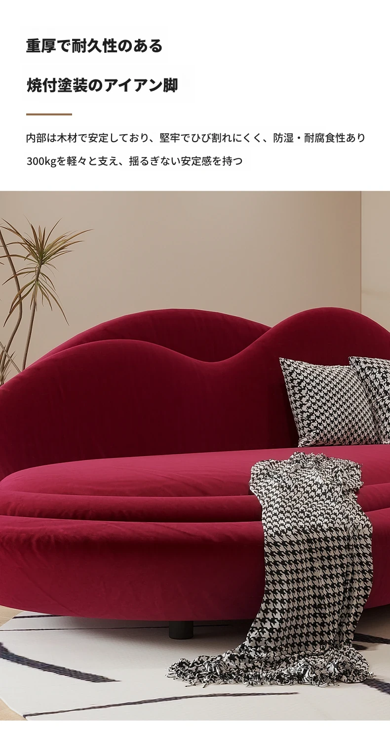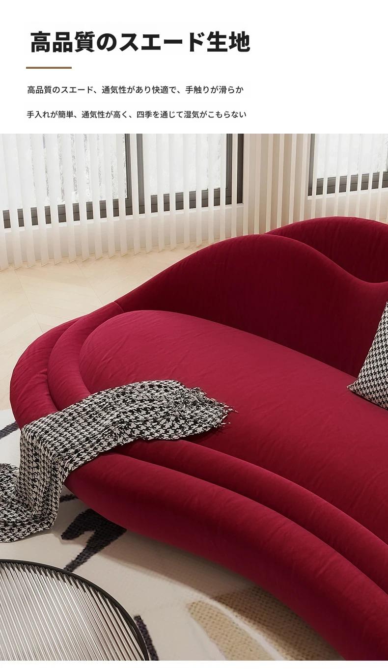 フランスデザインのクリエイティブで個性的なソファ!美容院や服装店にぴったりなトレンドアイテム、コンパクトな波型リラックスエリアに最適な受付ソファ。おしゃれな空間を演出して、訪れるお客様を魅了しましょう!