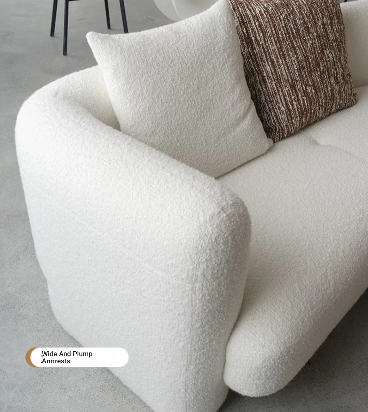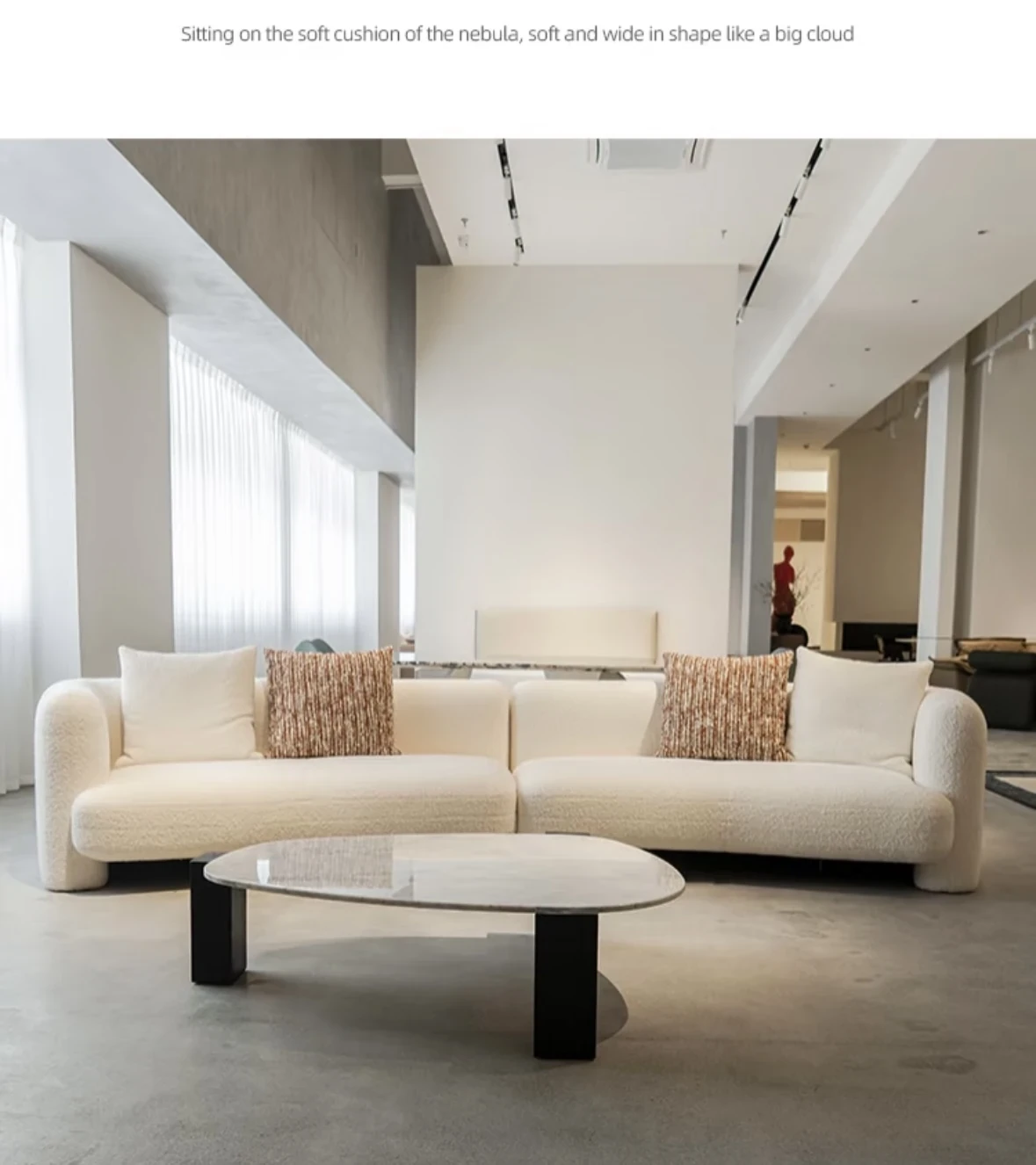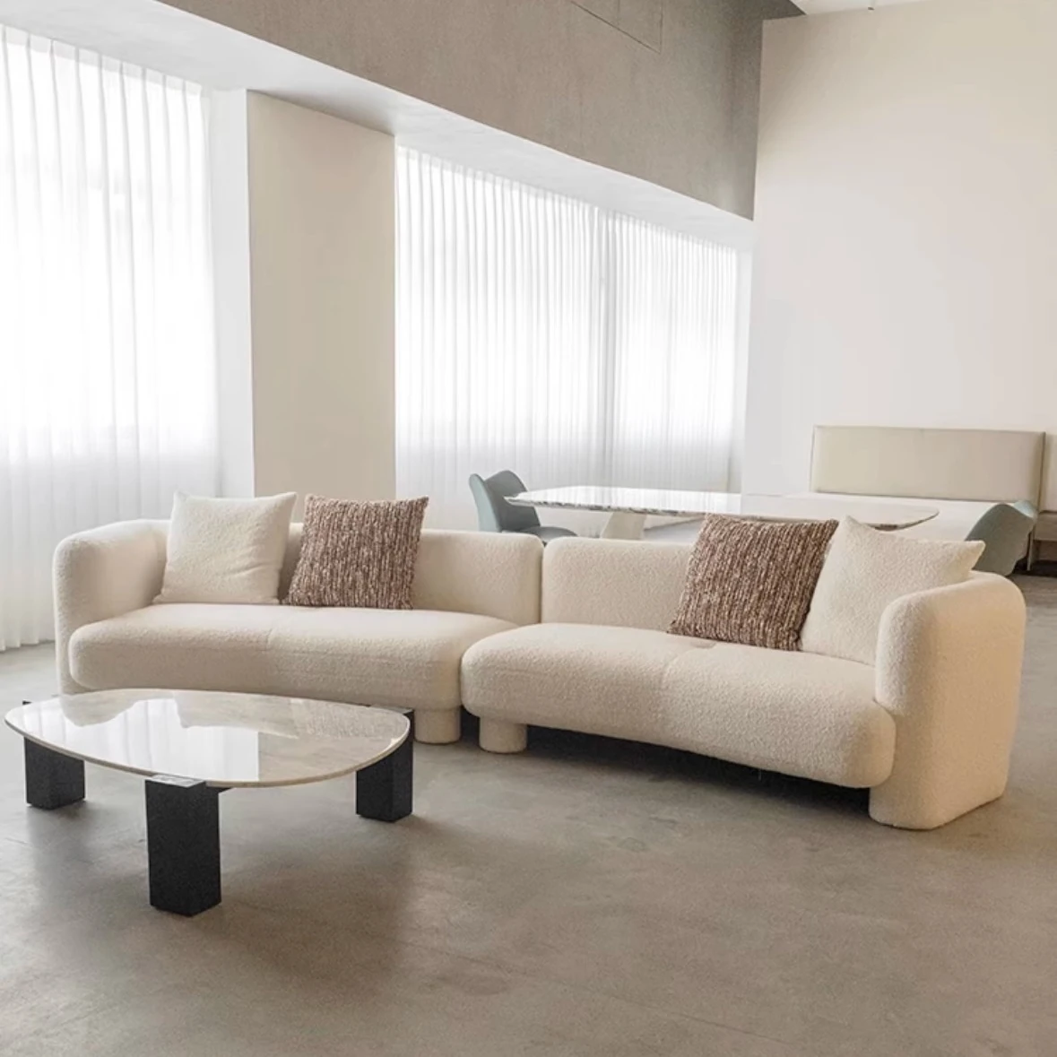 French Vintage Cream Curved Sofa – Unique Irregular Design for Designer Living Rooms, Perfect for Small and Large Spaces, Featuring Cozy Lambskin Fabric