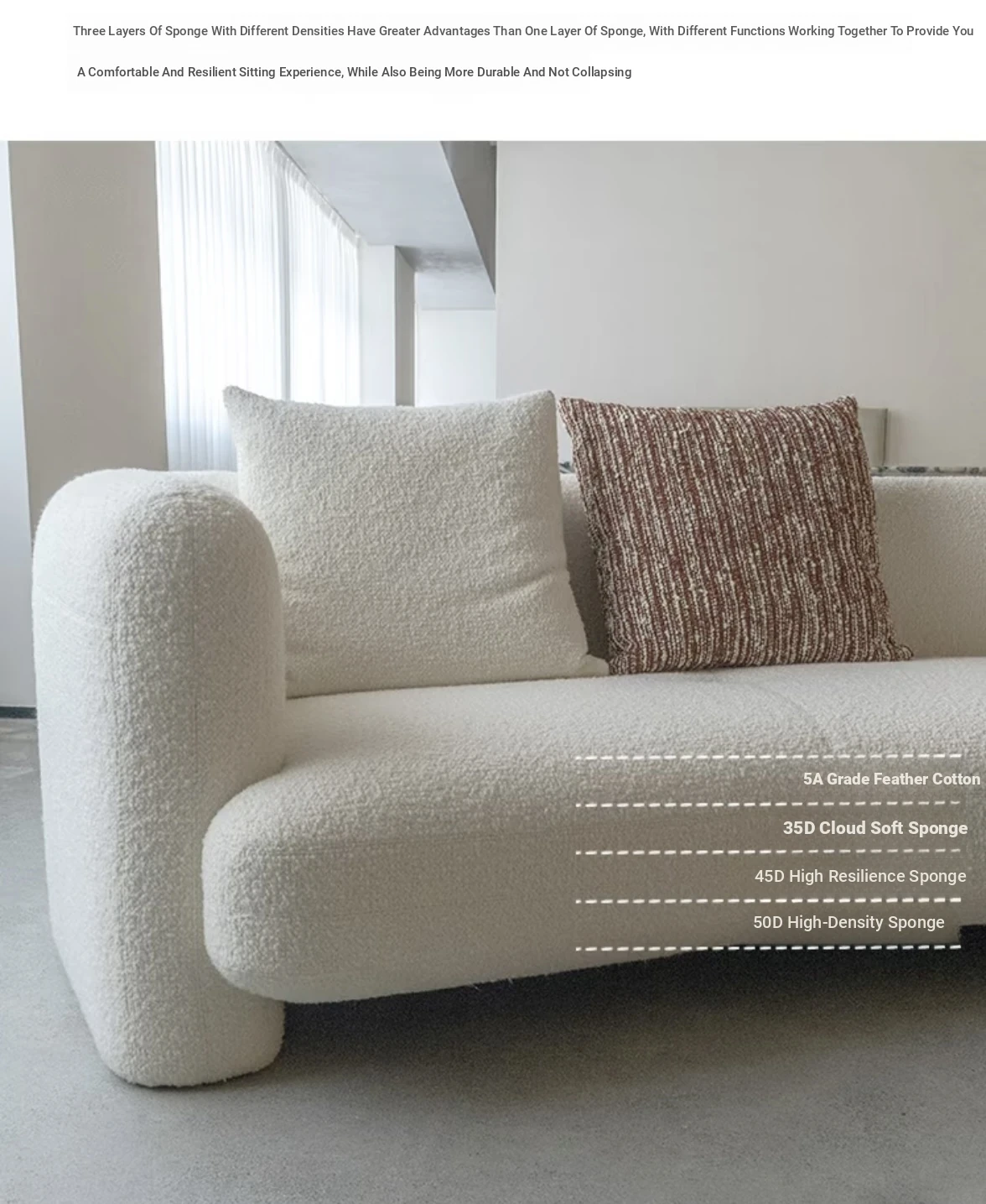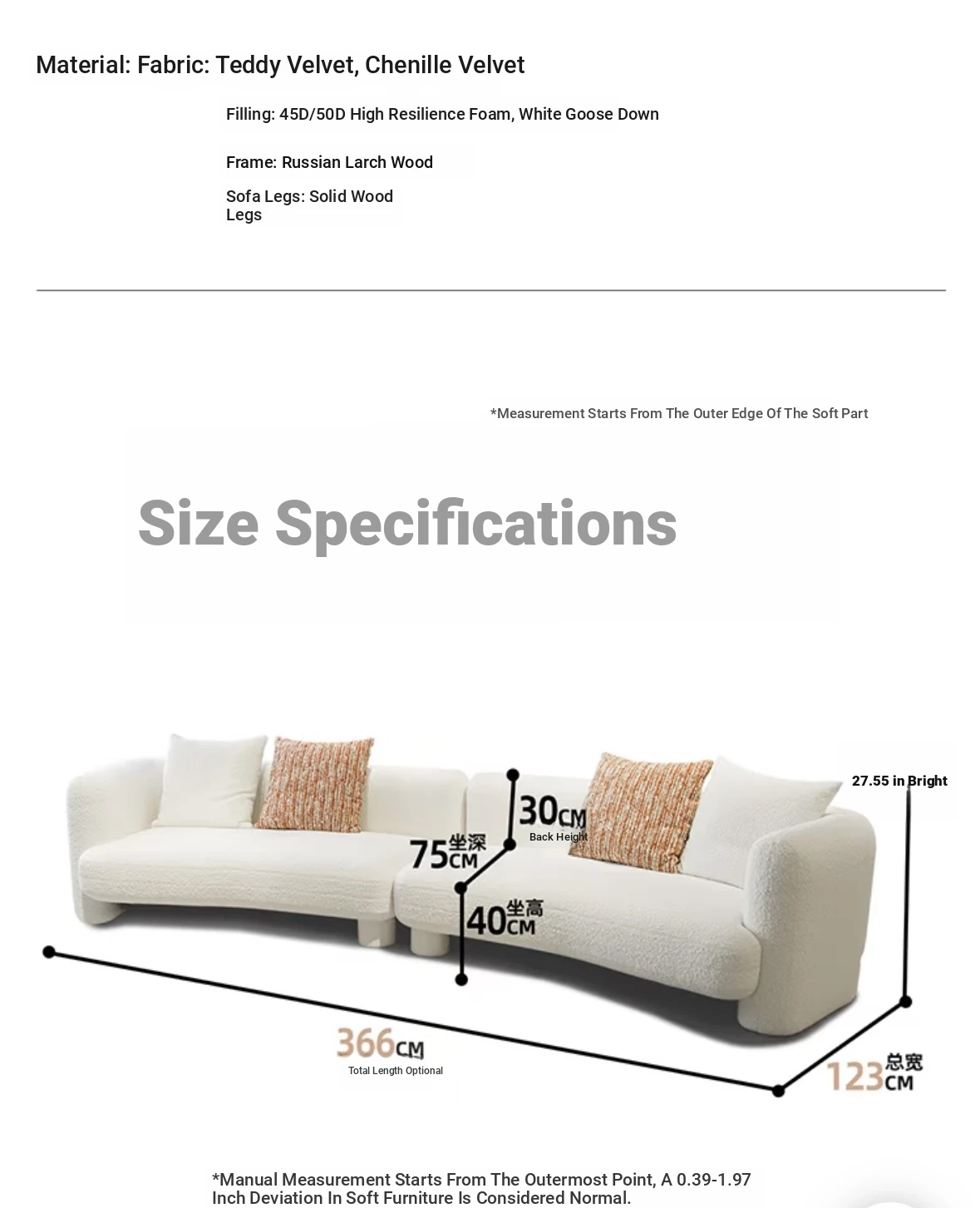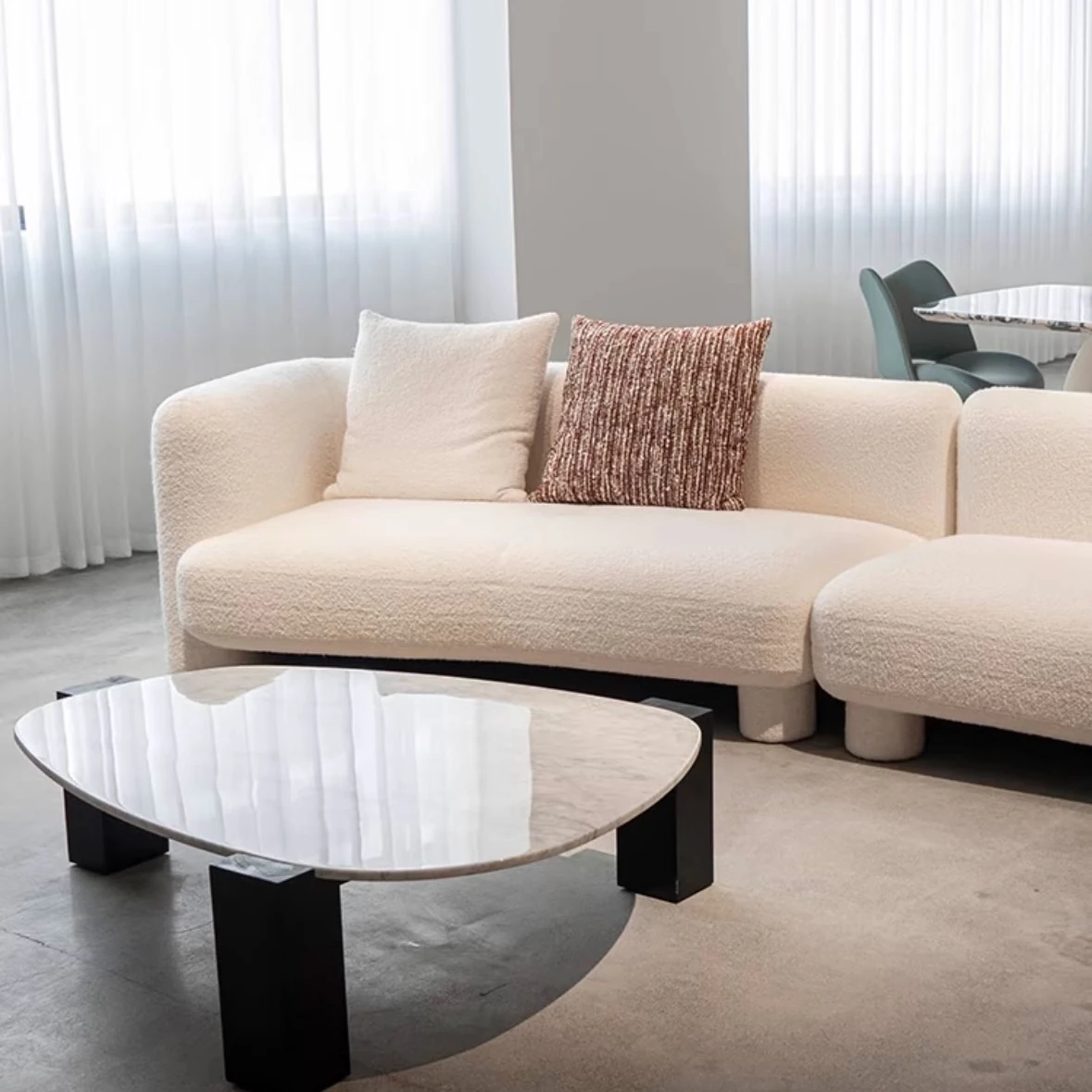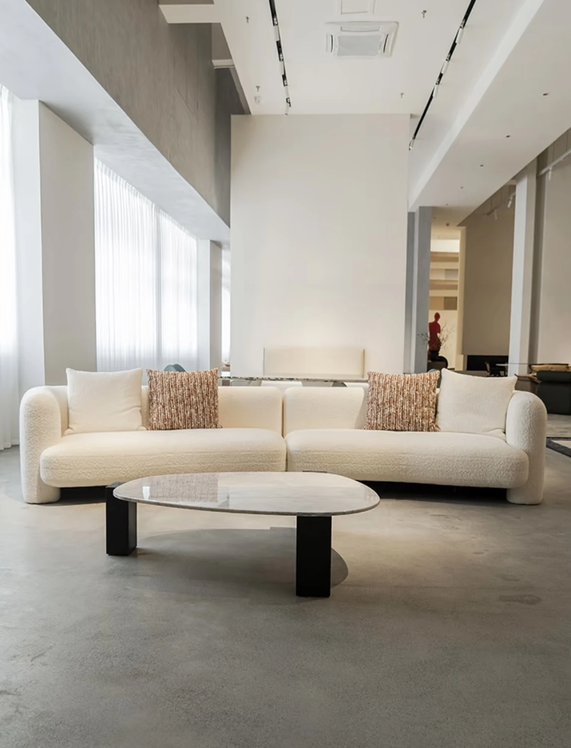 French Vintage Cream Curved Sofa – Unique Irregular Design for Designer Living Rooms, Perfect for Small and Large Spaces, Featuring Cozy Lambskin Fabric