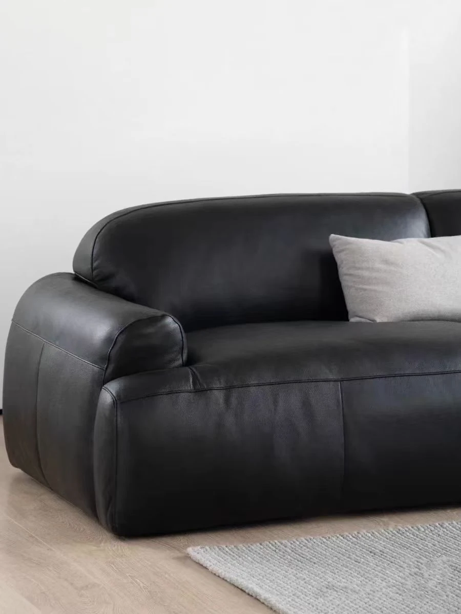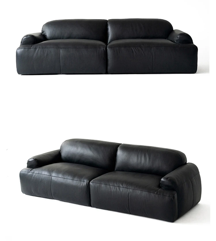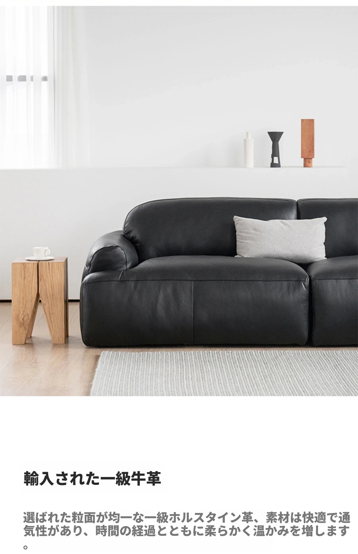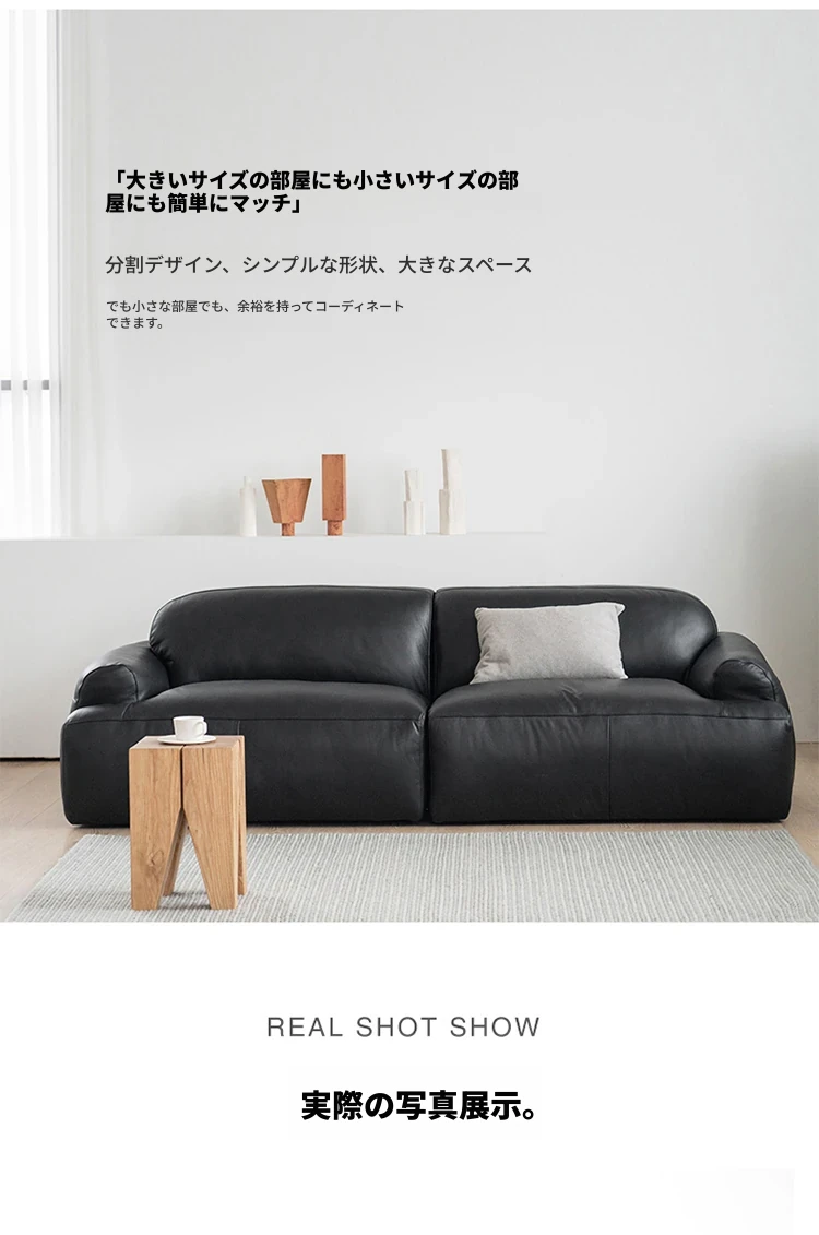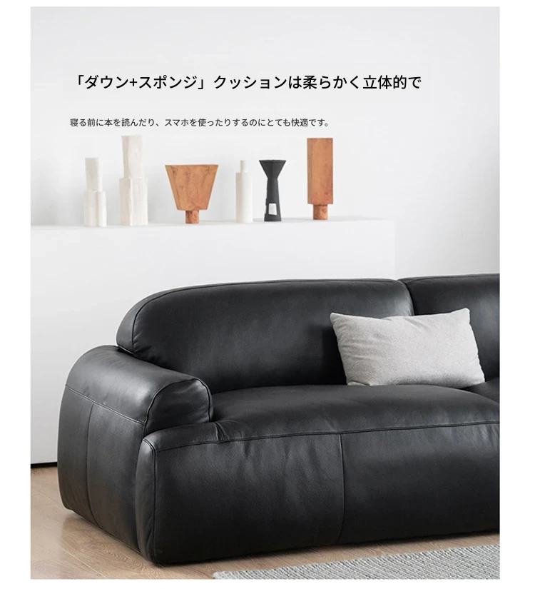 本革製の高品質北欧スタイルライトラグジュアリーソファ - 小型リビングにぴったりな3人掛け・4人掛け、エレガントなブラックファブリック、ダウン入りで快適な座り心地を実現!