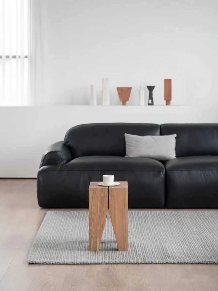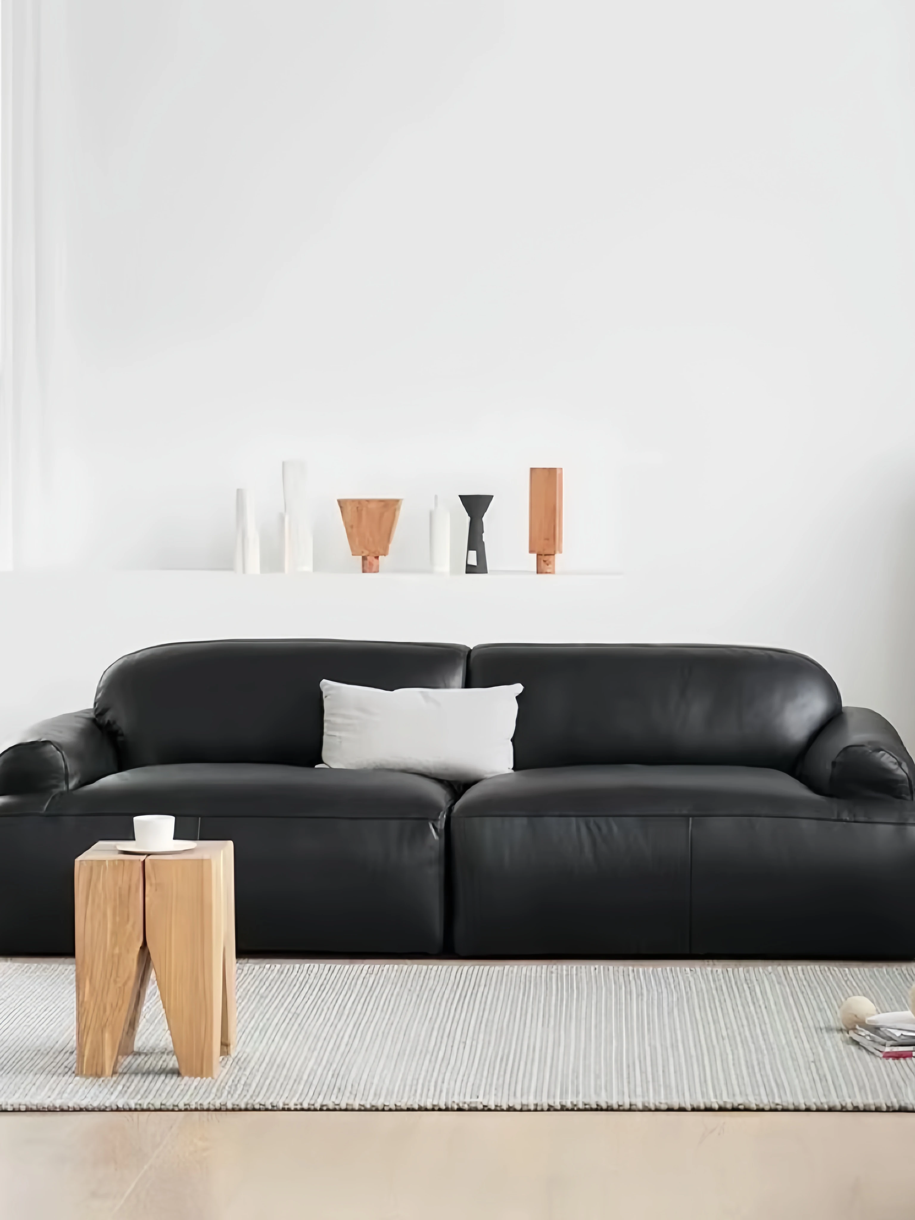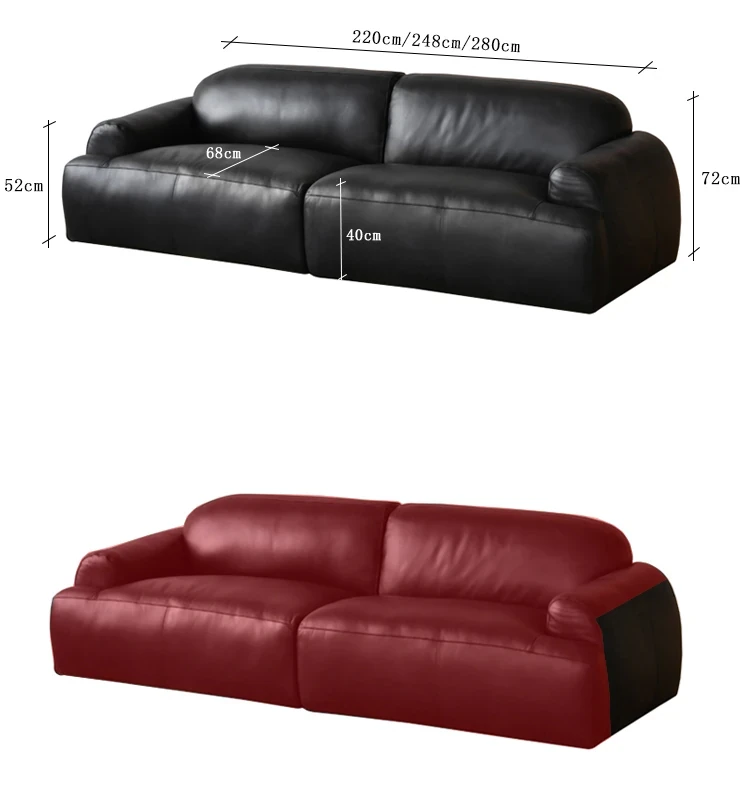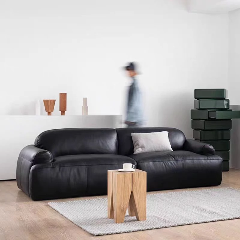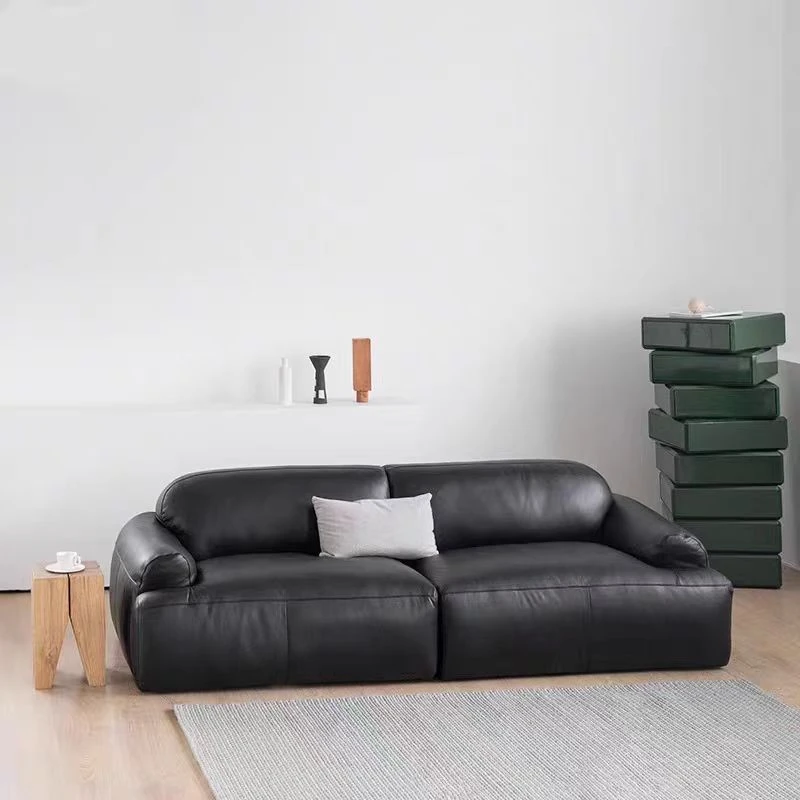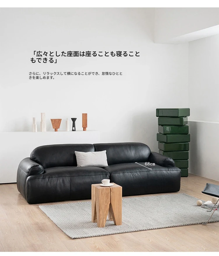本革製の高品質北欧スタイルライトラグジュアリーソファ - 小型リビングにぴったりな3人掛け・4人掛け、エレガントなブラックファブリック、ダウン入りで快適な座り心地を実現!