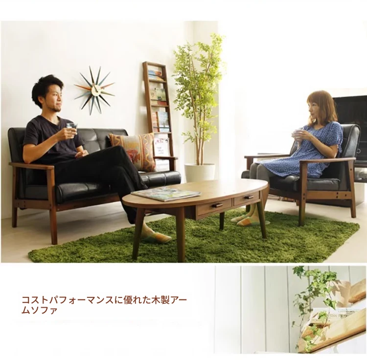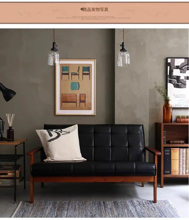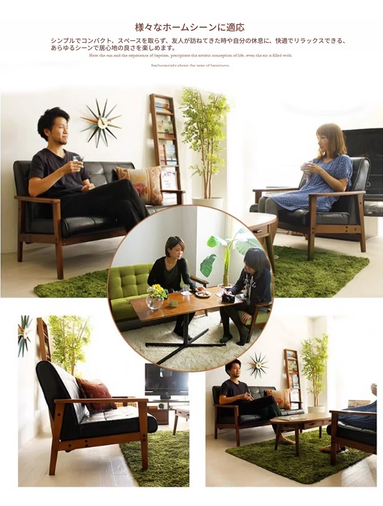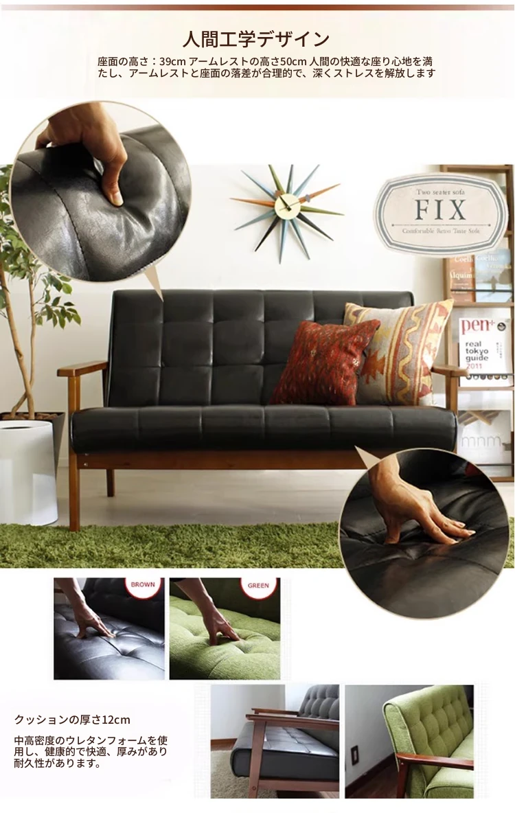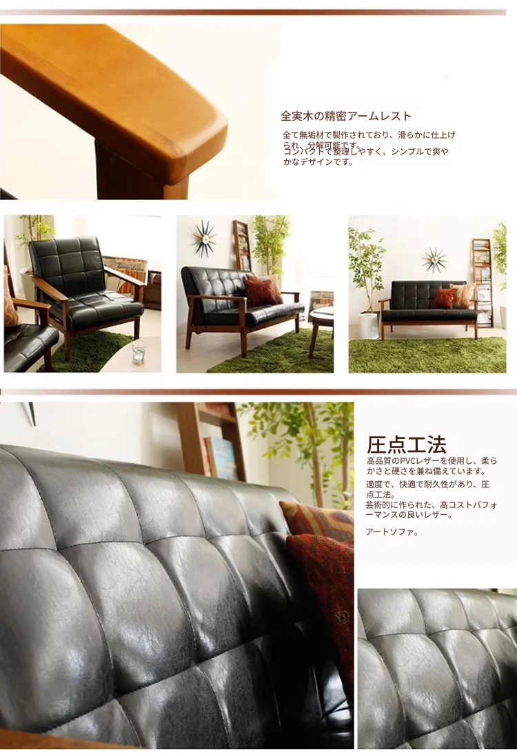 和風レトロ北欧デザインの本革ソファ|一人用・二人用・三人用|小さなスペースに最適なカフェスタイルの木製ソファチェア|おしゃれで快適な空間を演出します!