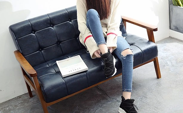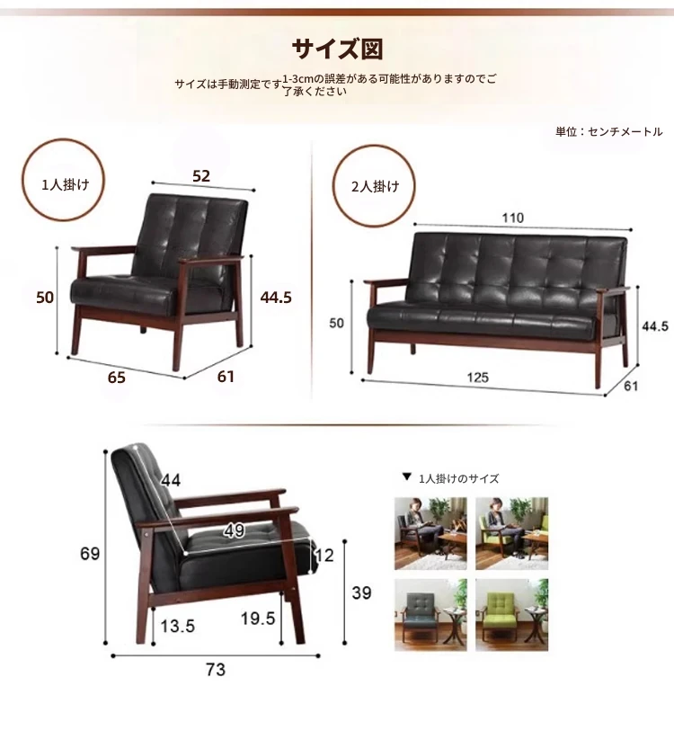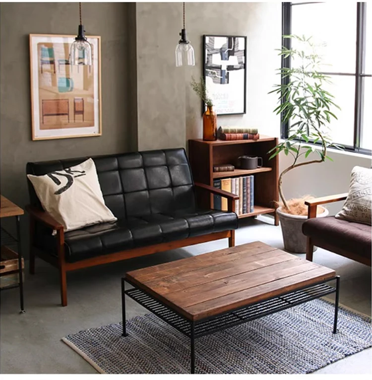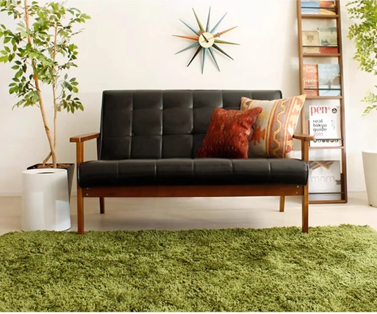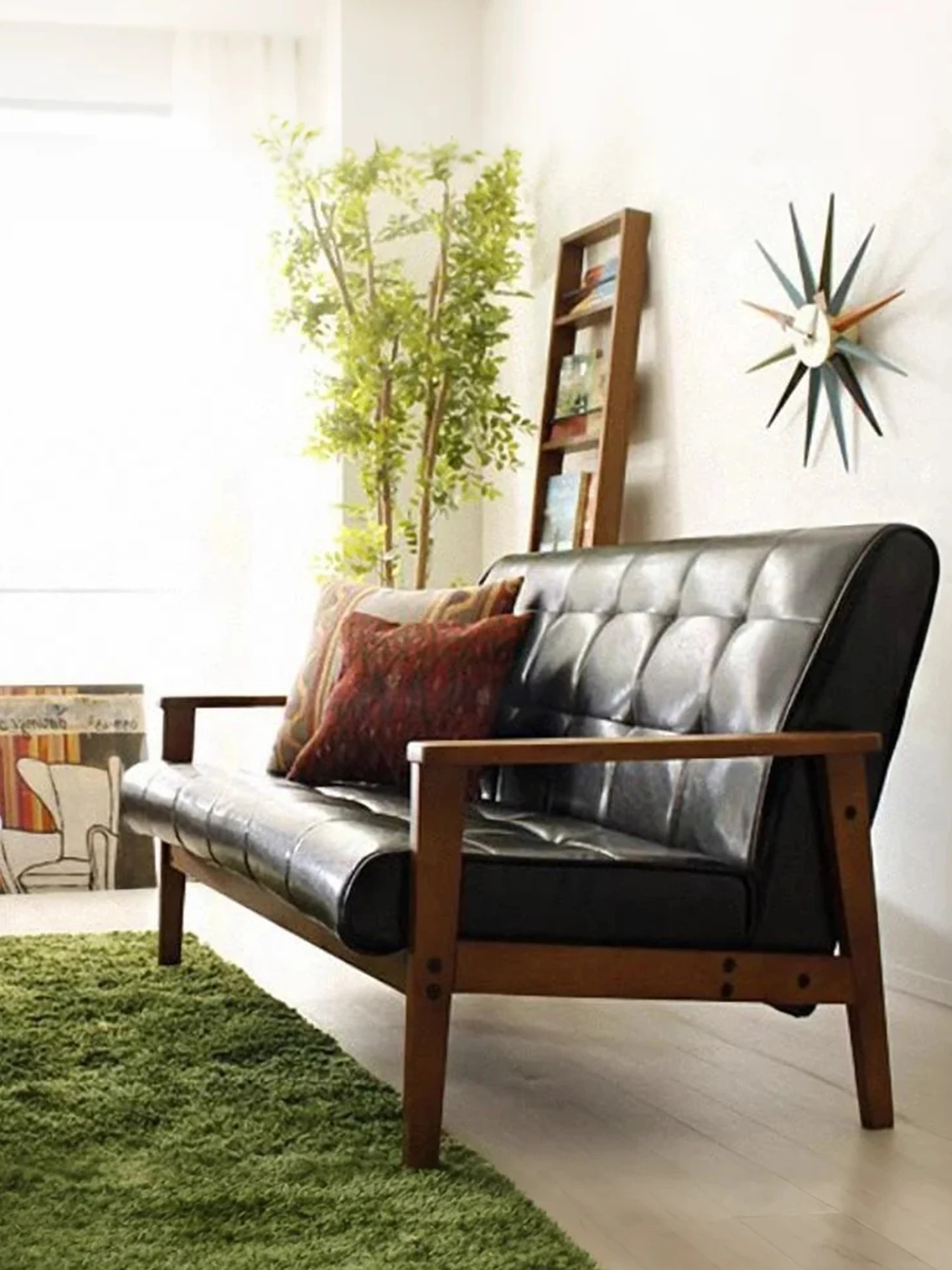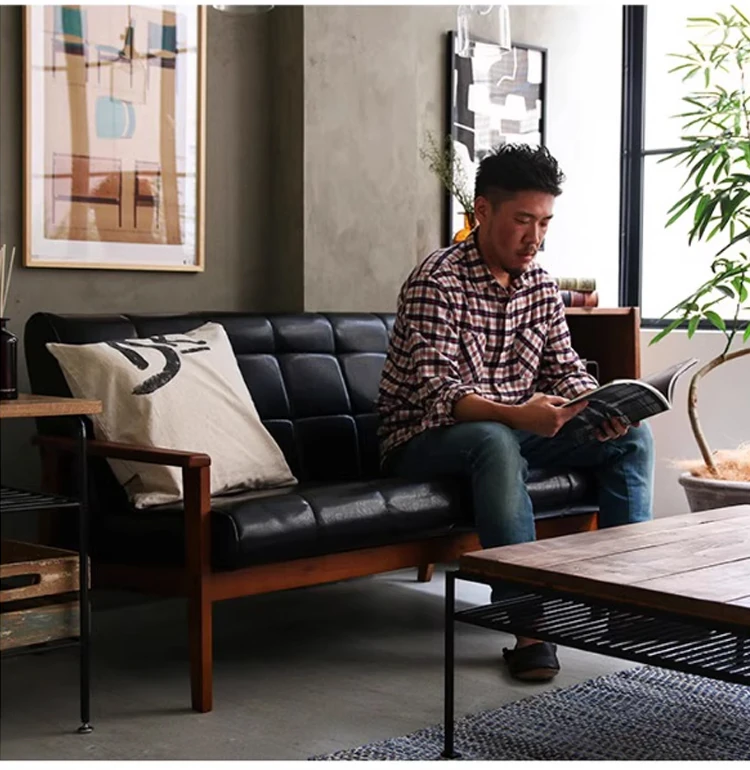 和風レトロ北欧デザインの本革ソファ|一人用・二人用・三人用|小さなスペースに最適なカフェスタイルの木製ソファチェア|おしゃれで快適な空間を演出します!