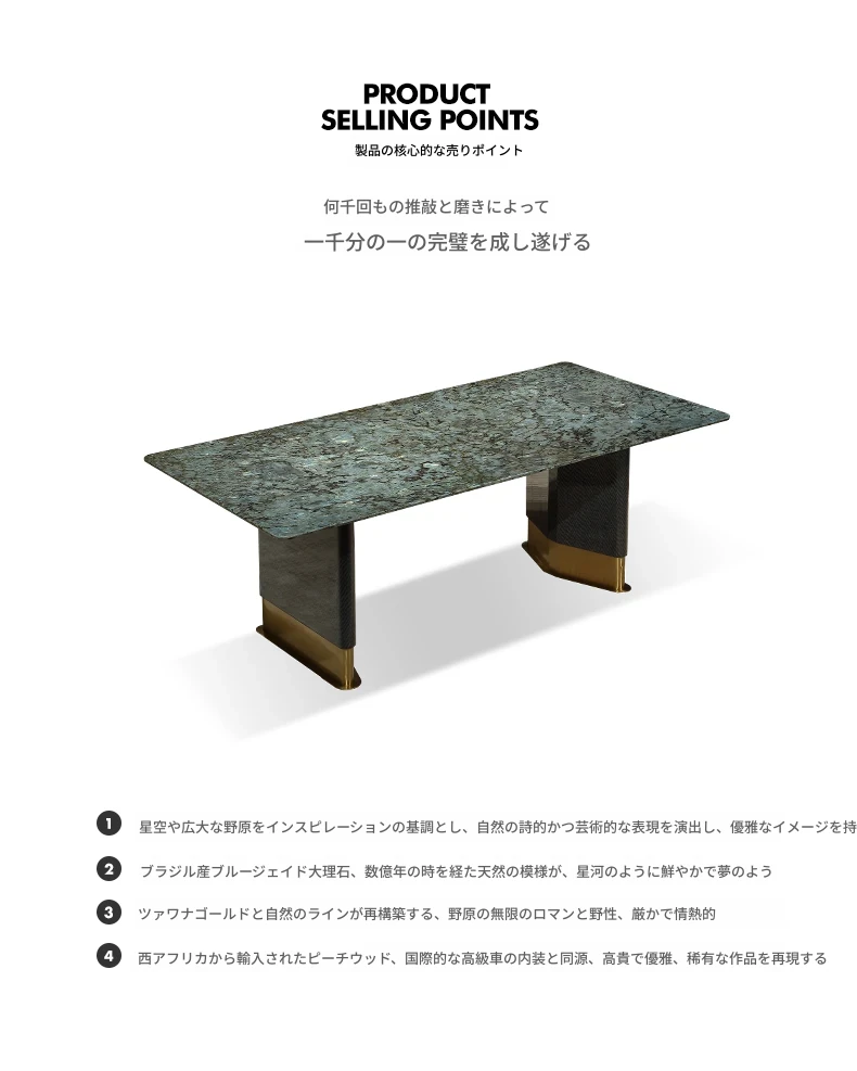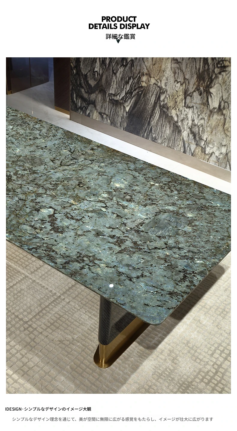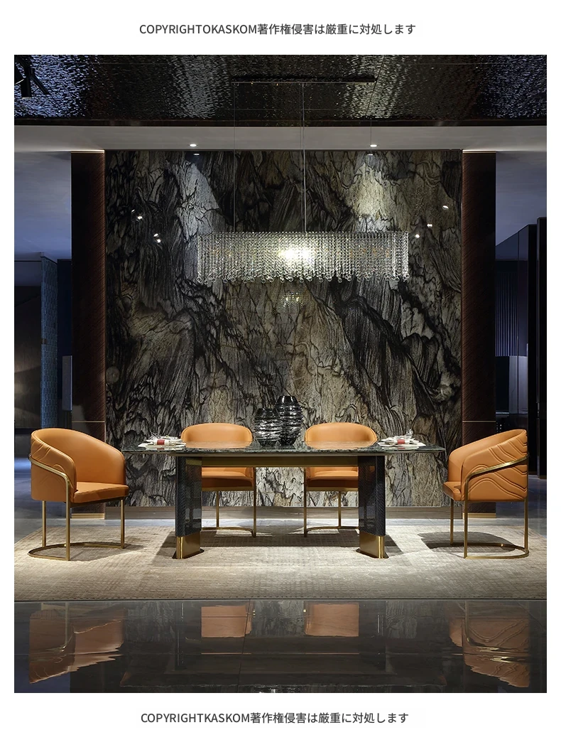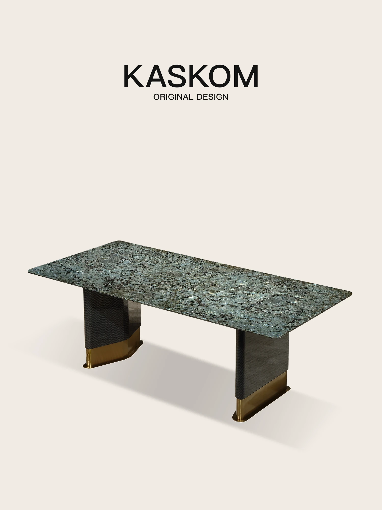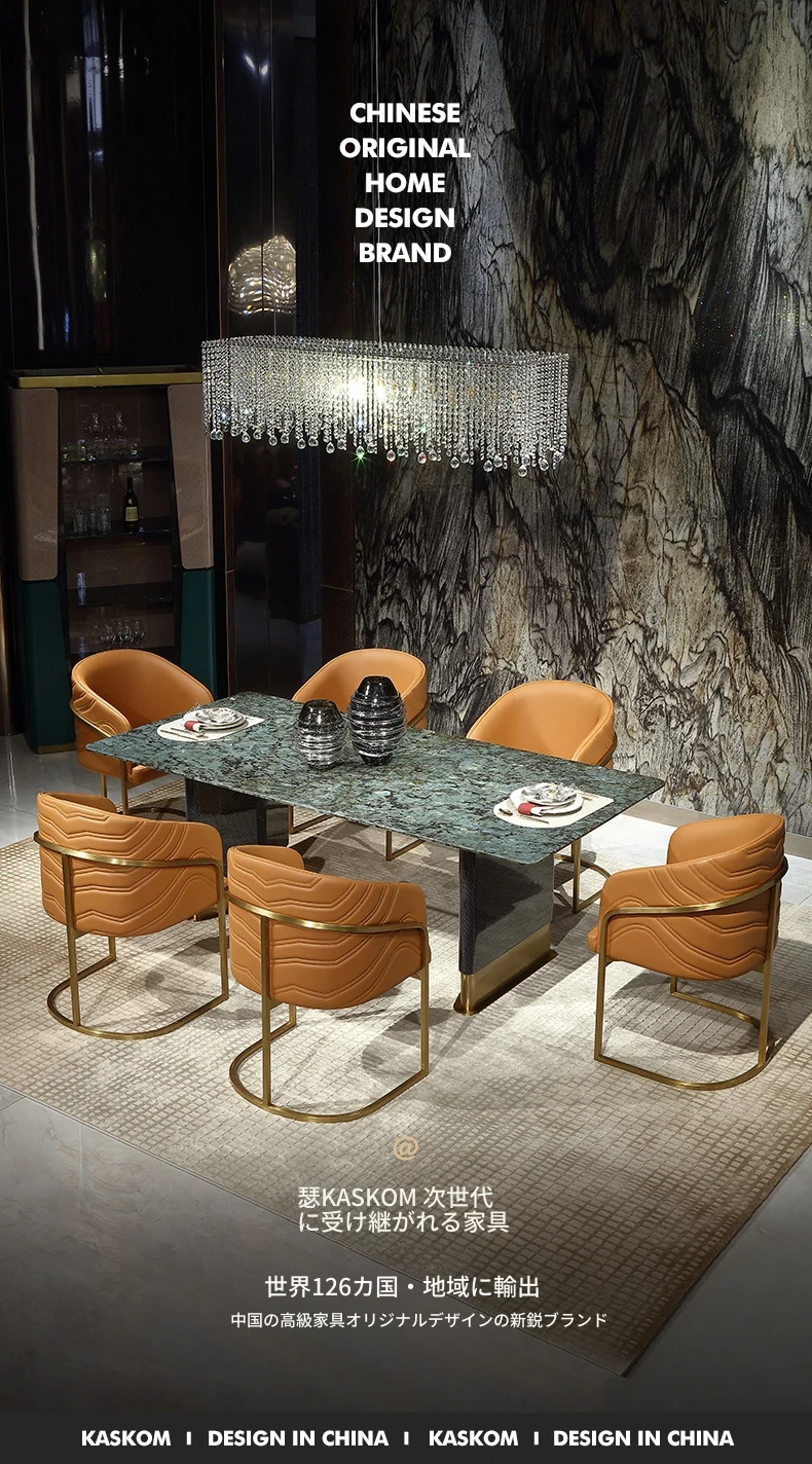 恺瑟宫KASKOMのイタリアンモダン軽奢華ブルージェイド大理石ダイニングテーブル - 大型リビングにぴったりなラグジュアリー家具S1新作!洗練されたデザインで、特別なひとときを演出します。