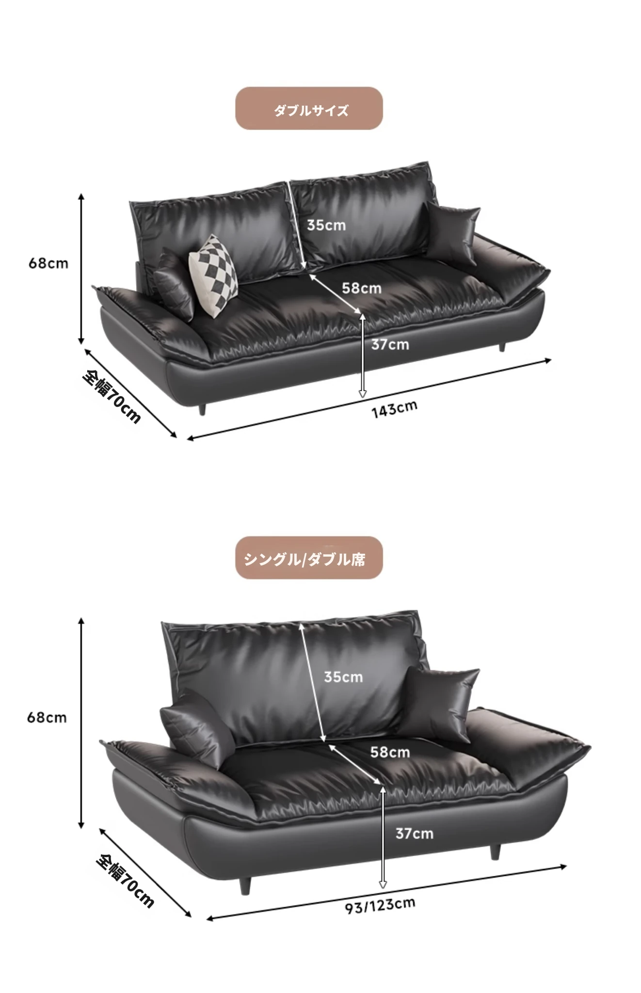 リラックスできるラウンジソファ|寝転んでも寝てもOK!モダンでシンプルな小型二人掛けソファ|おしゃれなデザインで狭い部屋にもぴったり!