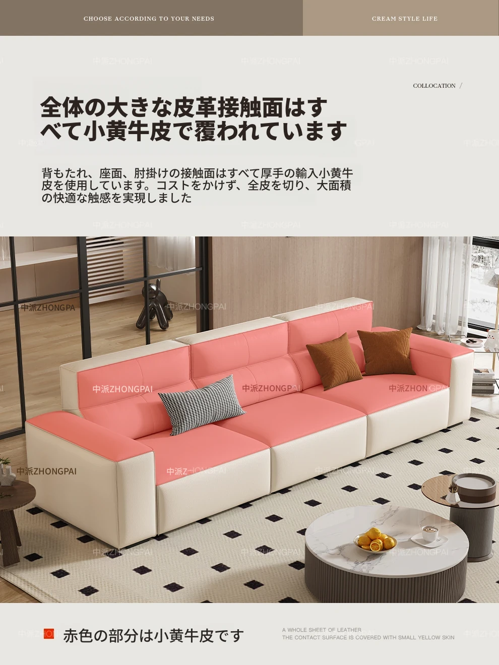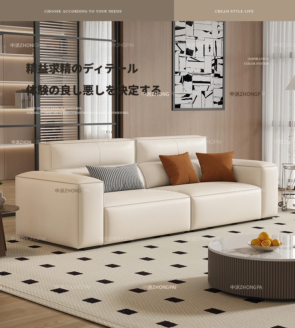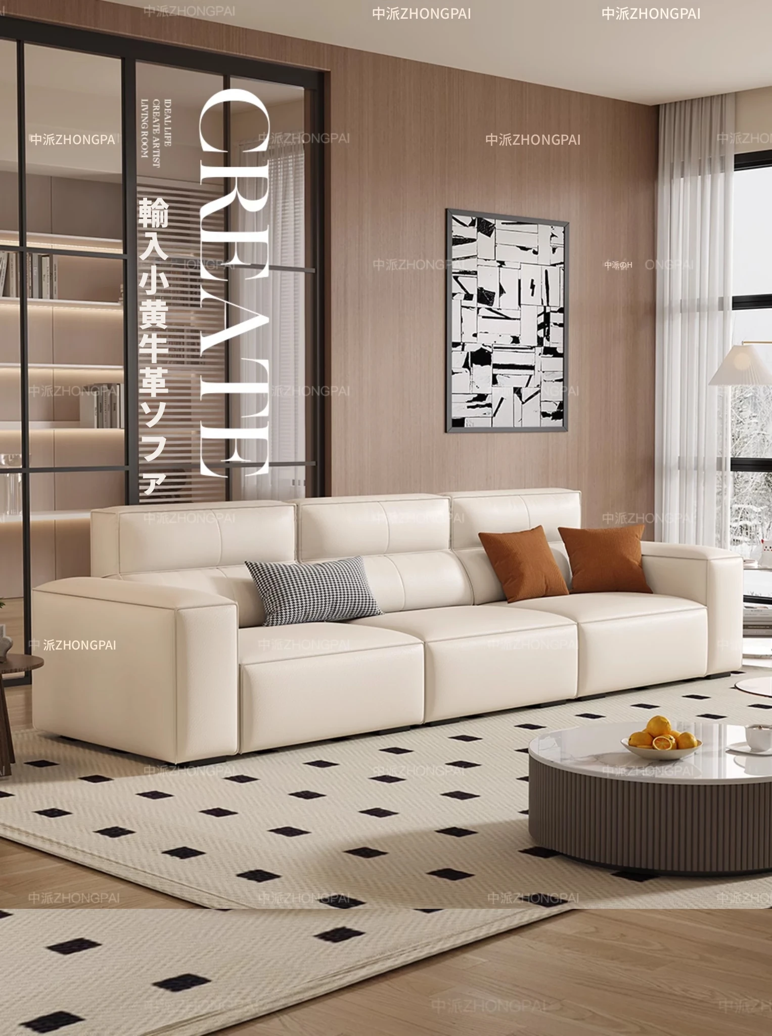 豆腐ブロックソファ イタリアンミニマルデザイン 高背もたれ リビングルーム用 おしゃれな本革ソファ 2024年新作 軽やかなラグジュアリー家具