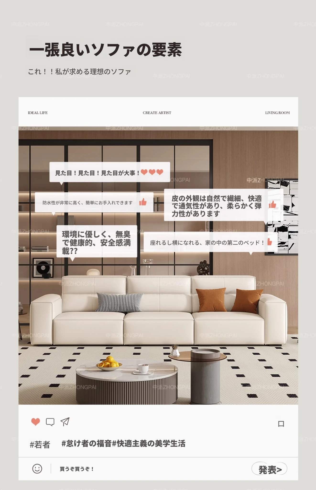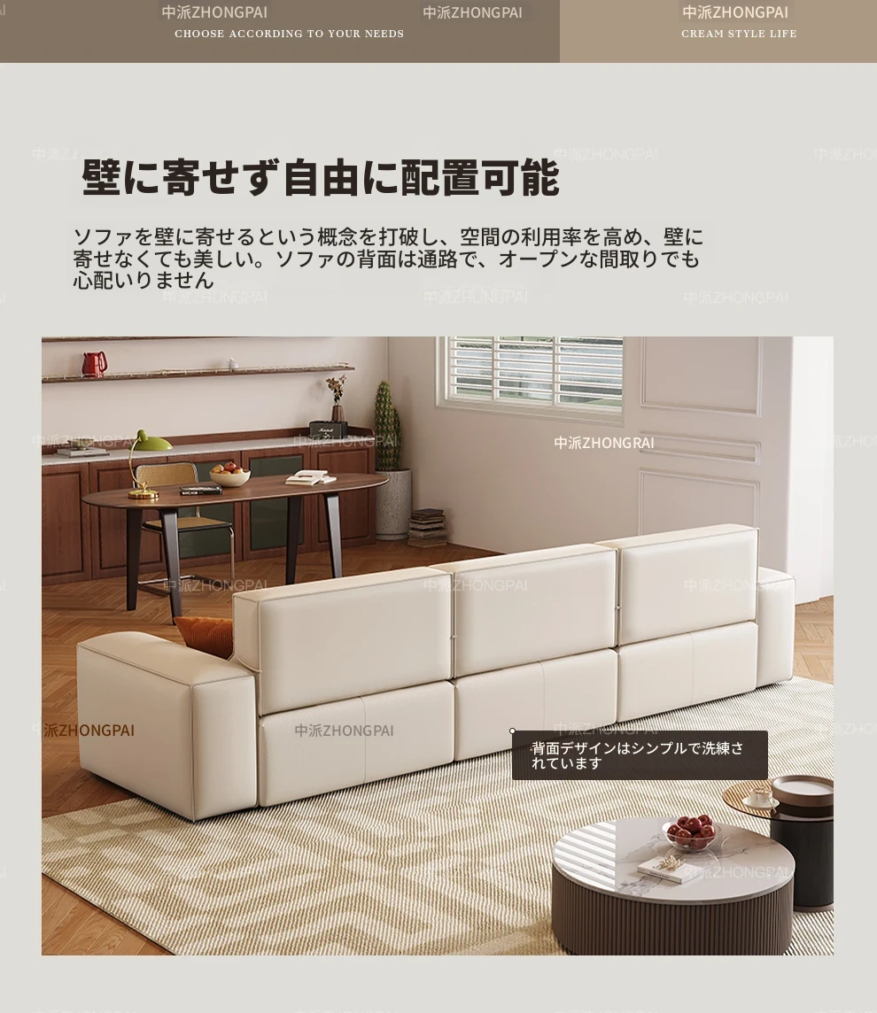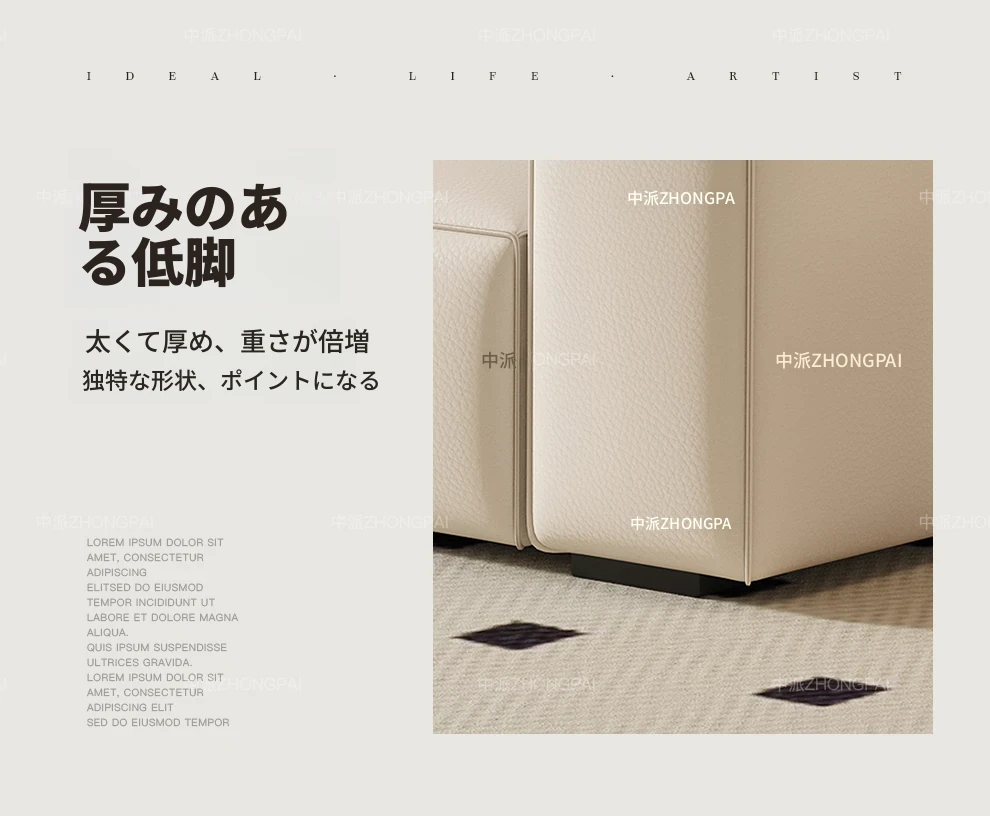 豆腐ブロックソファ イタリアンミニマルデザイン 高背もたれ リビングルーム用 おしゃれな本革ソファ 2024年新作 軽やかなラグジュアリー家具