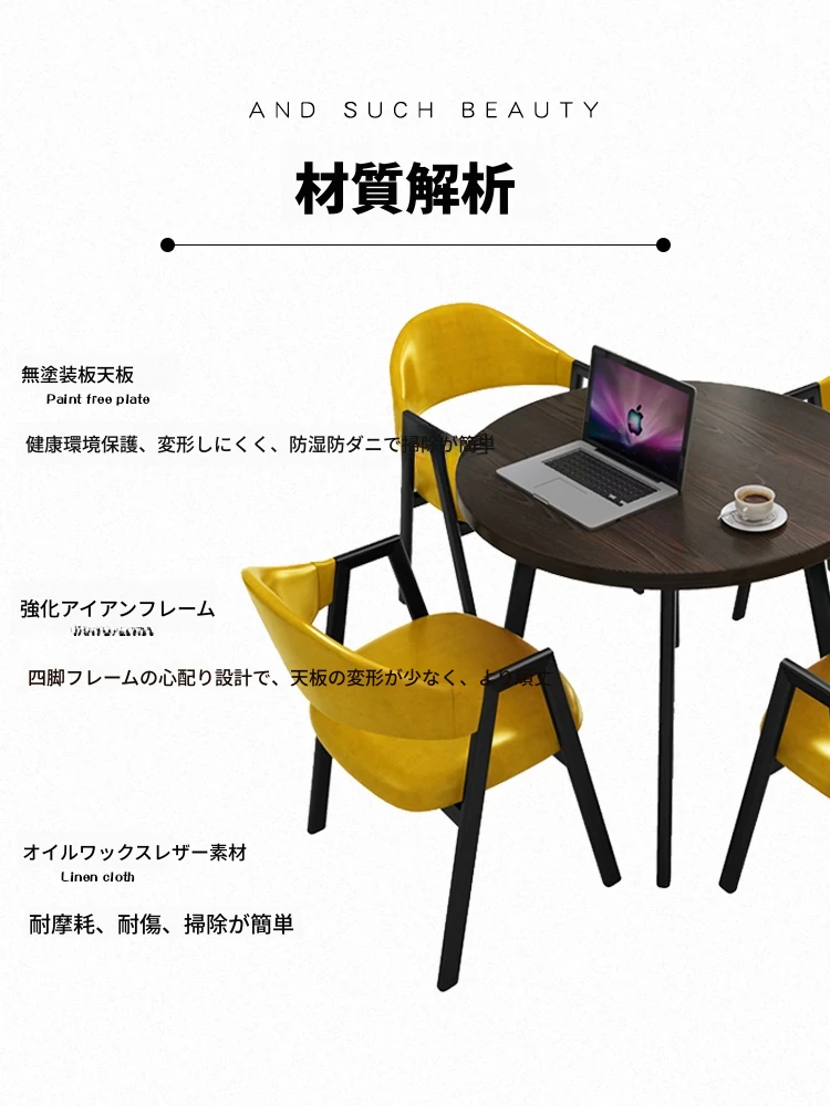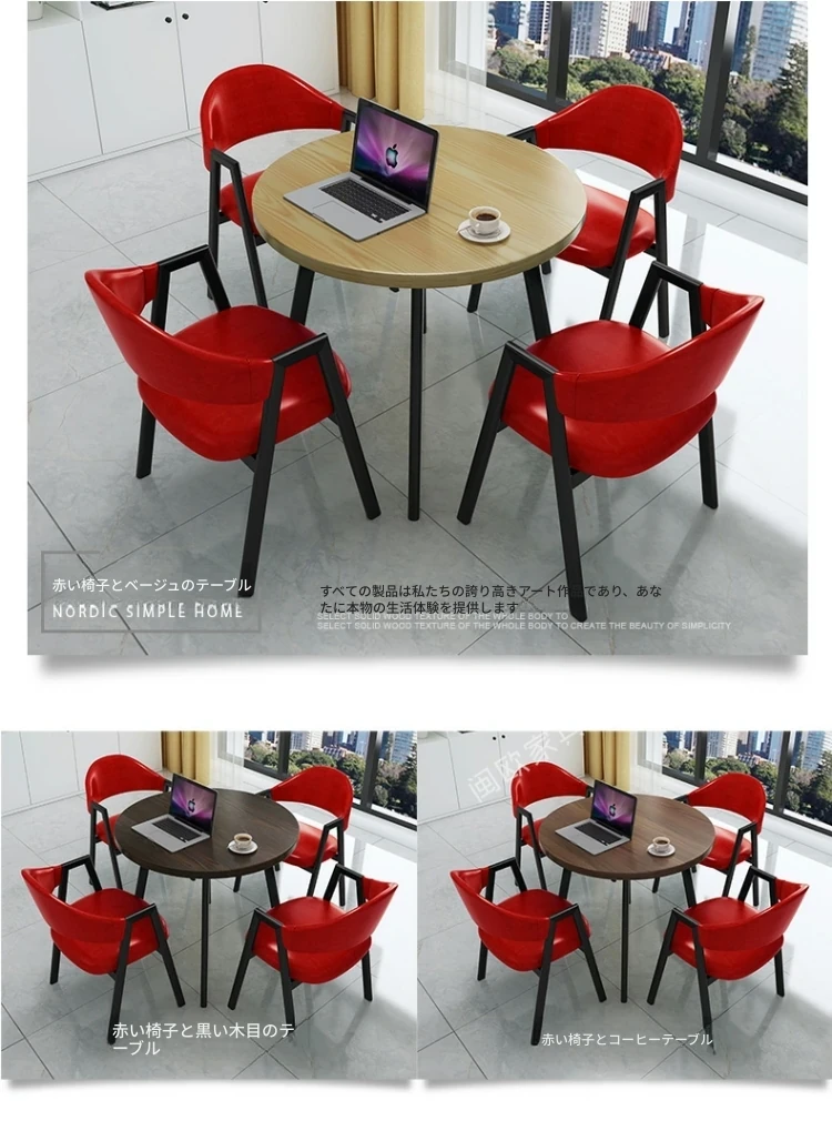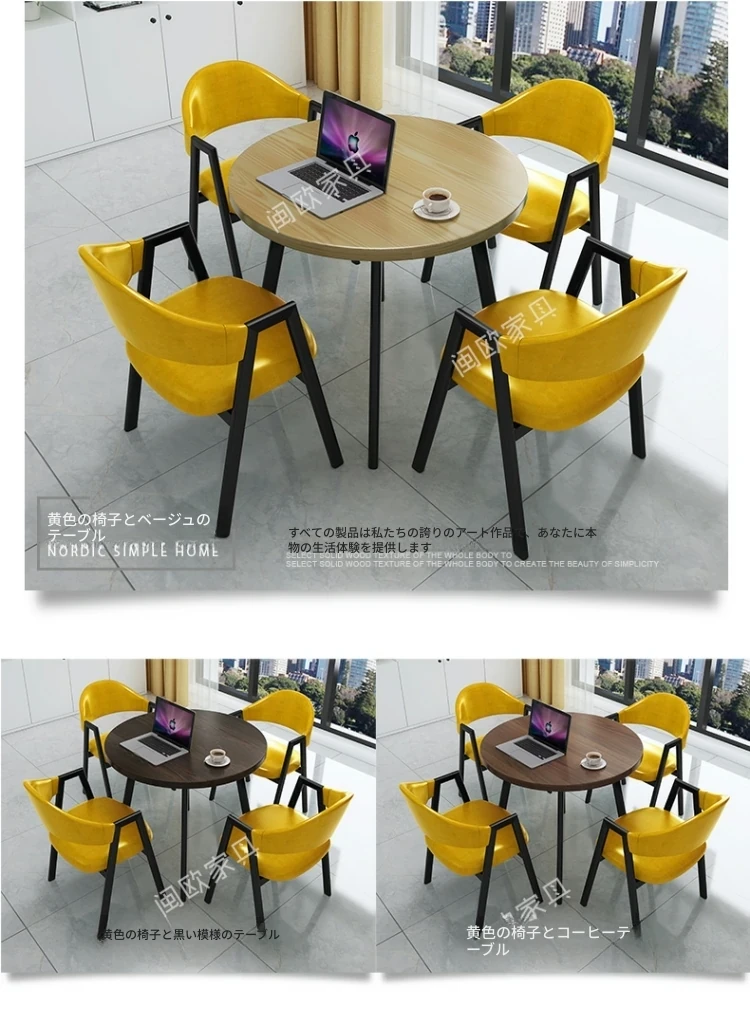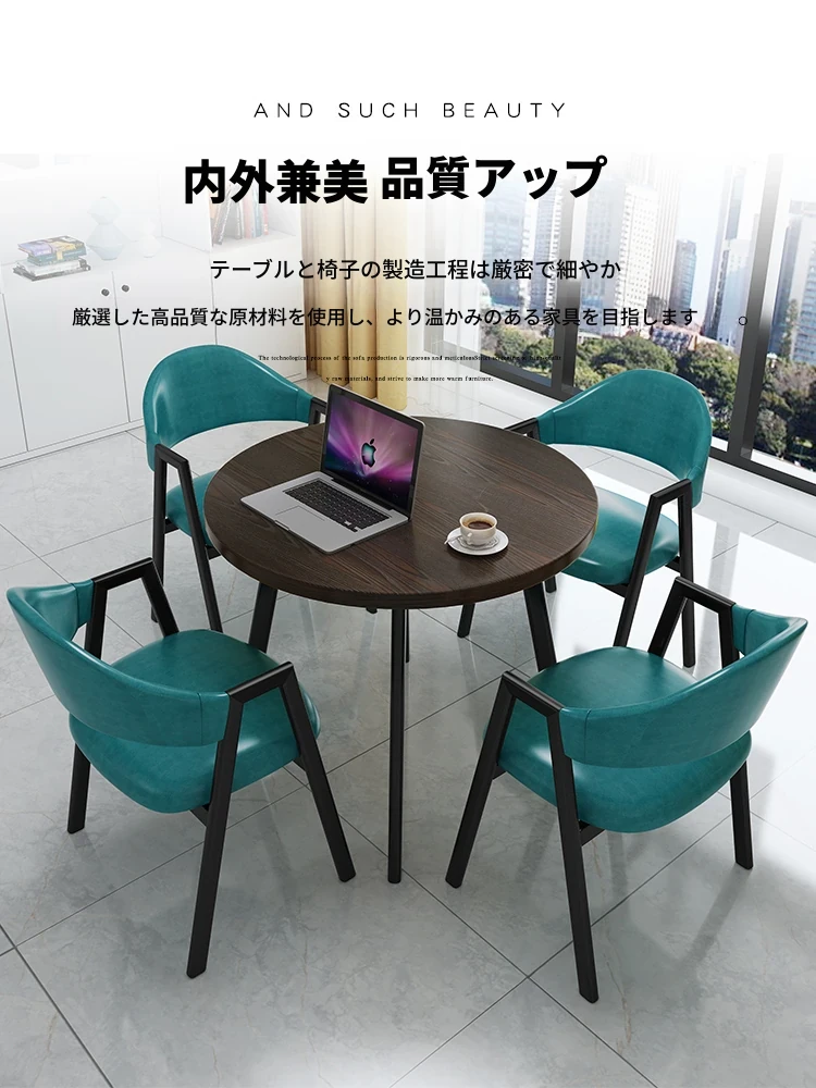 シンプルでスタイリッシュな接待用テーブル&チェアセット - オフィスやショールーム、休憩スペース、店舗のバルコニーに最適な小さな円形ダイニングテーブルと椅子。おしゃれな空間を演出し、リラックスしたひとときを提供します!
