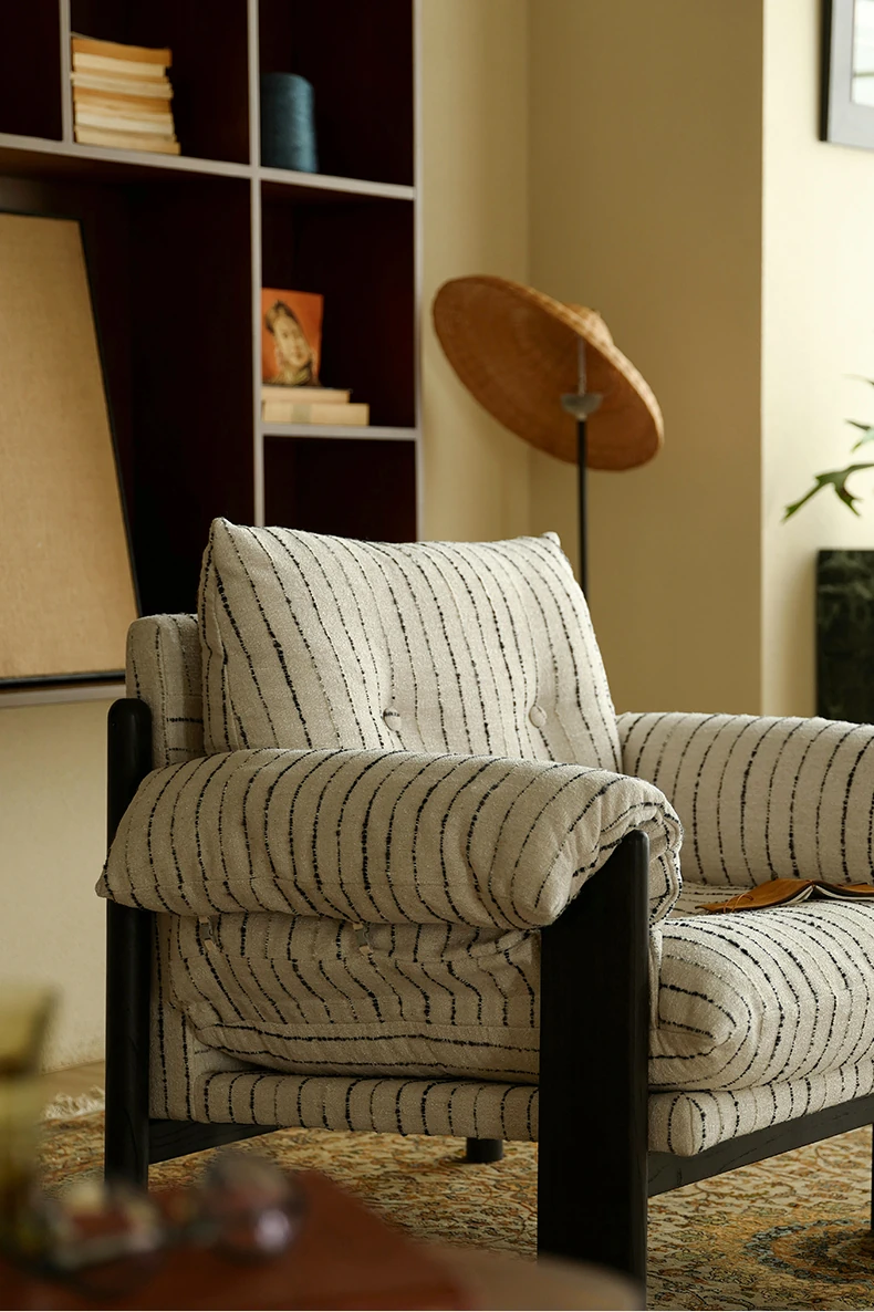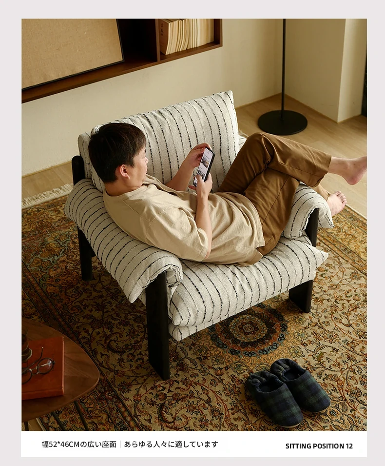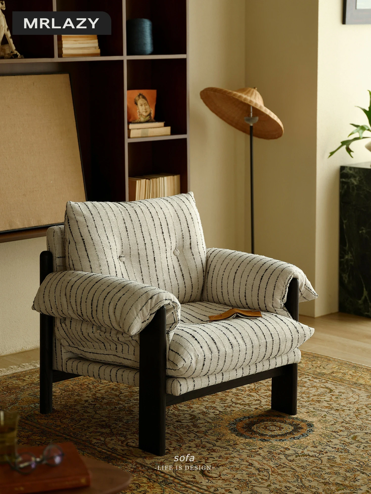 MRLAZY一人掛けソファチェア - ベッドルームやリビングにぴったりの快適でレトロなデザイン。リラックスできるハイエンドなアームレスト付きチェアで、贅沢なひとときをお楽しみください。