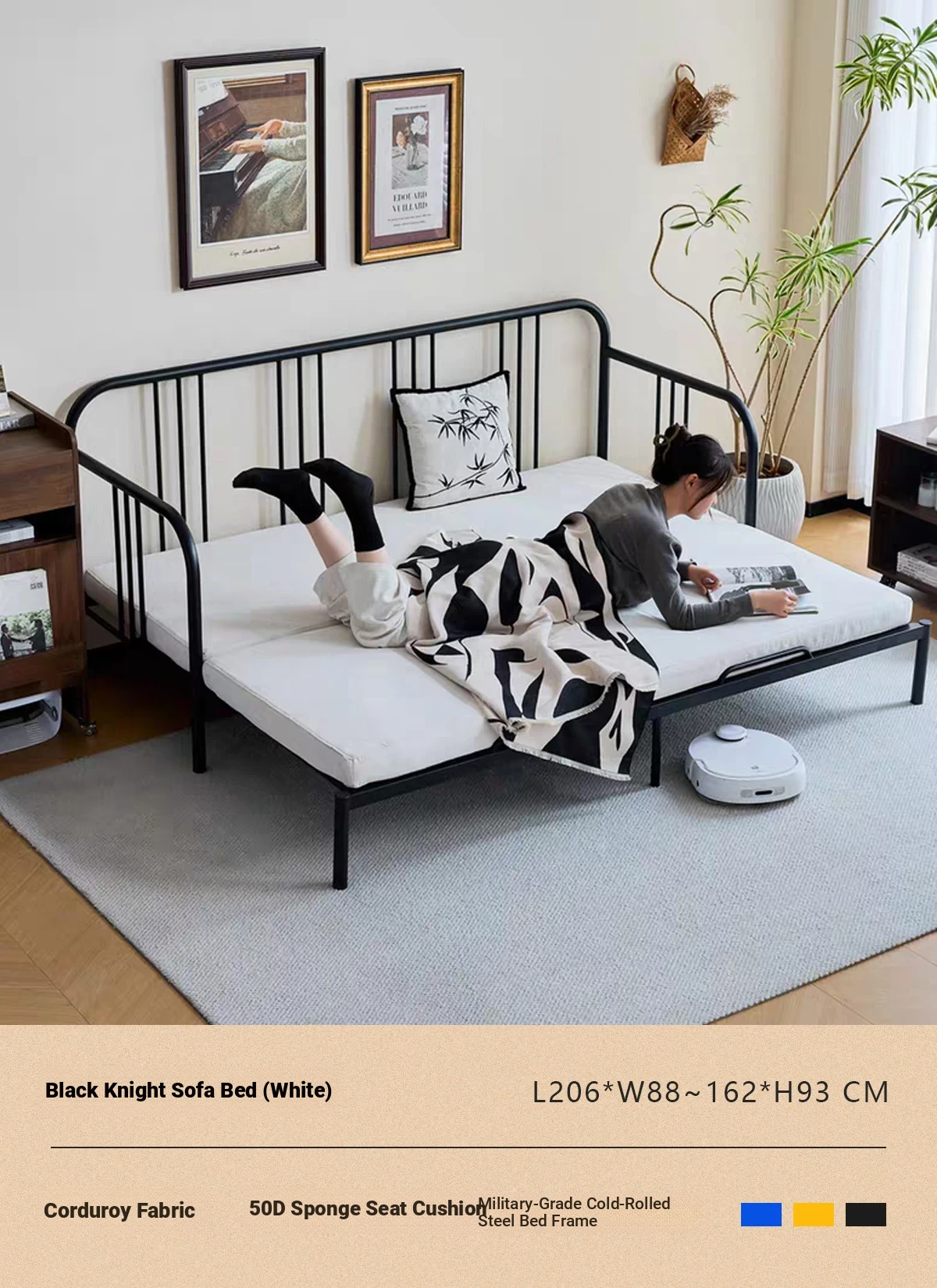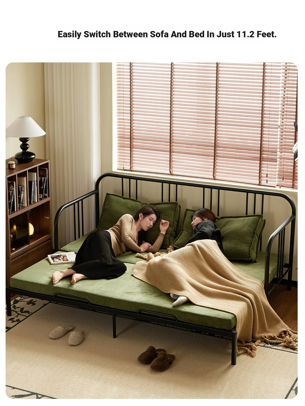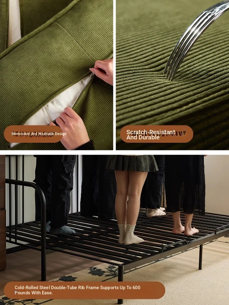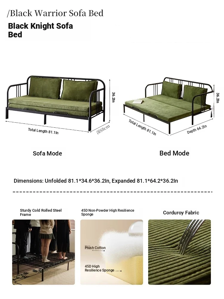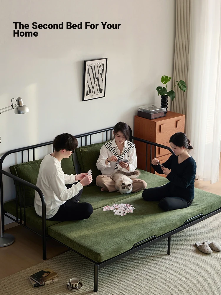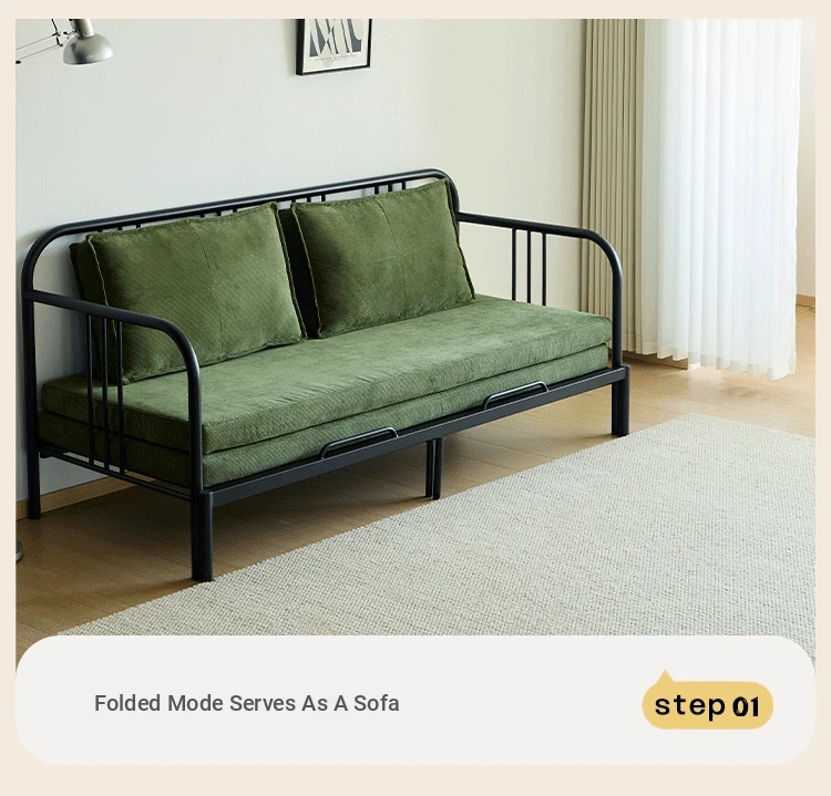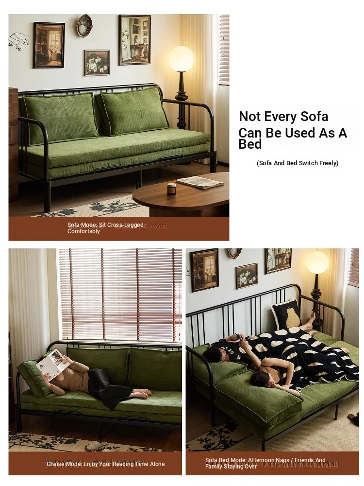 Multifunctional Iron Sofa Bed - Vintage Folding Sofa for Living Room, Space-Saving Double Sofa with Extendable Design for Home Use
