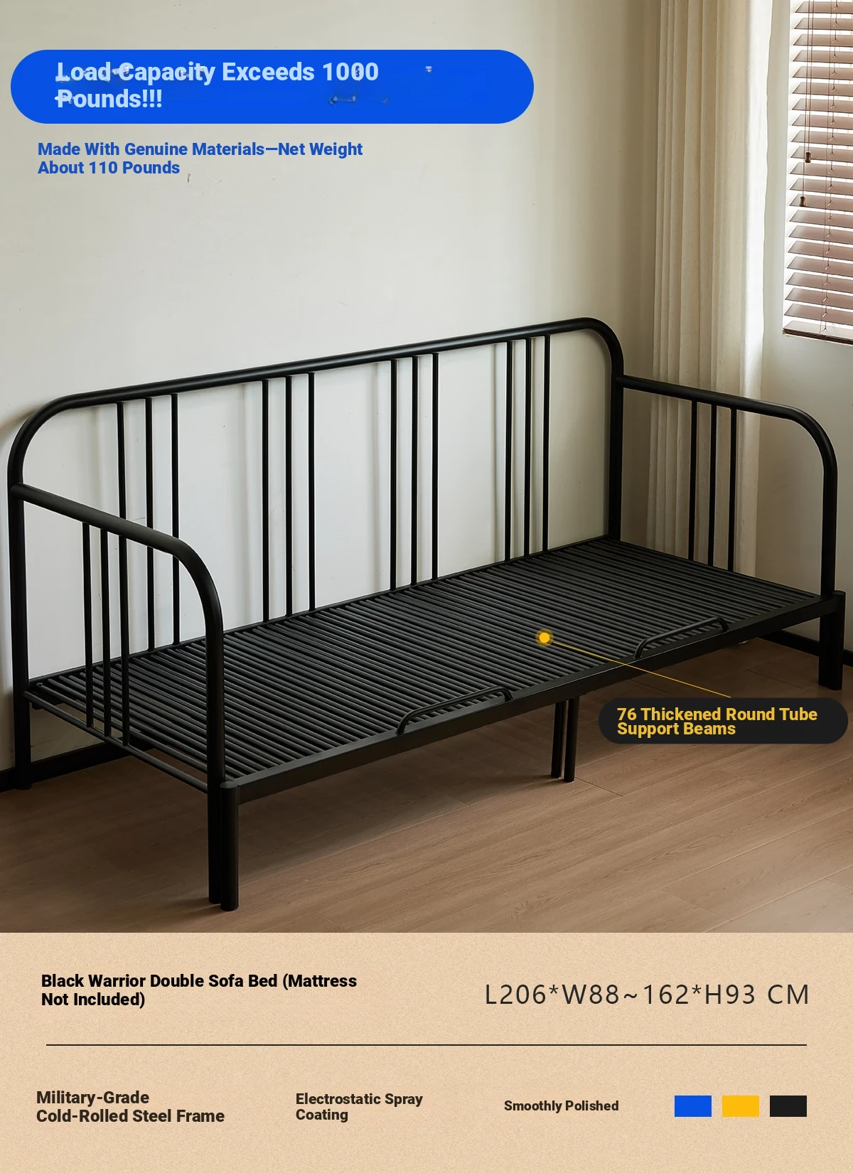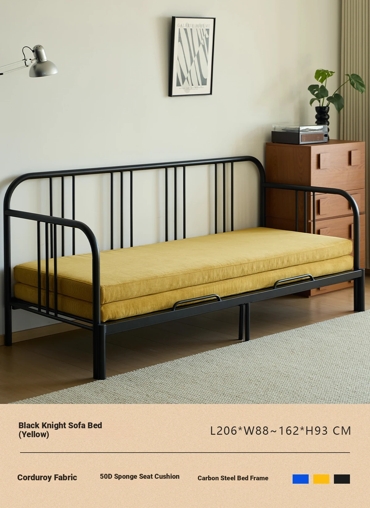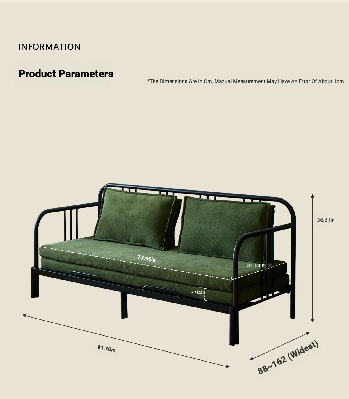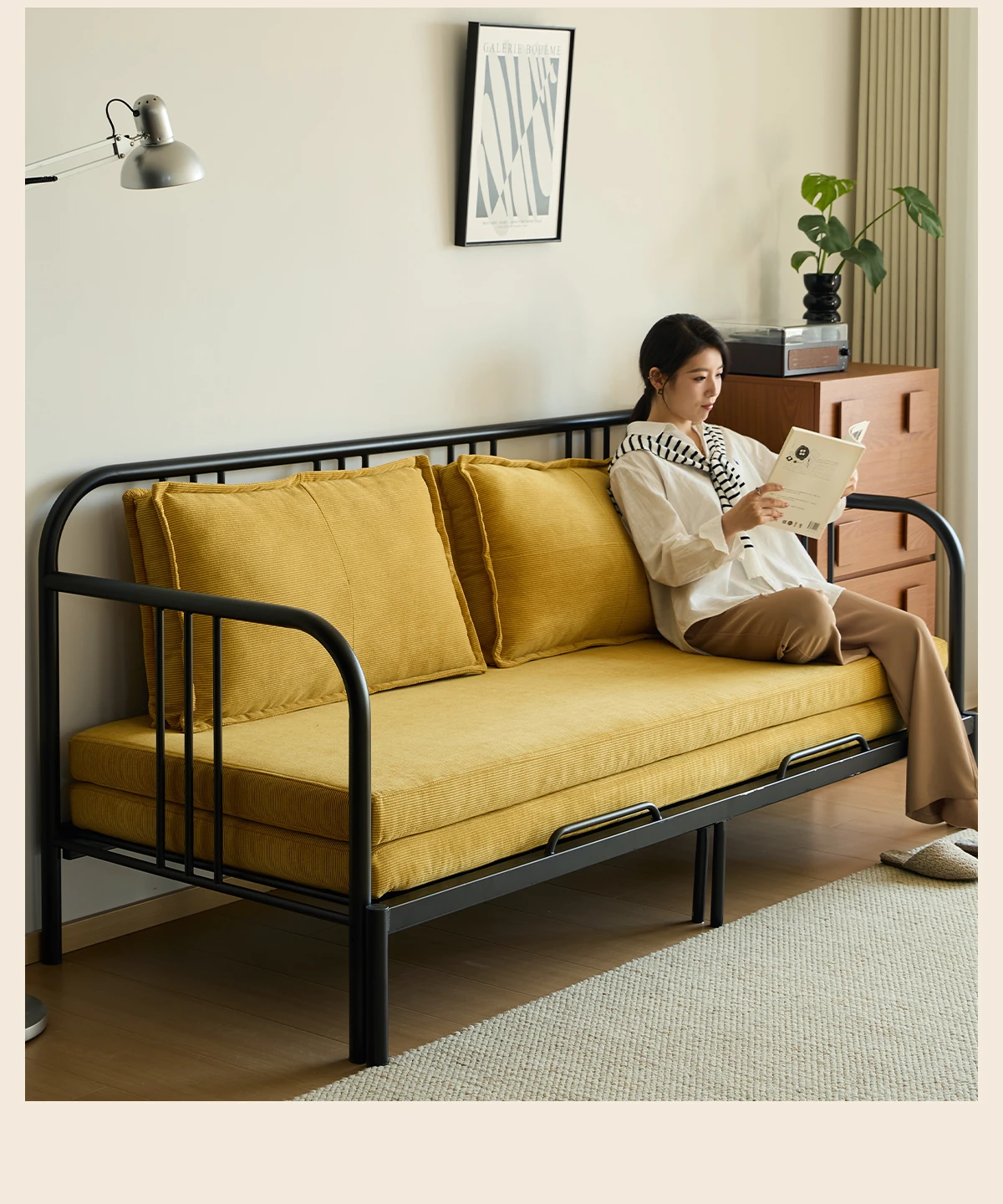 Multifunctional Iron Sofa Bed - Vintage Folding Sofa for Living Room, Space-Saving Double Sofa with Extendable Design for Home Use