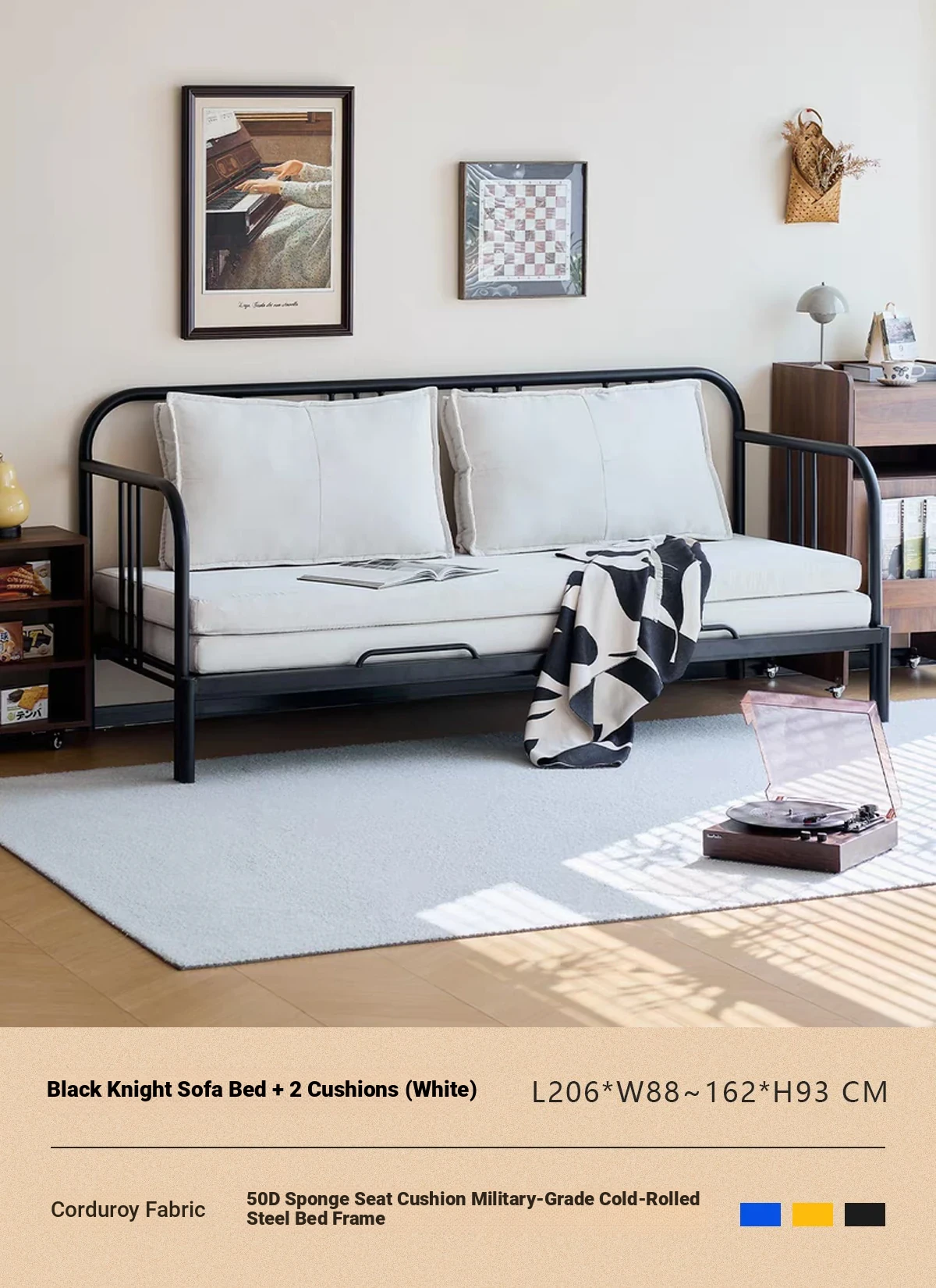 Package Installation [Middle Ancient White] Corduroy-Black Samurai Sofa Bed + Pillow * 2