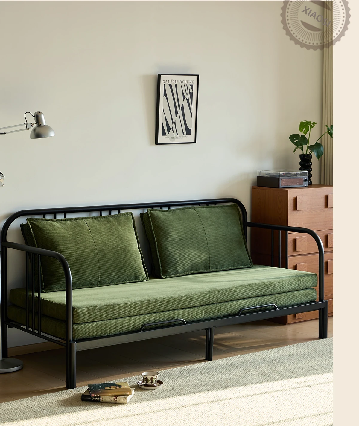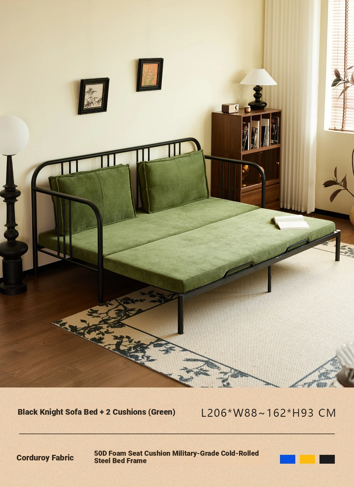 Package Installation [Middle Ancient Green] Corduroy-Black Samurai Sofa Bed + Pillow * 2