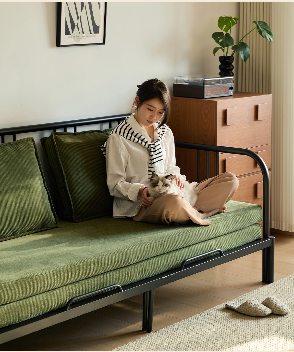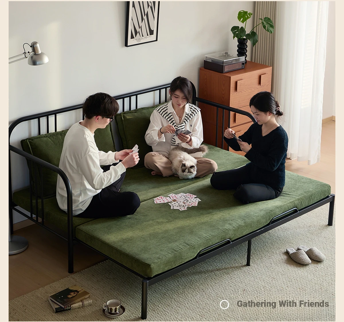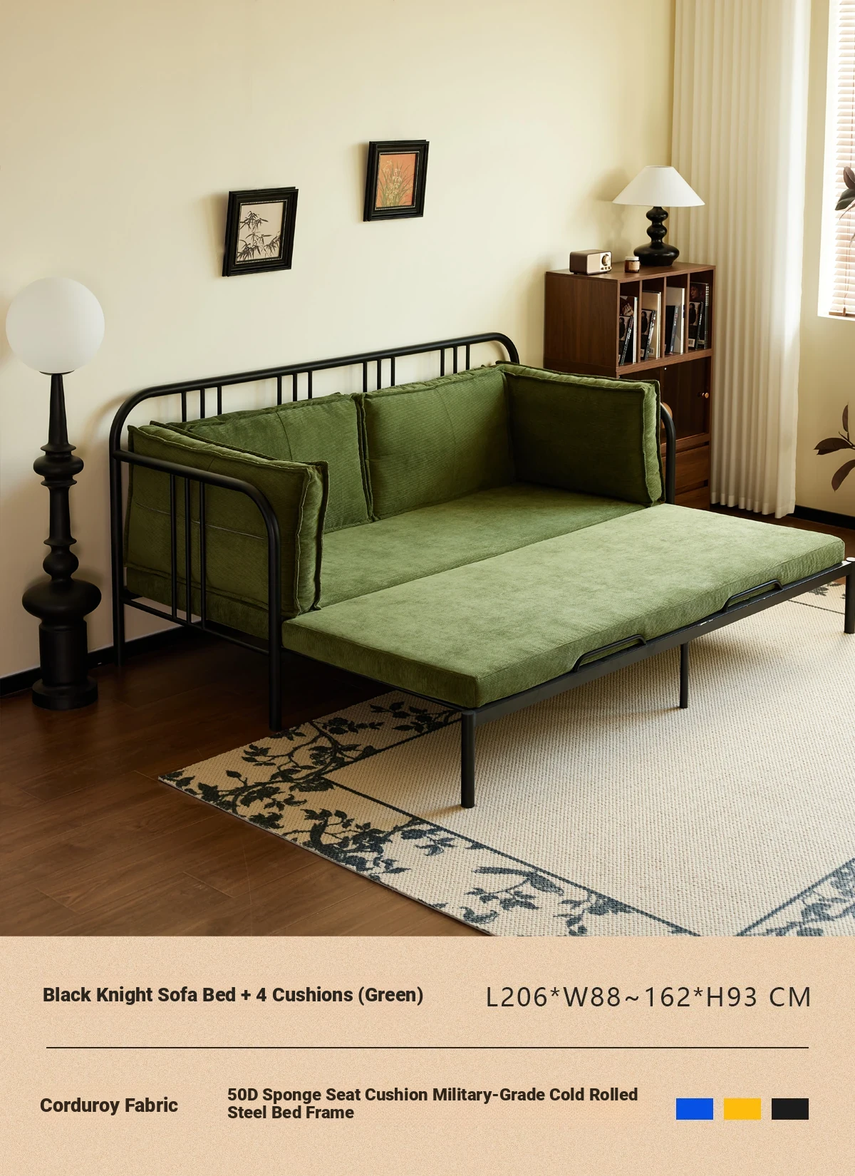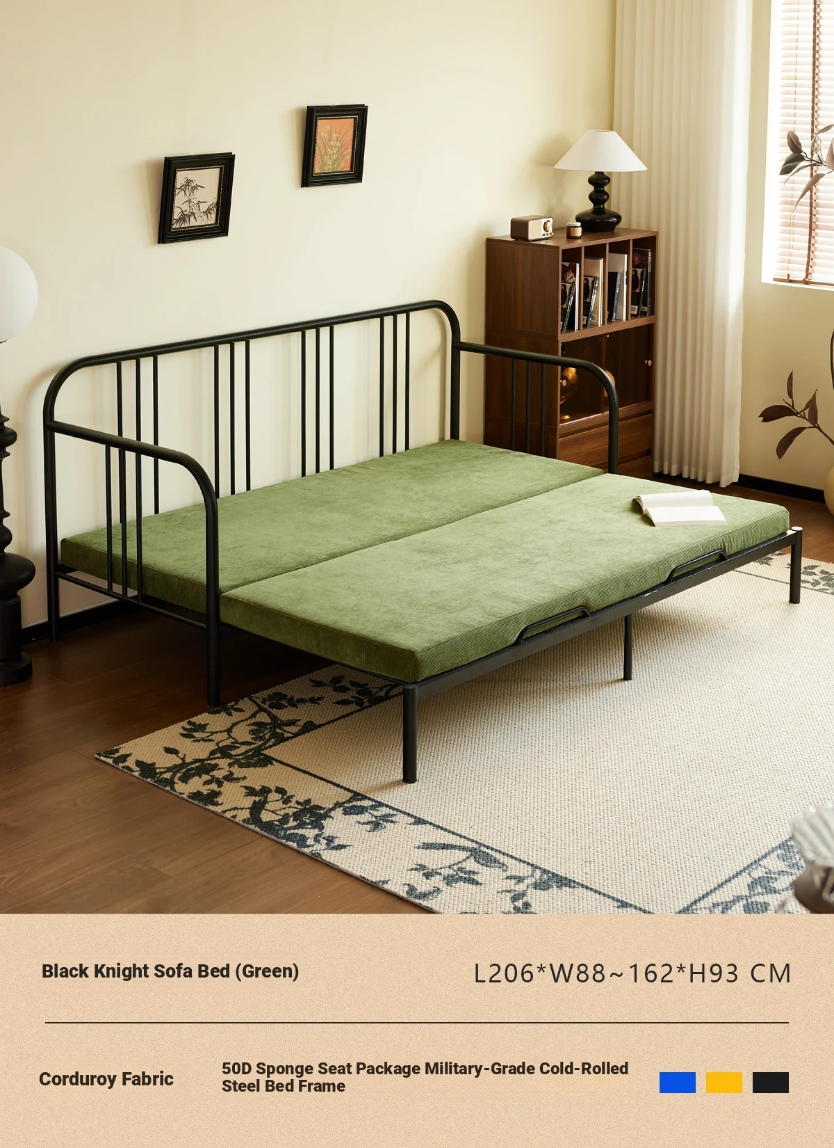 Package Installation [Middle Ancient Green] Corduroy-Black Samurai Sofa Bed