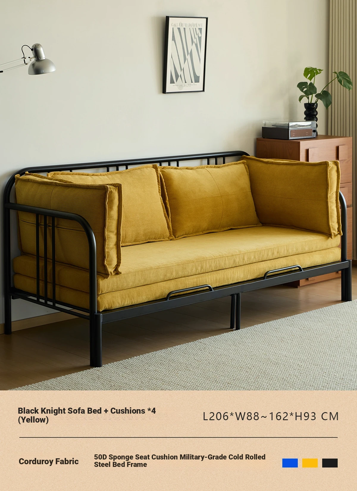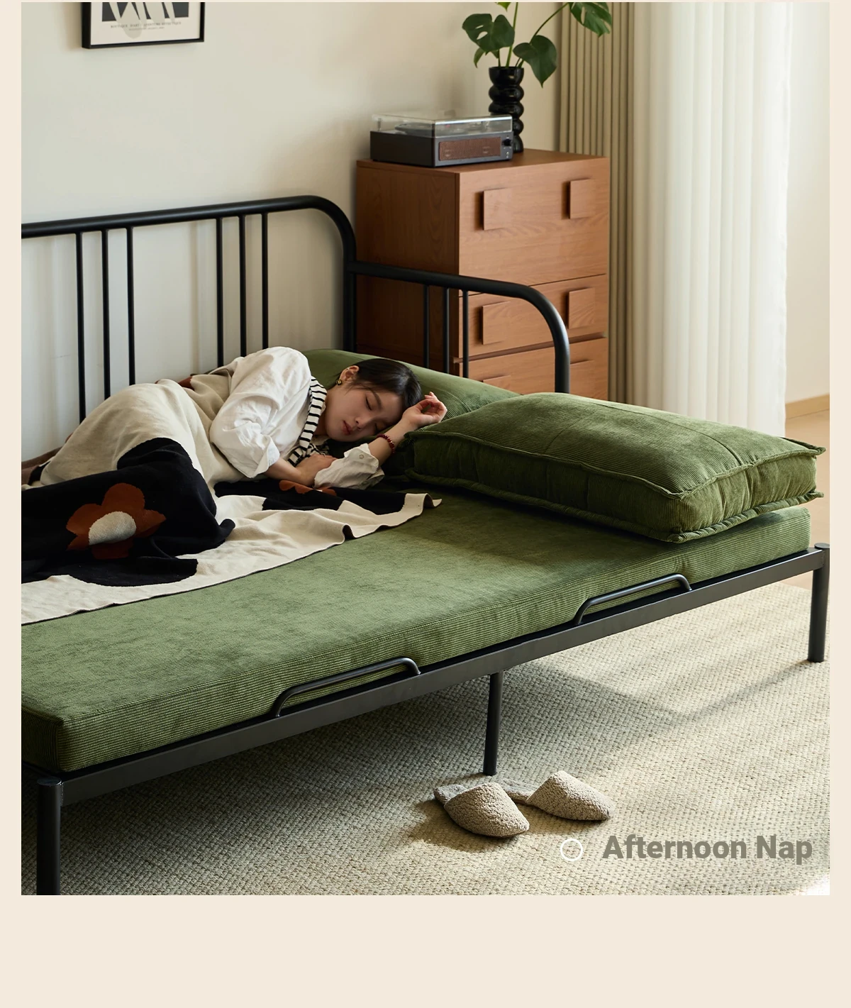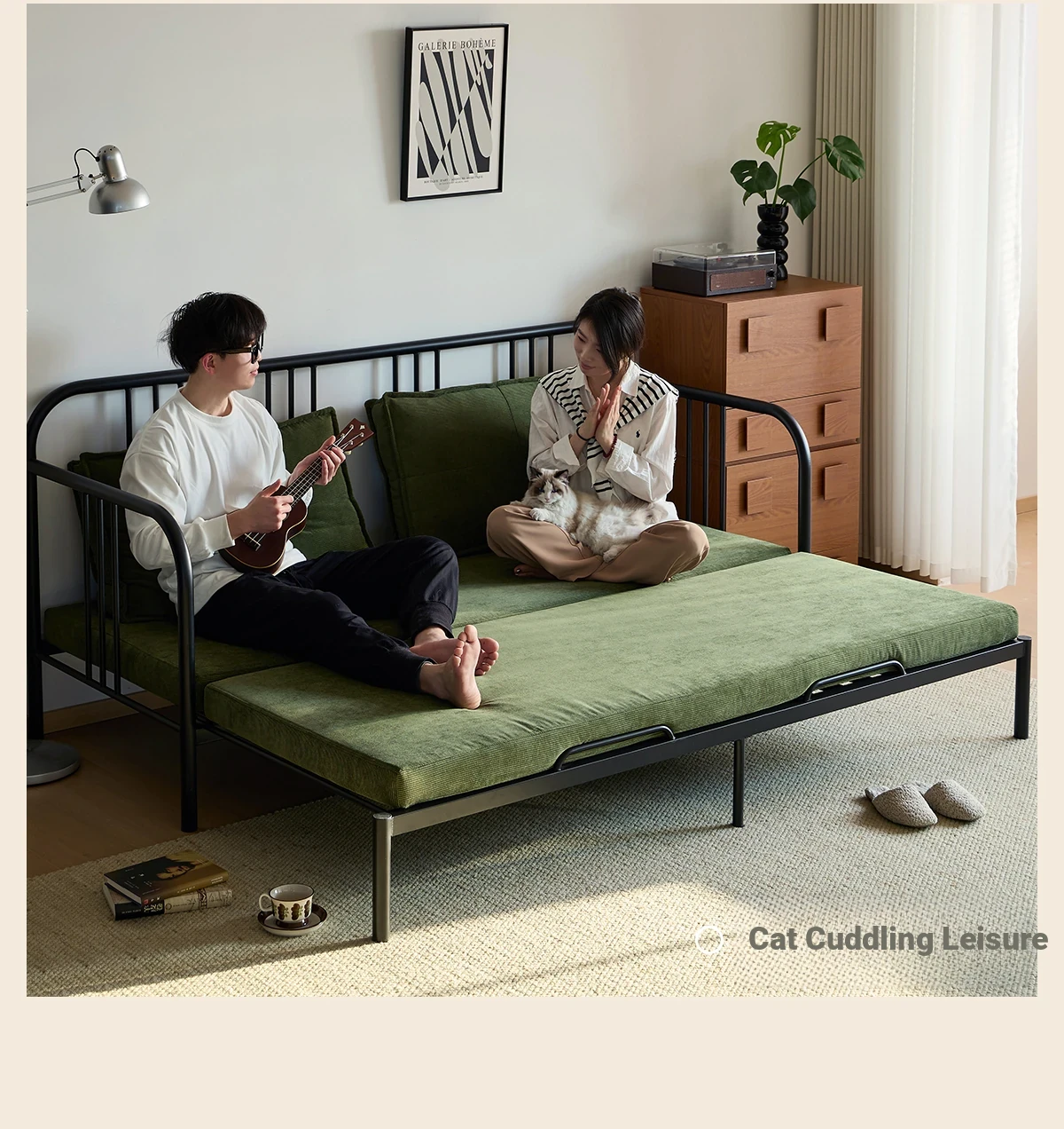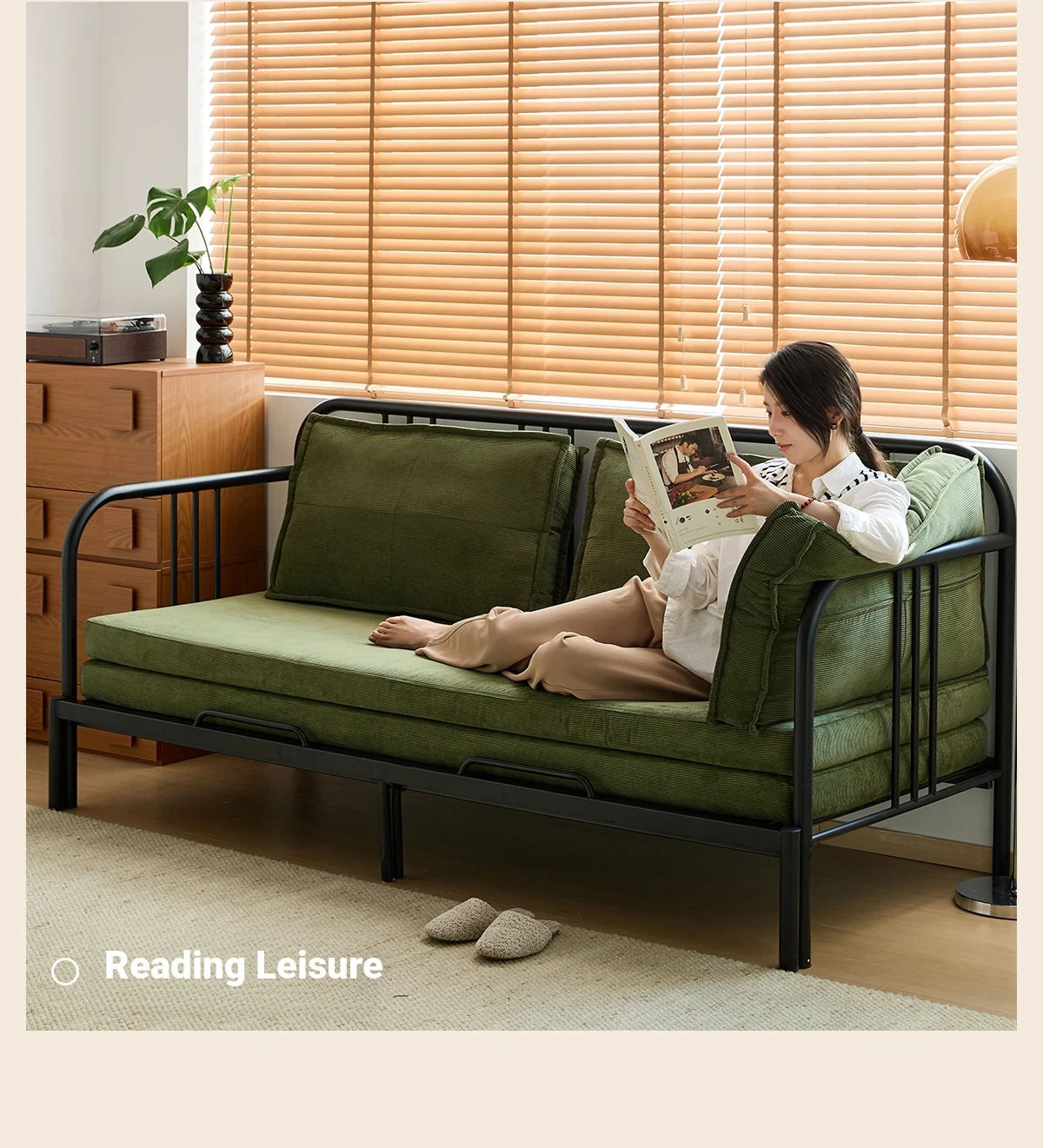 Package Installation [Middle Ancient Green] Corduroy-Black Samurai Sofa Bed