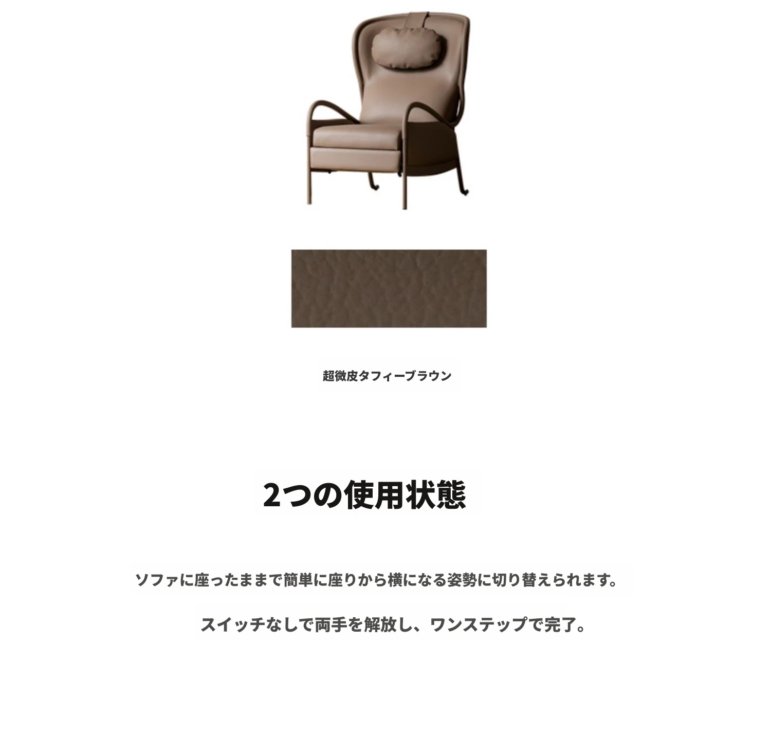 【新作】吱音相随ソファチェア 超合成皮革製 リビング&寝室に最適 シンプルでリラックスできる多機能一人用リクライニングチェア