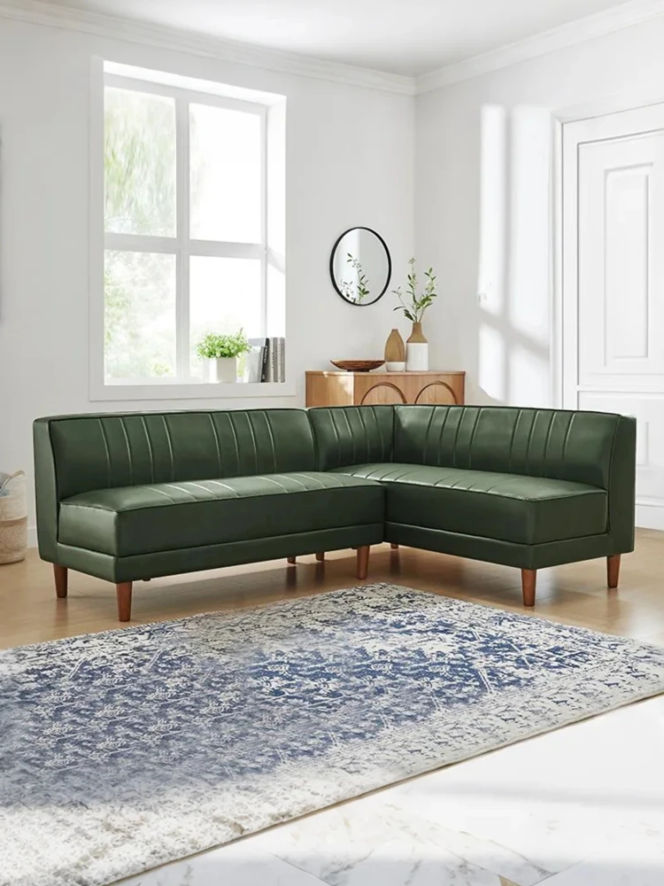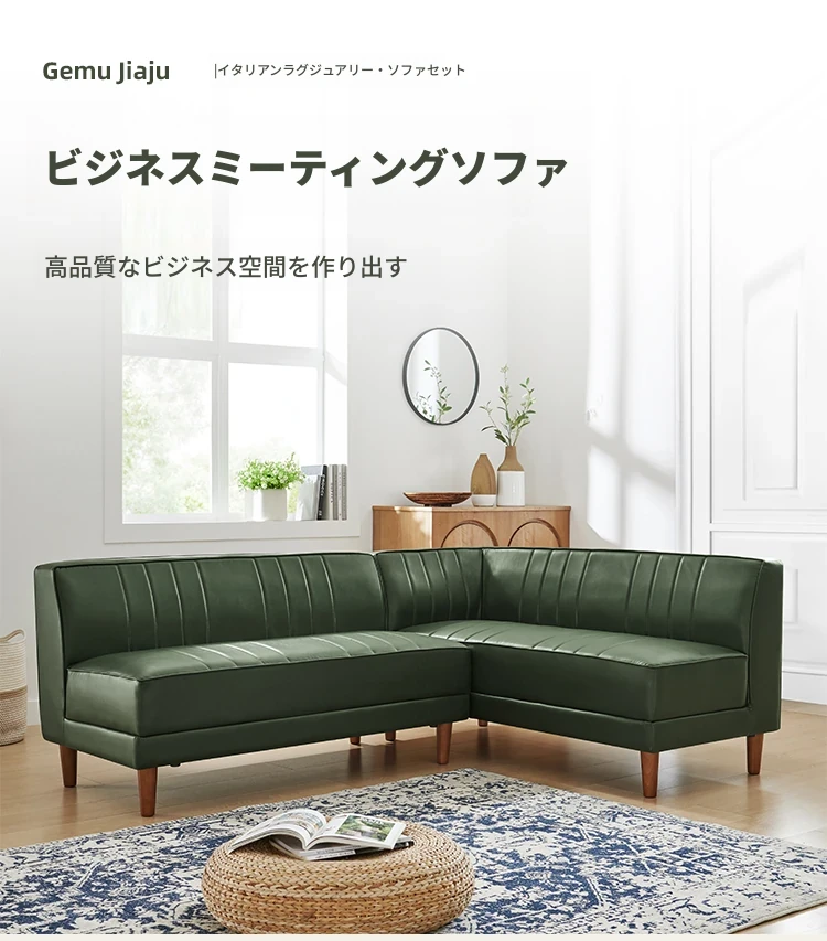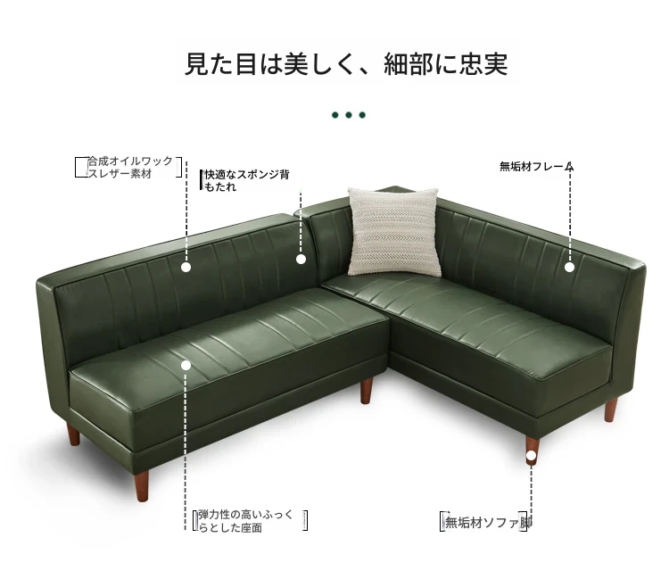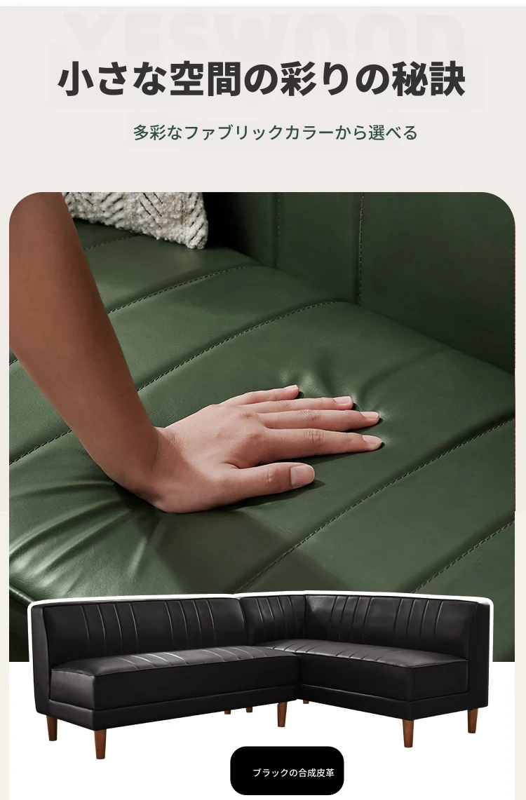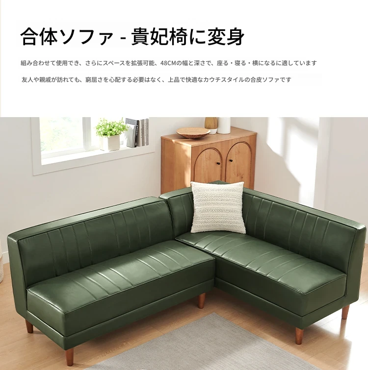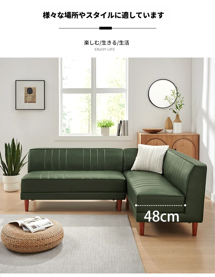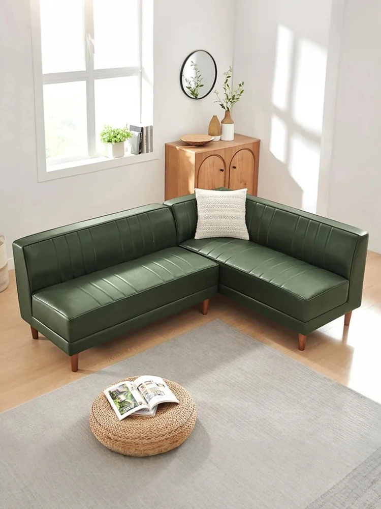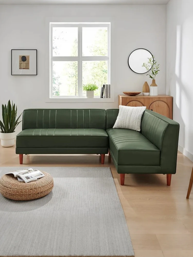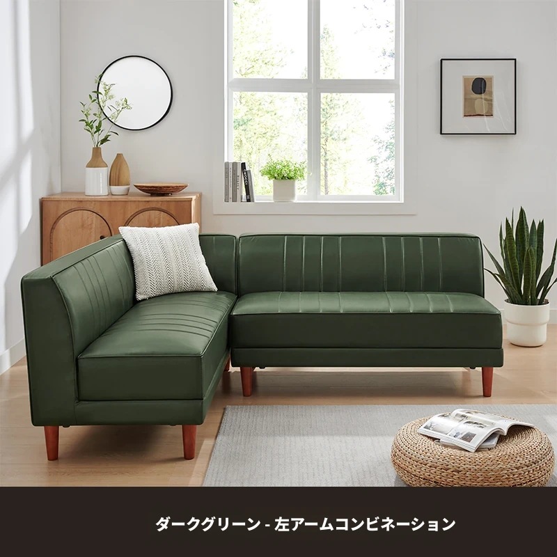 北欧スタイルのダークグリーンカウチ、モダンでシンプルなデザイン!アームレスでオフィスやリビングにぴったりのL字型ソファ。快適な座り心地とスタイリッシュな外観で、あなたの空間をグレードアップ!